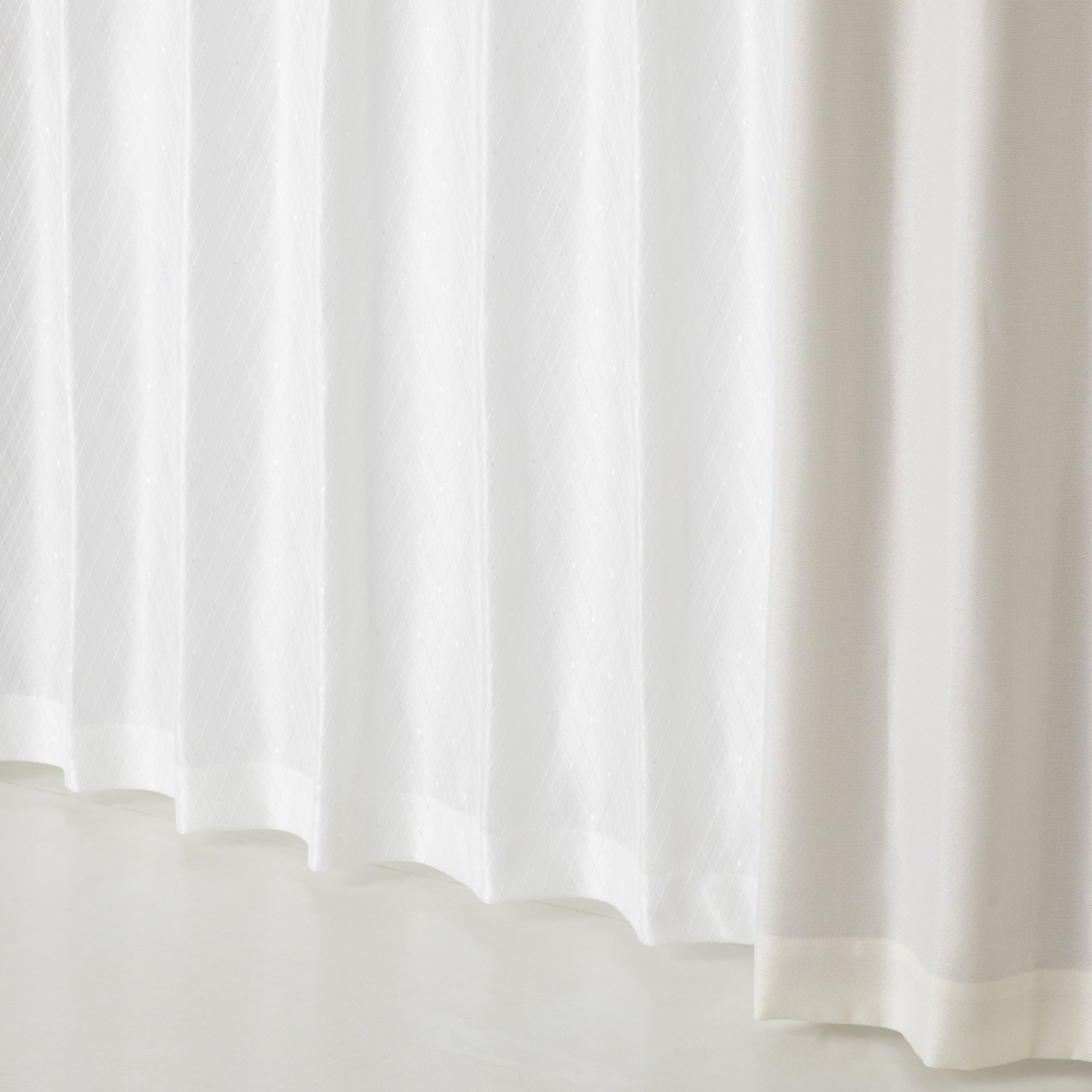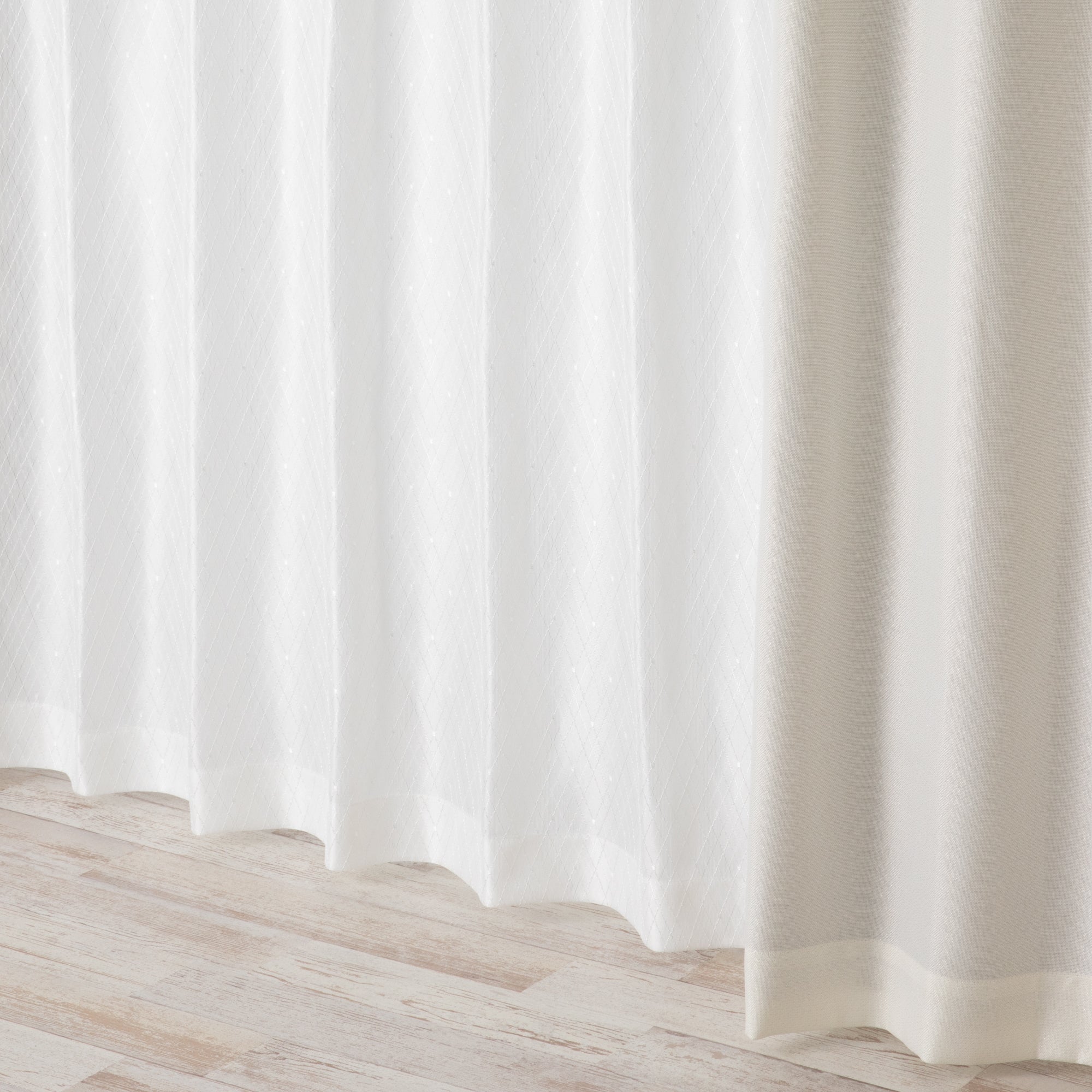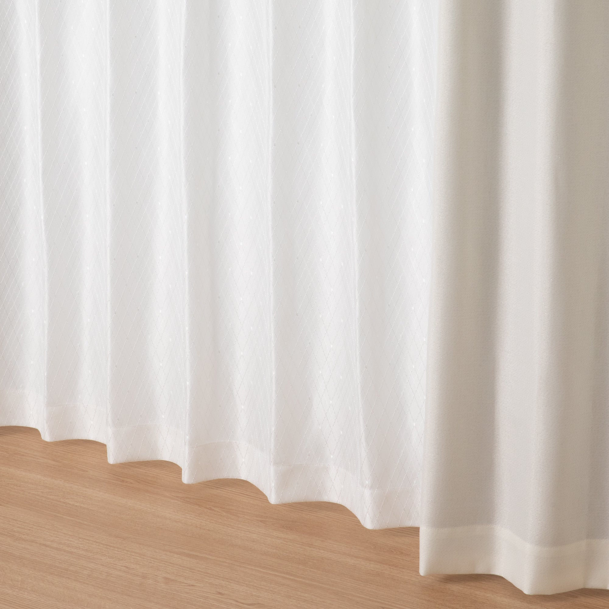 菱型模様のシンプルなレースカーテンです。 どんなドレープカーテンにも合わせやすいデザインです。 ミラー効果があり、レースカーテンのみの使用時でも外からお部屋の中が見えにくく、安心です。