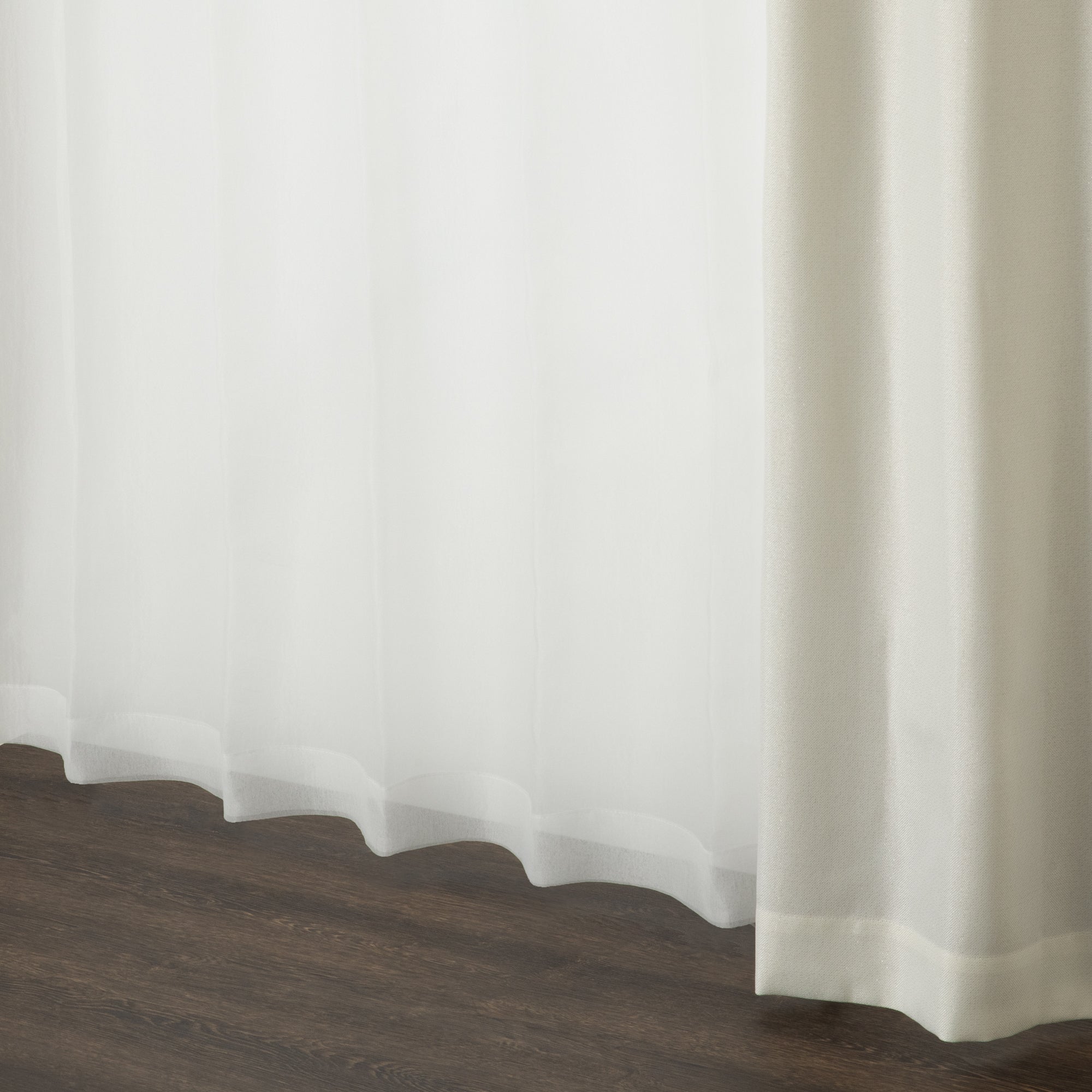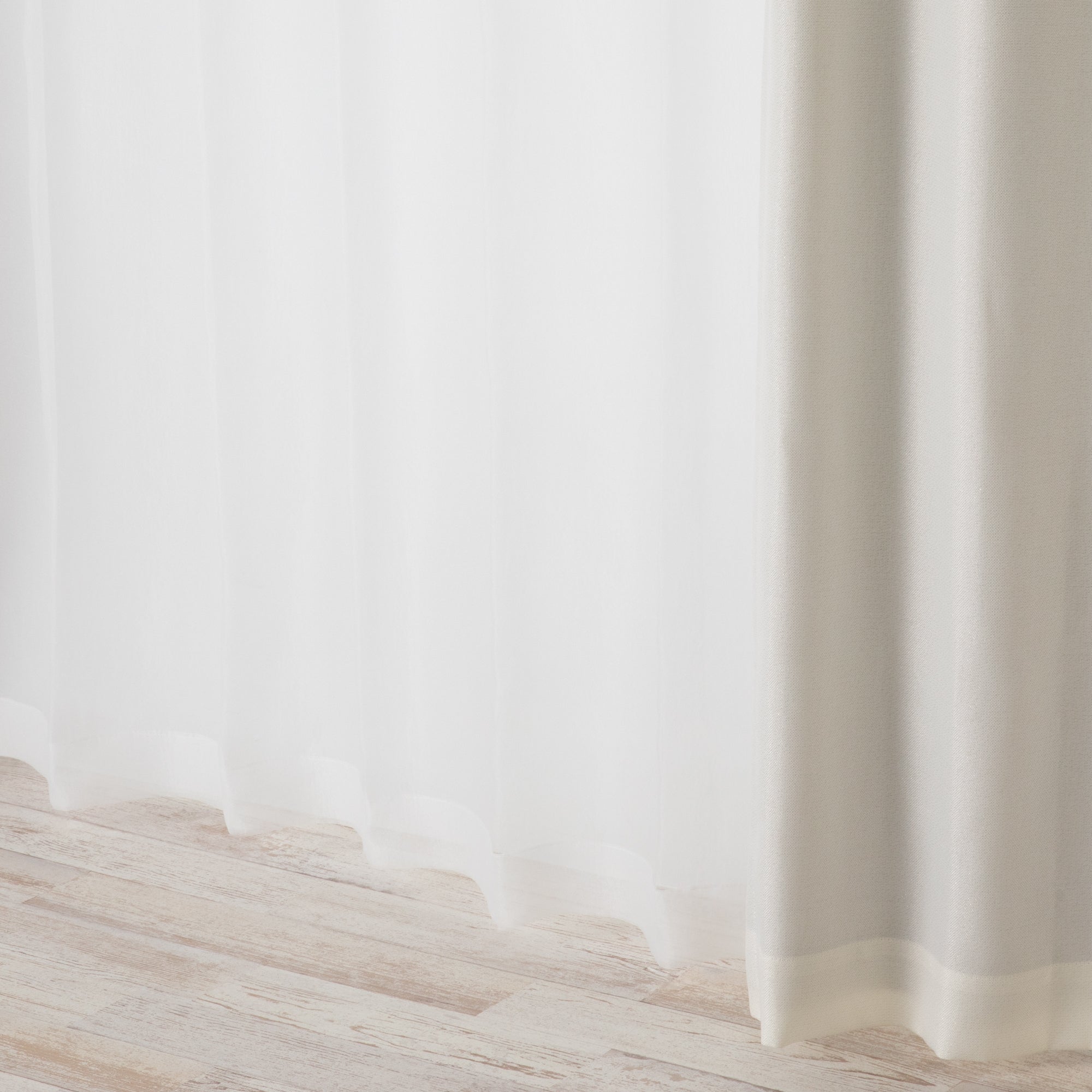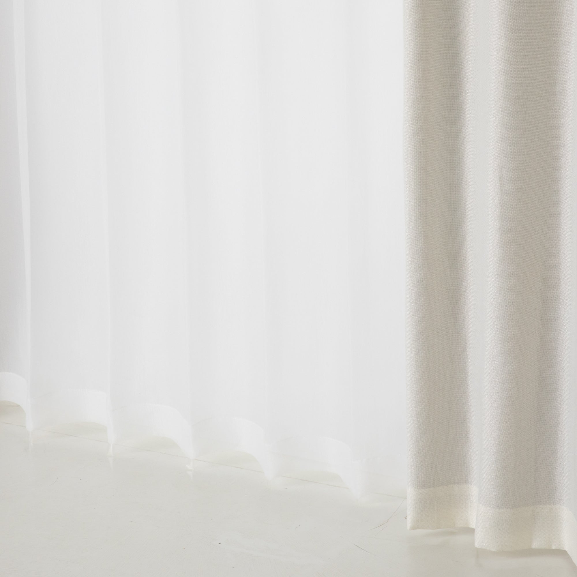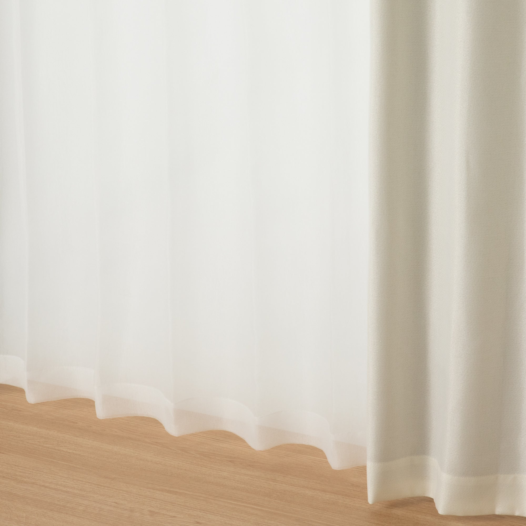 シボ感のある和紙のような凹凸感が特徴のレースカーテンです。 無地ながらもニュアンス感のある素敵な風合いです。