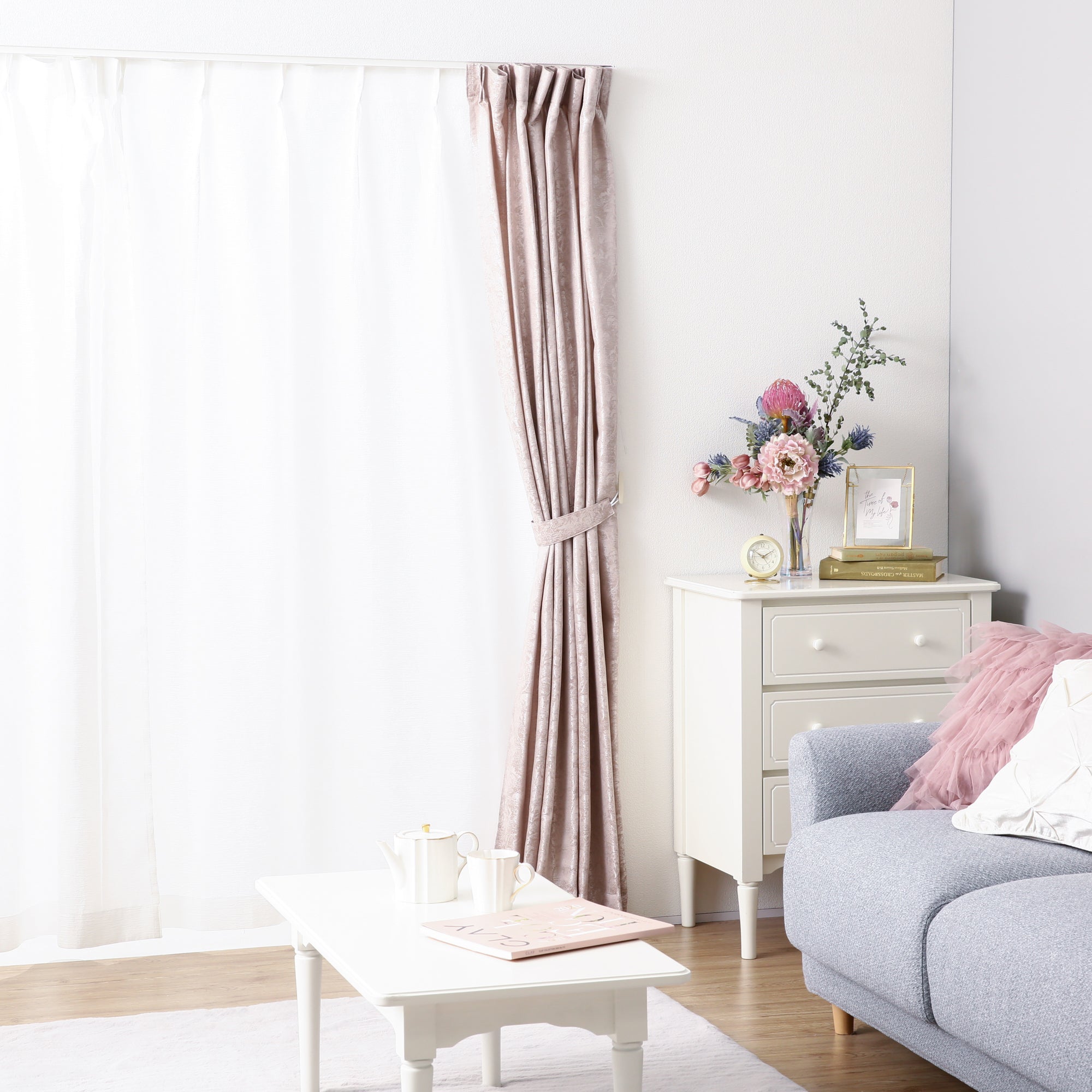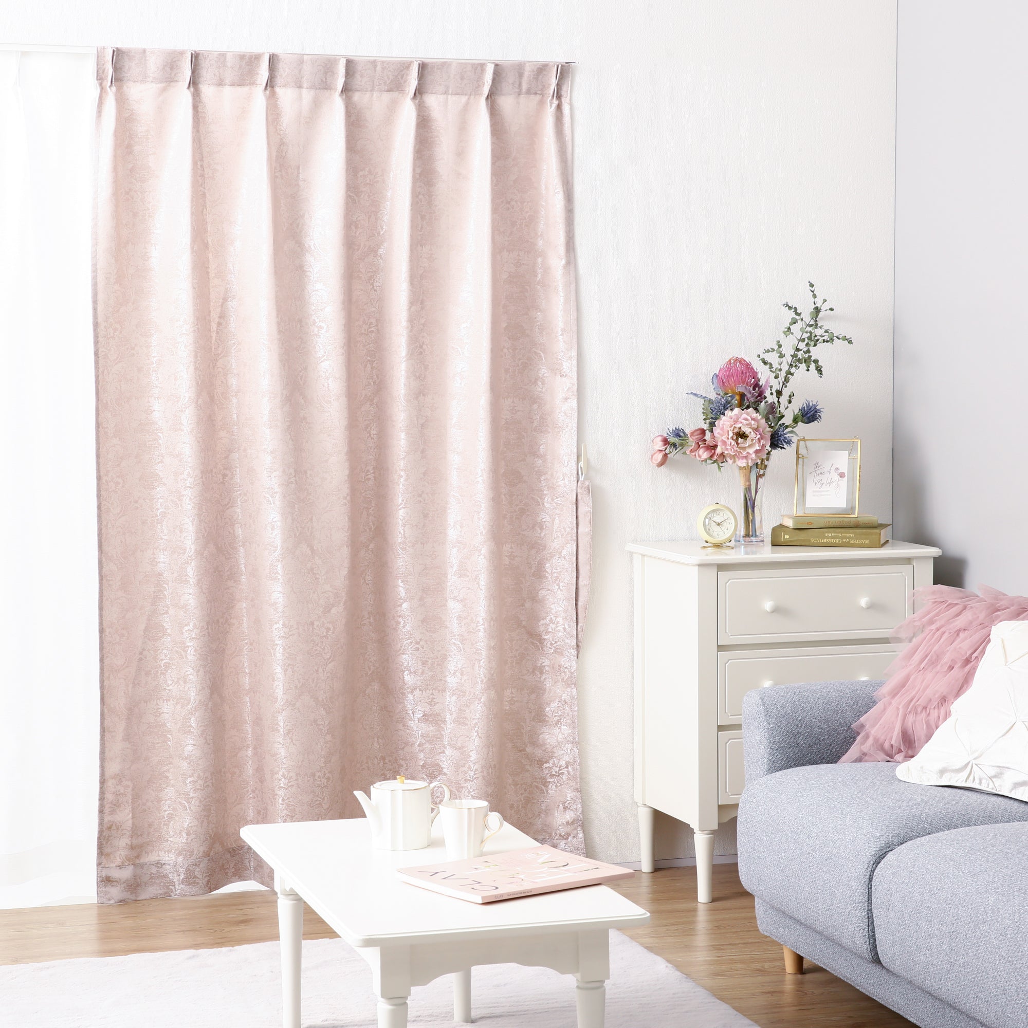 光沢感にこだわりジャカード織りを採用したのダマスクデザインのカーテンです。 テクスチャータッチで描いたダマスクは繊細に浮かび上がる上品な仕上がりです。 ヌーディピンク&グレーの選べる2色展開です。 ※掲載画像はウェーブ加工を施しております。