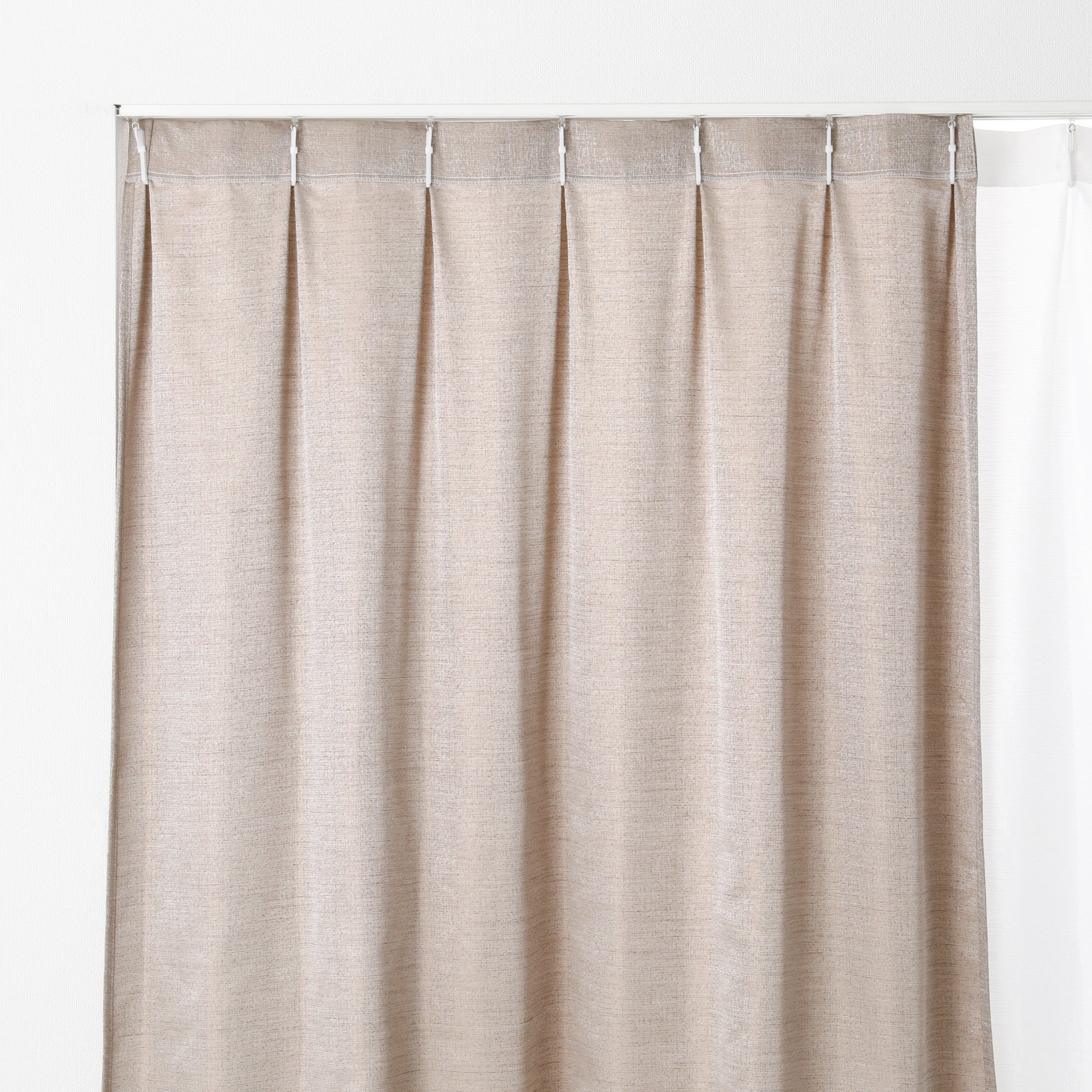 細かいテクスチャーがキラキラと輝く華やかな光沢のカーテンです。 優しい色味でお部屋を明るく上品にしてくれます。 いざという時に燃えにくい防炎機能も付いて安心です。 ※掲載画像はウェーブ加工を施しております。