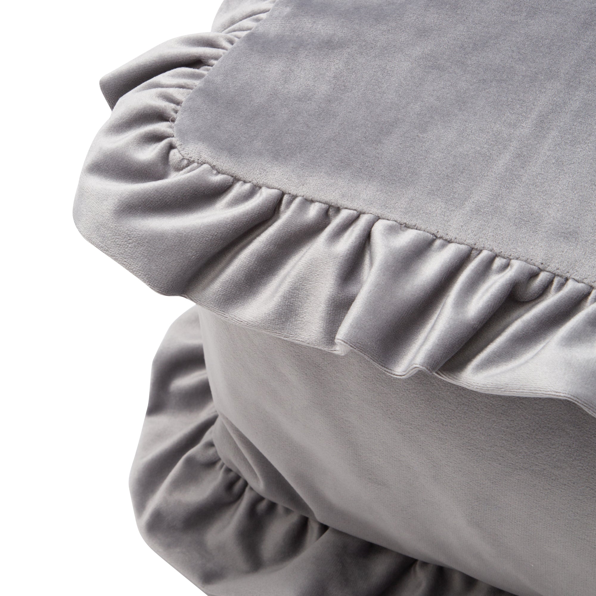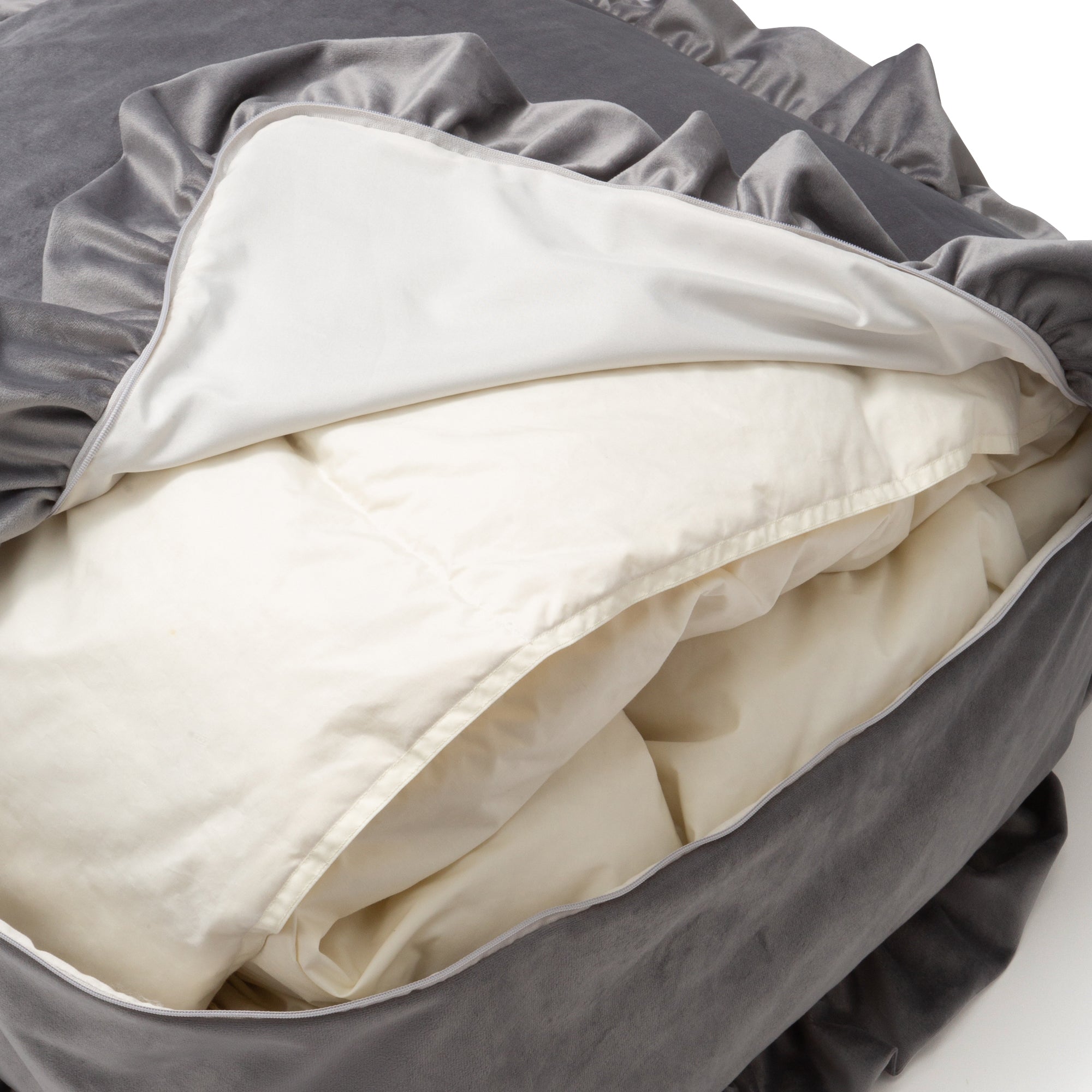 かんたん寝具セット フリル ダブル グレー+クッションになるふとん収納ケース ライトグレー