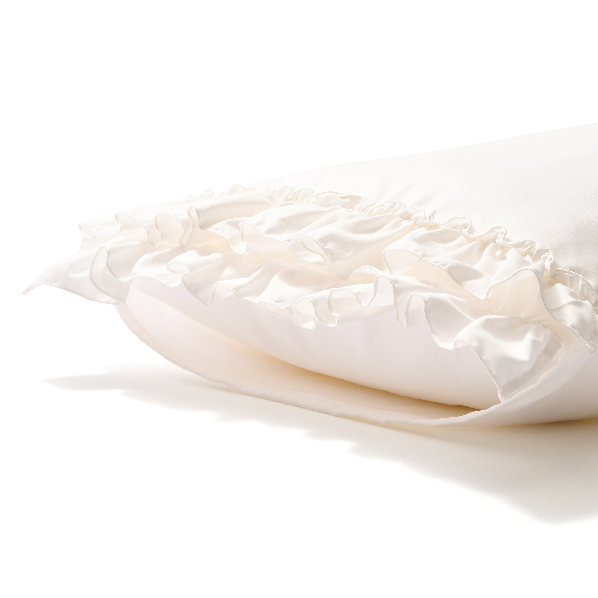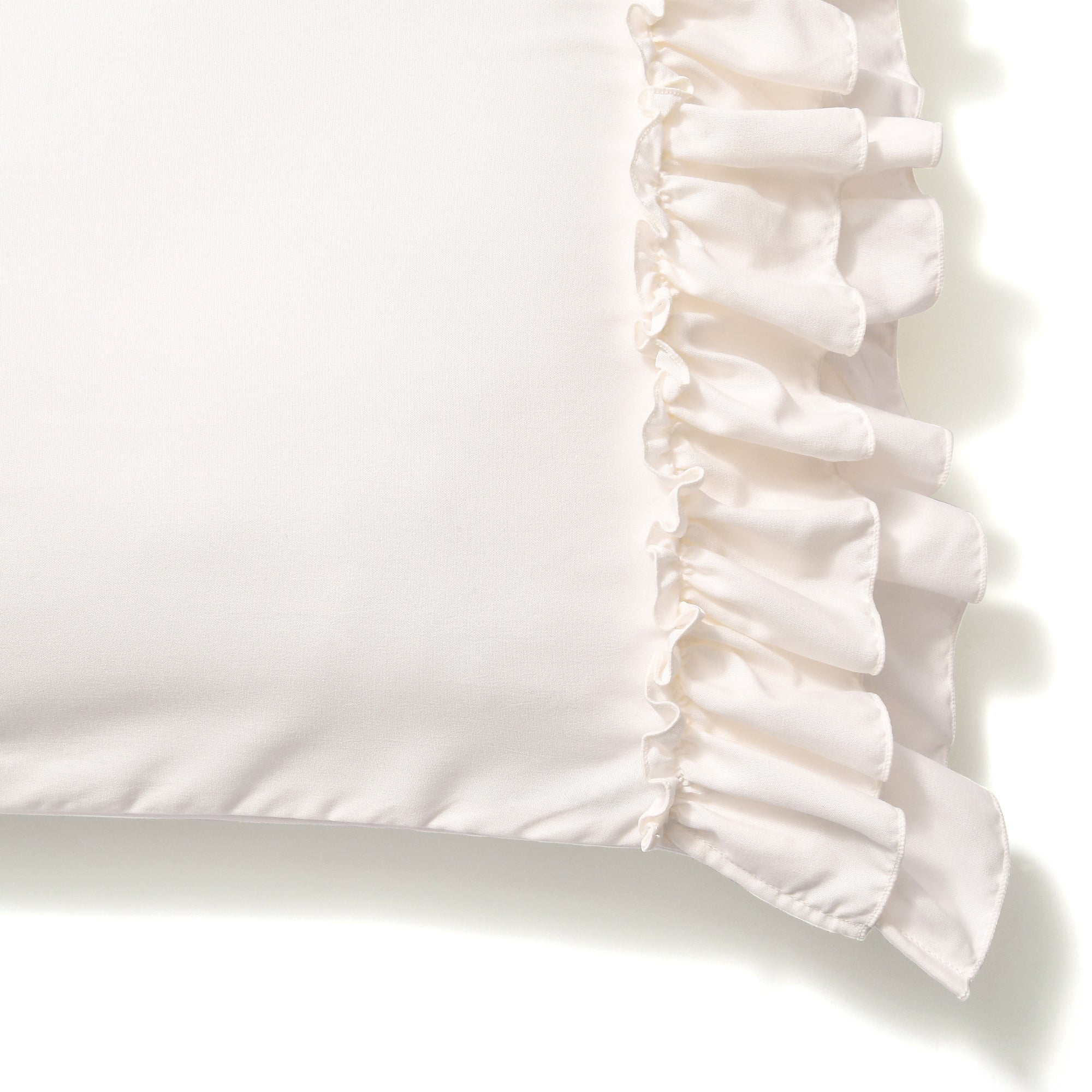 かんたん寝具セット フリル ダブル ホワイト+クッションになるふとん収納ケース ピンク
