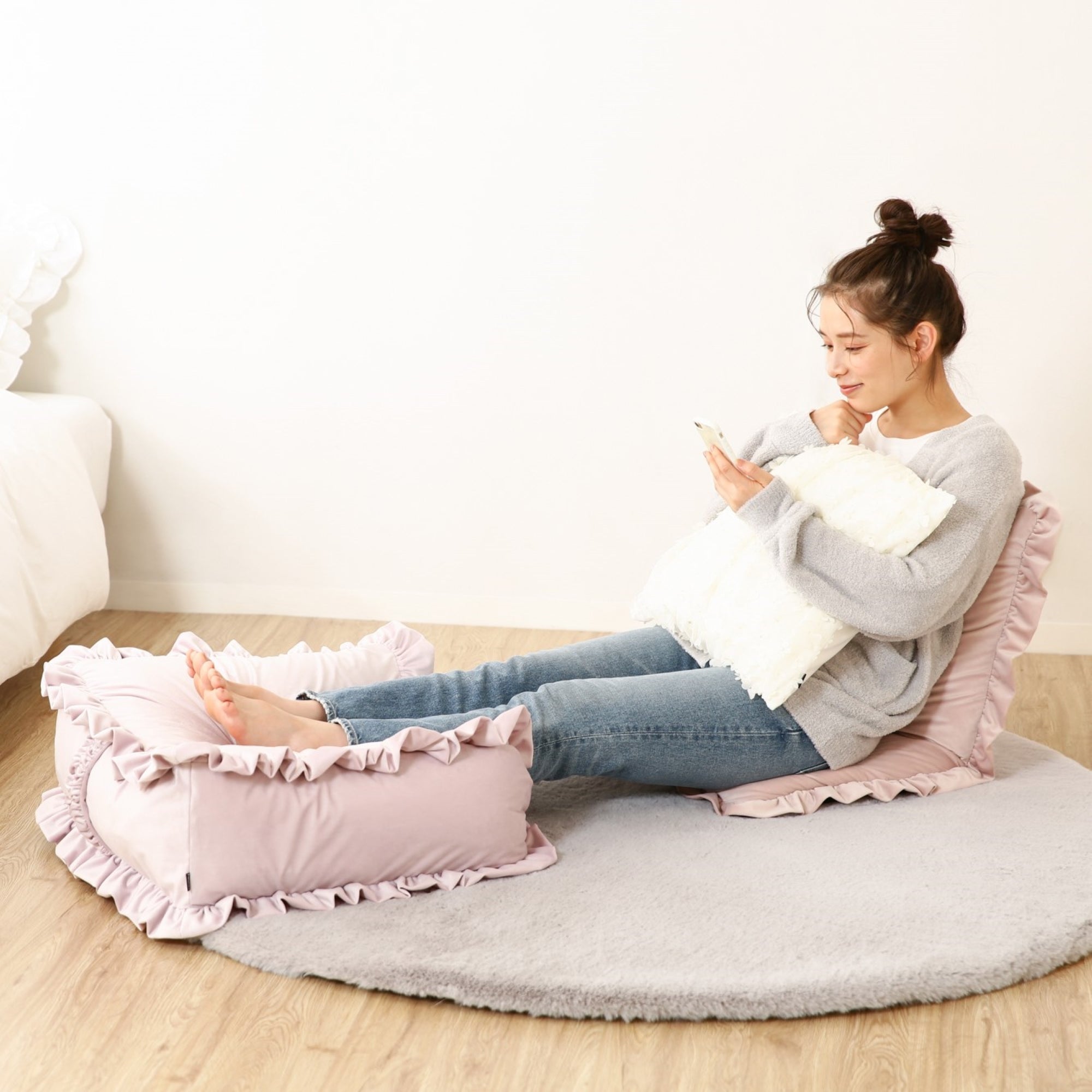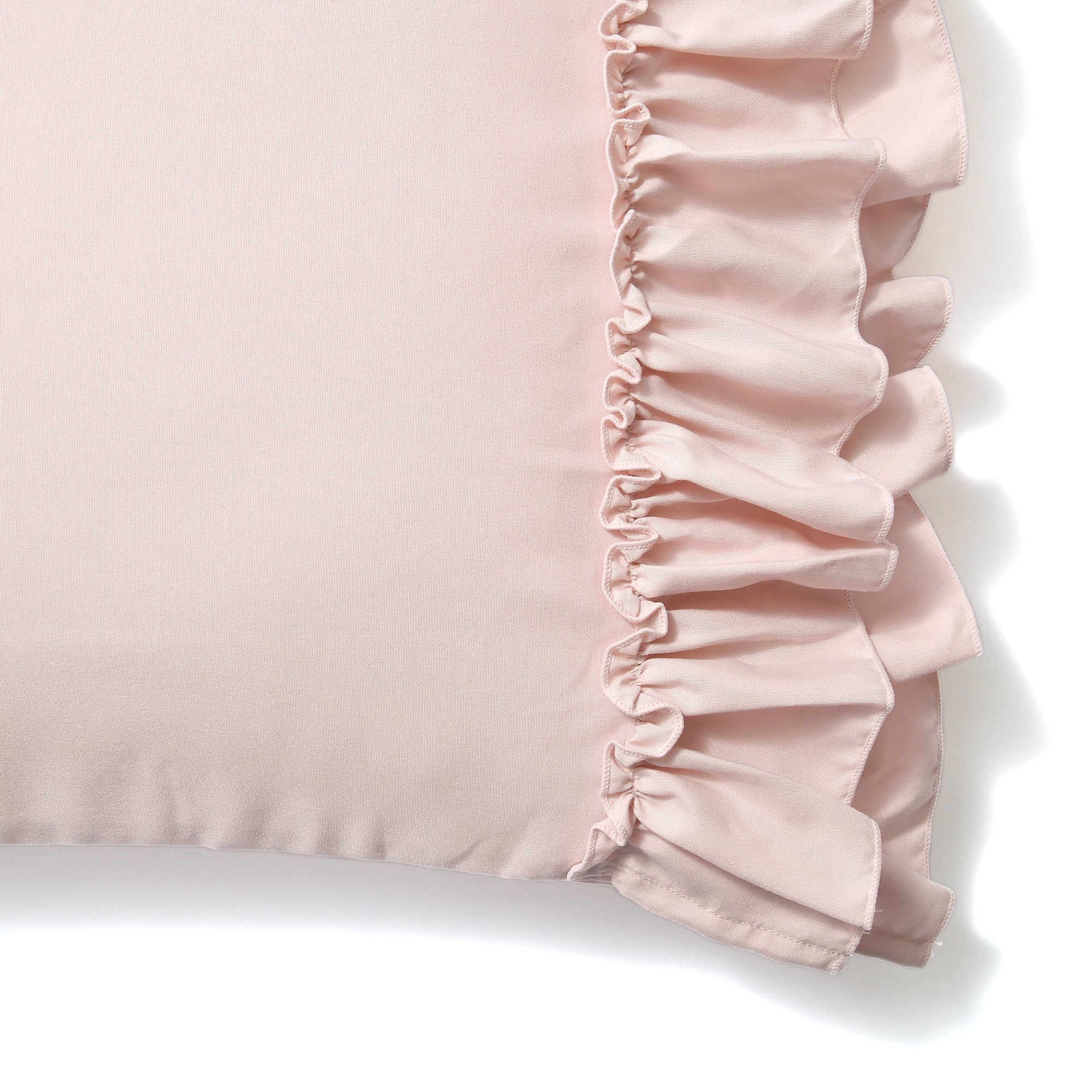 かんたん寝具セット フリル シングル ピンク+クッションになるふとん収納ケース ピンク
