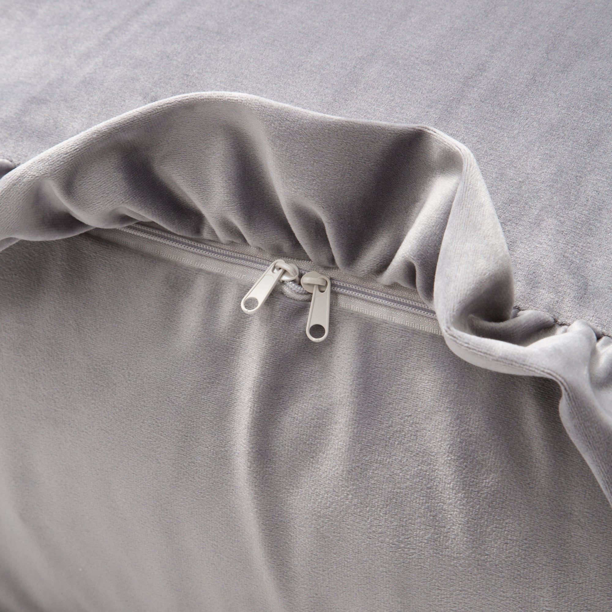 かんたん寝具セット フリル セミダブル グレー+クッションになるふとん収納ケース ライトグレー