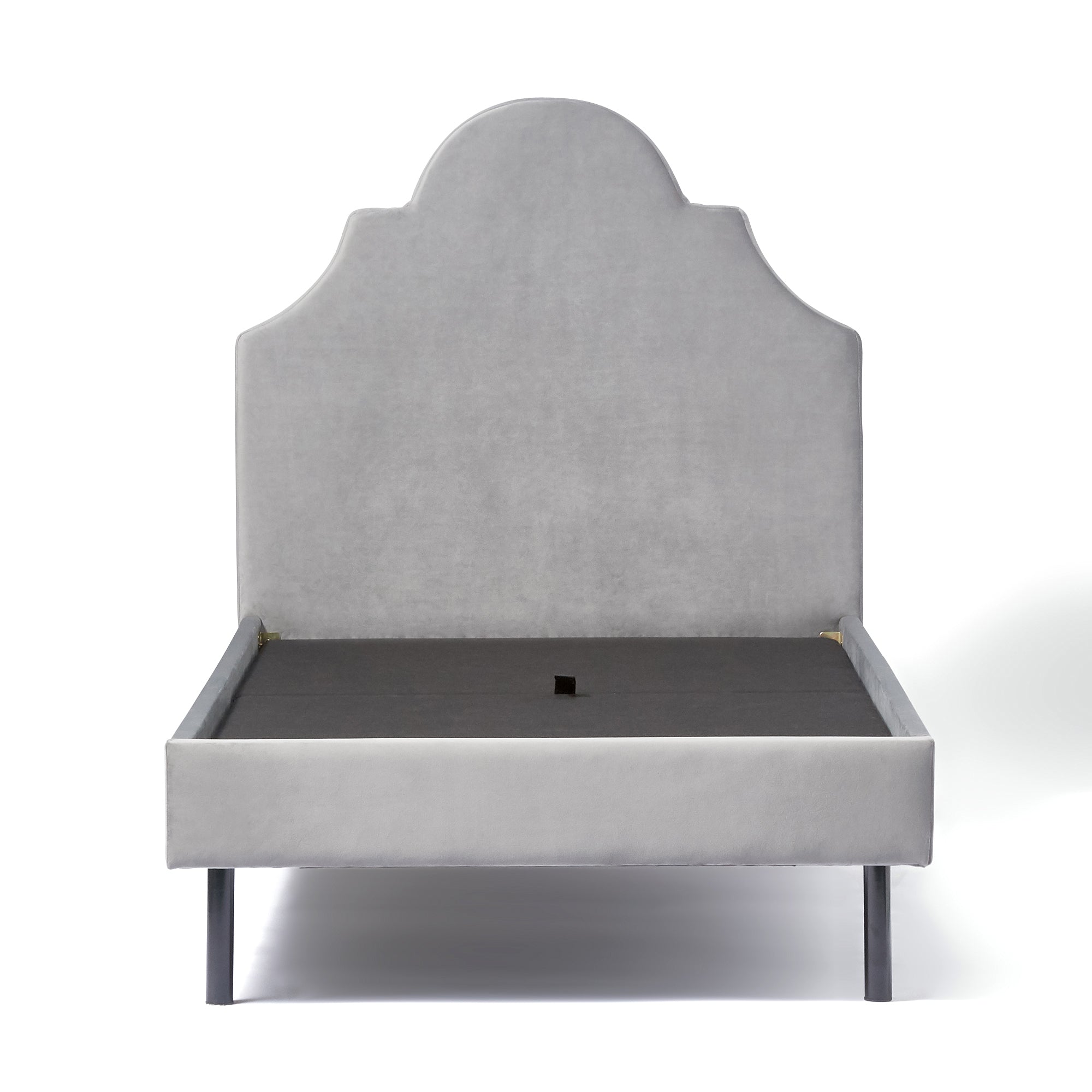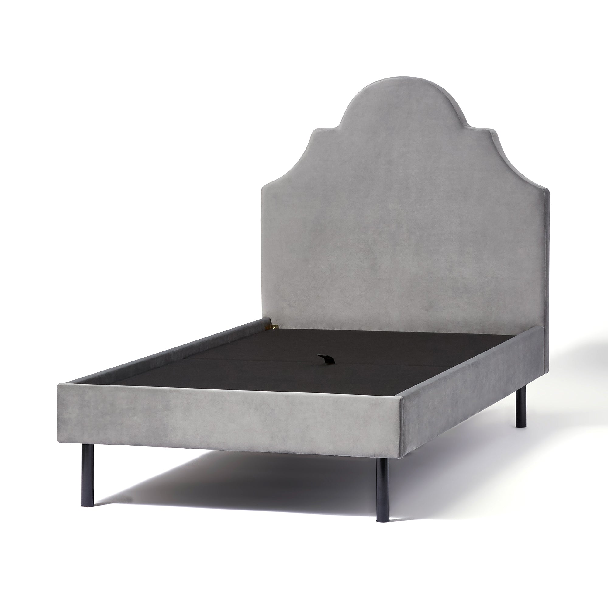 王冠形状のヘッドノードと起毛生地がエレガントな、Francfrancらしい生地張りのベッドフレームです。パーツごとに起毛の向きが異なるので、見る位置によって光の当たり方が変わり、幻想的な空間を演出します。※マットレスは別売りです。ご注意ください。※シングルサイズの画像を使用しています。ベッド下空間も広く、収納スペースとして活用できます。布部分は定期的にブラッシングをすることで綺麗な状態を保つことができます。ドレッサーや間接照明と合わせ、こだわりの光るベッドルームに。