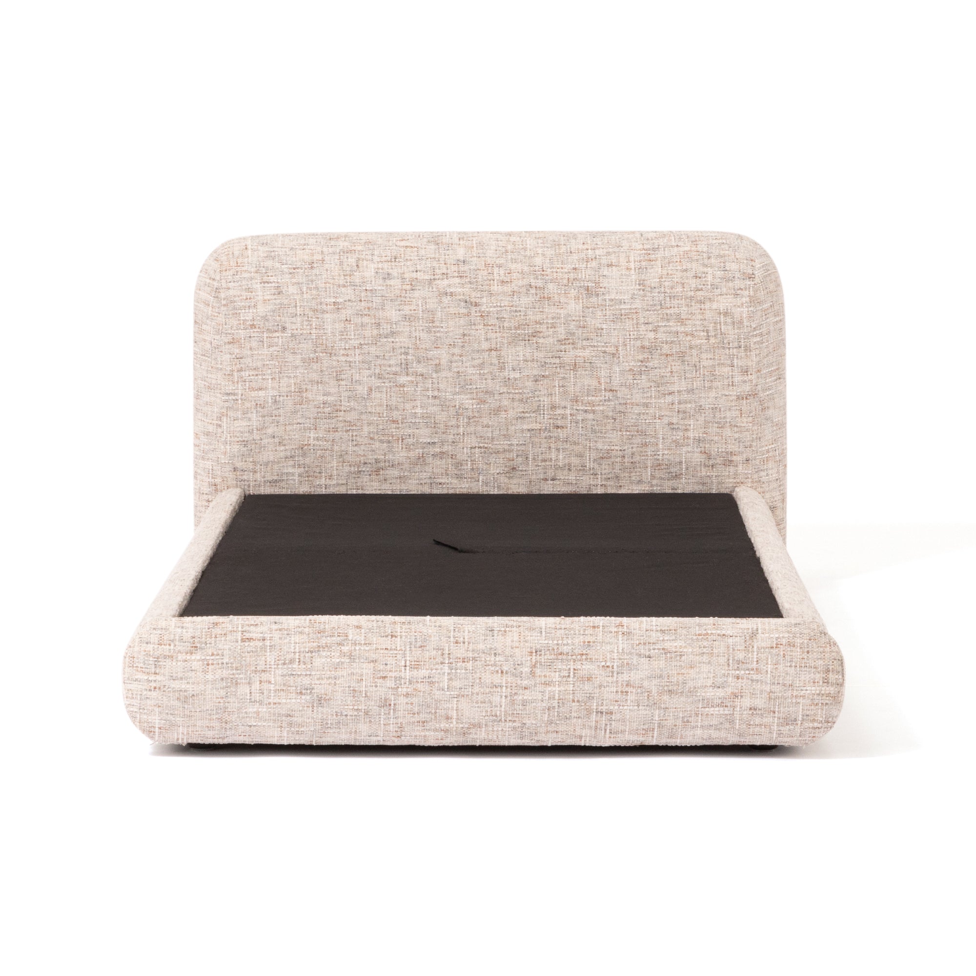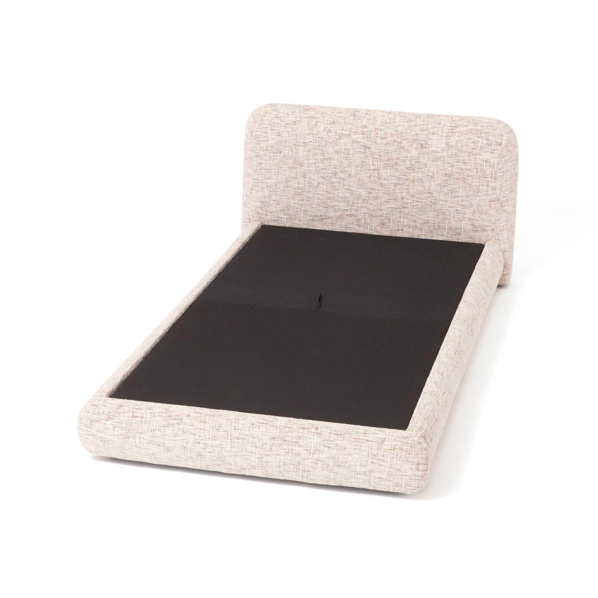 穏やかな丸みを帯びたフォルムが心地よいくつろぎを演出する、ロータイプベッドです。ベッド上の空間が広く、圧迫感を感じにくいロータイプはお部屋を広く見せてくれます。フレームには上質感のある触り心地のよい、シェニール調の生地を使用。ヘッドはゆったりとくつろげるよう背もたれになる高さになっています。ホテルライクなコーディネートにおすすめです。