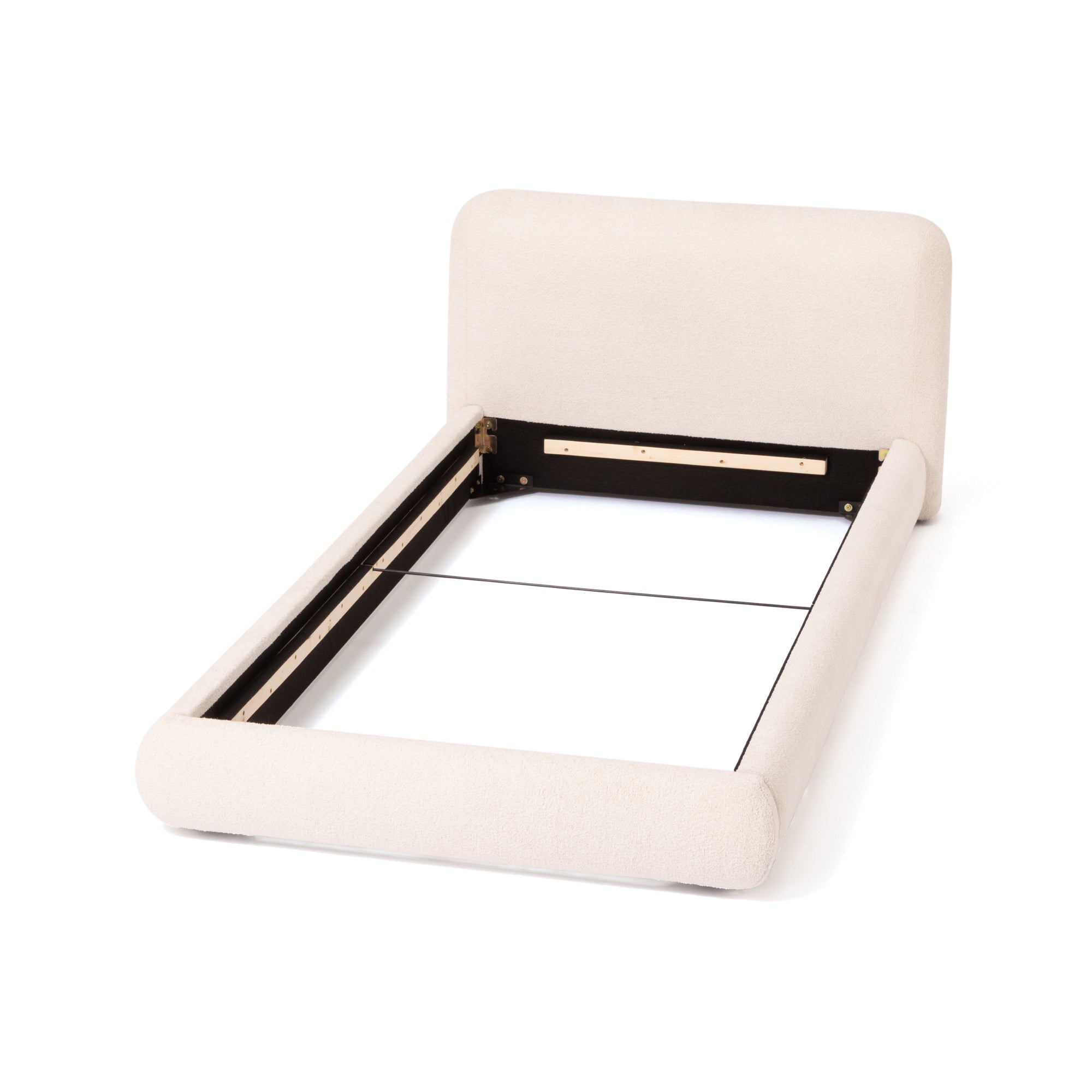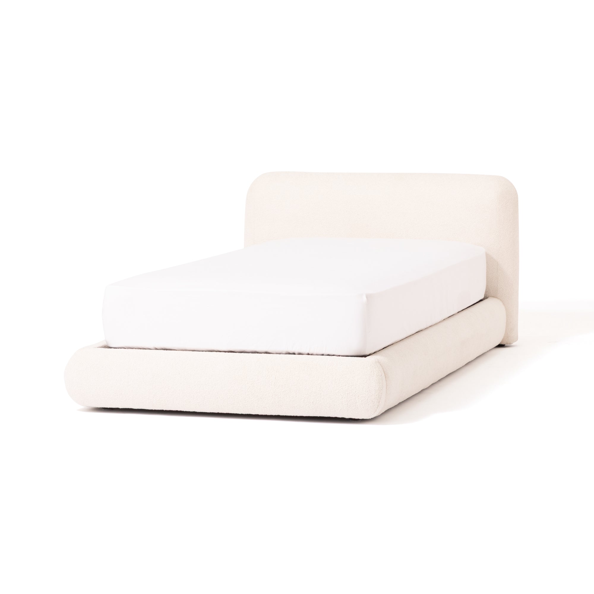 穏やかな丸みを帯びたフォルムが心地よいくつろぎを演出する、ロータイプベッドです。ベッド上の空間が広く、圧迫感を感じにくいロータイプはお部屋を広く見せてくれます。フレームには上質感のある触り心地のよい、上品なホワイトの起毛生地を使用。ヘッドはゆったりとくつろげるよう背もたれになる高さになっています。ホテルライクなコーディネートにおすすめです。静かな夜と朝の綺麗な光をイメージして「Aube(夜明け)」+「Belle(美しい)」を組み合わせ「Aubelle(オーベル)」と名付けました。
