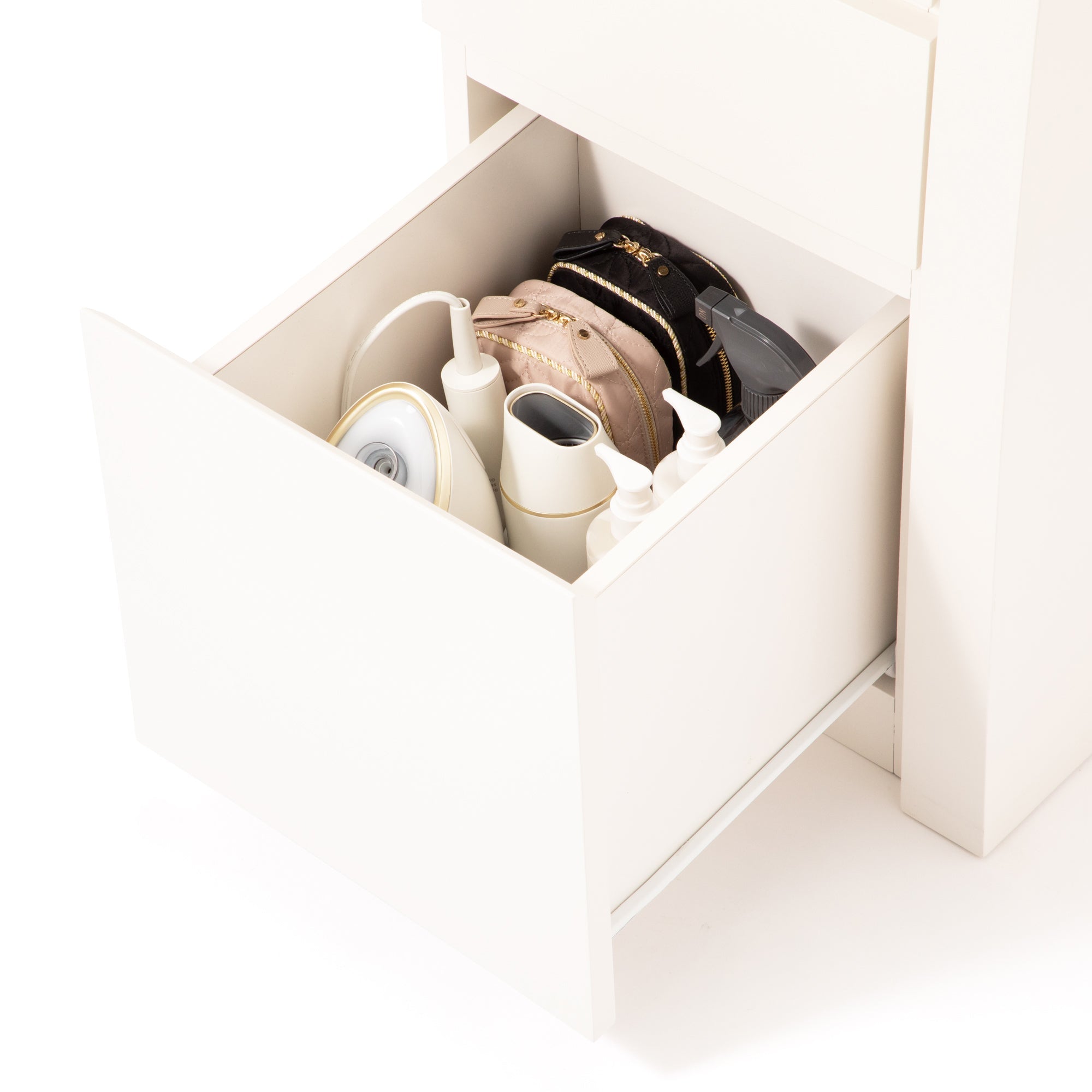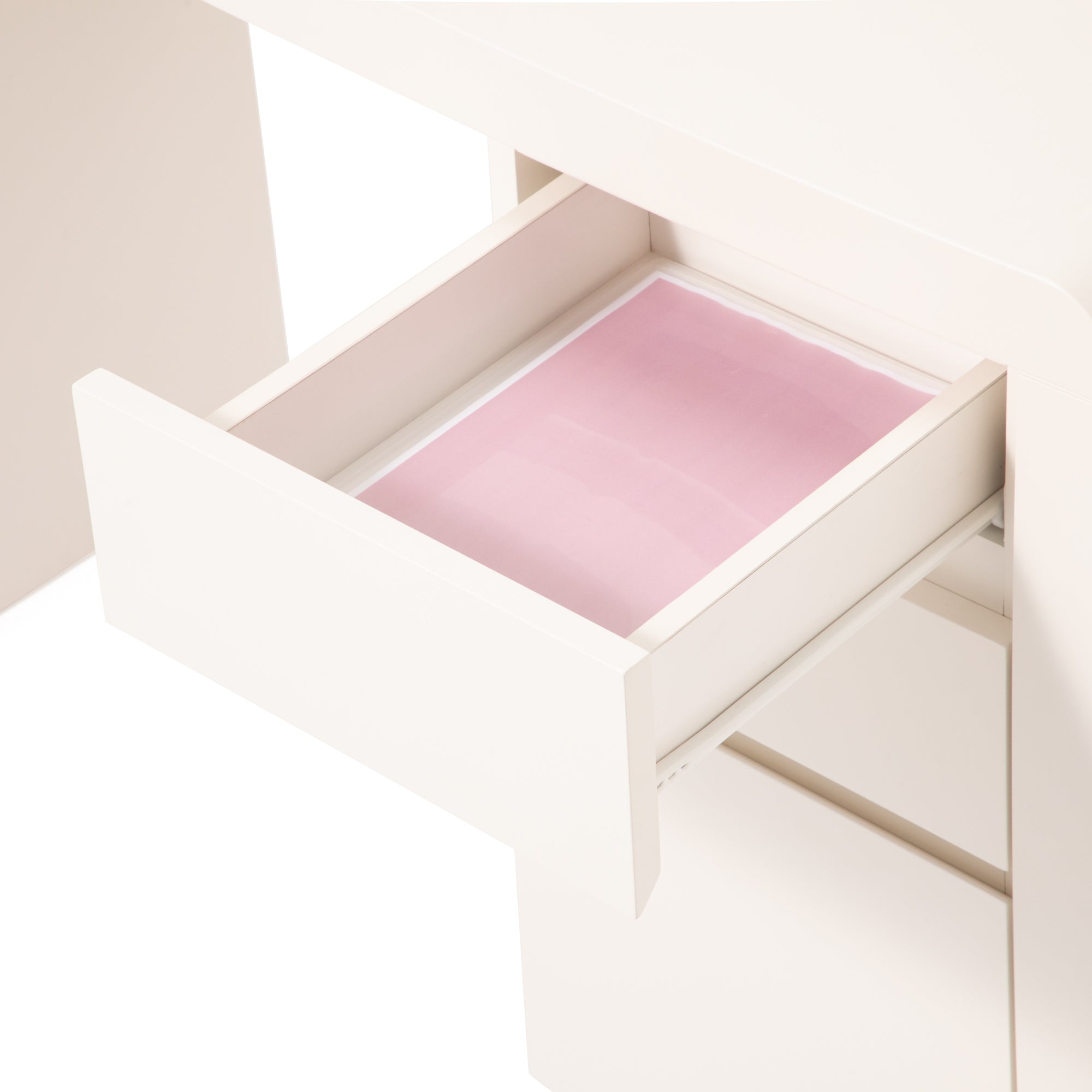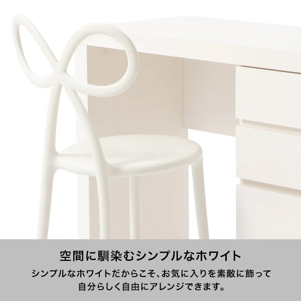 曲線的でボリュームのあるデザインが印象的なコスメデスクです。シンプルな白家具なので、小物やチェアで遊びを加えたコーディネートが楽しめます。お気に入りを素敵に飾ったり自分好みに自由な使い方ができるなどの意味を込めて、marvelous(素敵)+ leeway(自由・余裕)=「マーレ/marle」と名付けました。