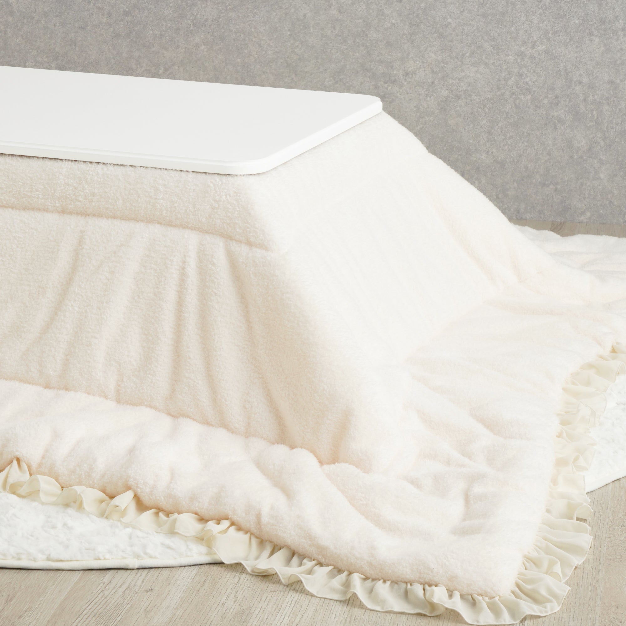 シャトンこたつテーブル&ホワモコ フリル こたつブランケット スクエア