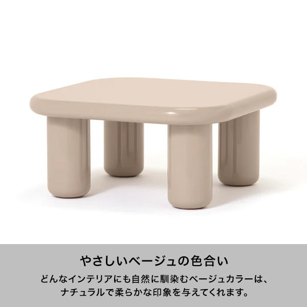 ぽってりと丸みを帯びた主役級テーブルぽってりとした丸みと厚みがトレンドを感じさせるコーヒーテーブルです。ボリュームのある太めの円柱脚も存在感たっぷり。安定感のある作りで安心してご利用いただけます。宝石のような輝き世界的なインテリアトレンドであるハイグロス塗装(鏡面仕上げ)を施しました。宝石を思わせるつややかな光沢が最大の魅力です。組み合わせ自由自在どんなインテリアにもしっくりなじむベージュカラーは、75cm角サイズと50cm角サイズの2サイズ展開。サイズ違いのテーブルを組み合わせると空間にリズムが生まれます。50cm角サイズにはレッド・グリーンカラーもご用意しましたのであえて色違いのアイテムを組み合わせたり、ぽってりした形状がチャーミングなボヌールソファとコーディネートするのもおすすめです。