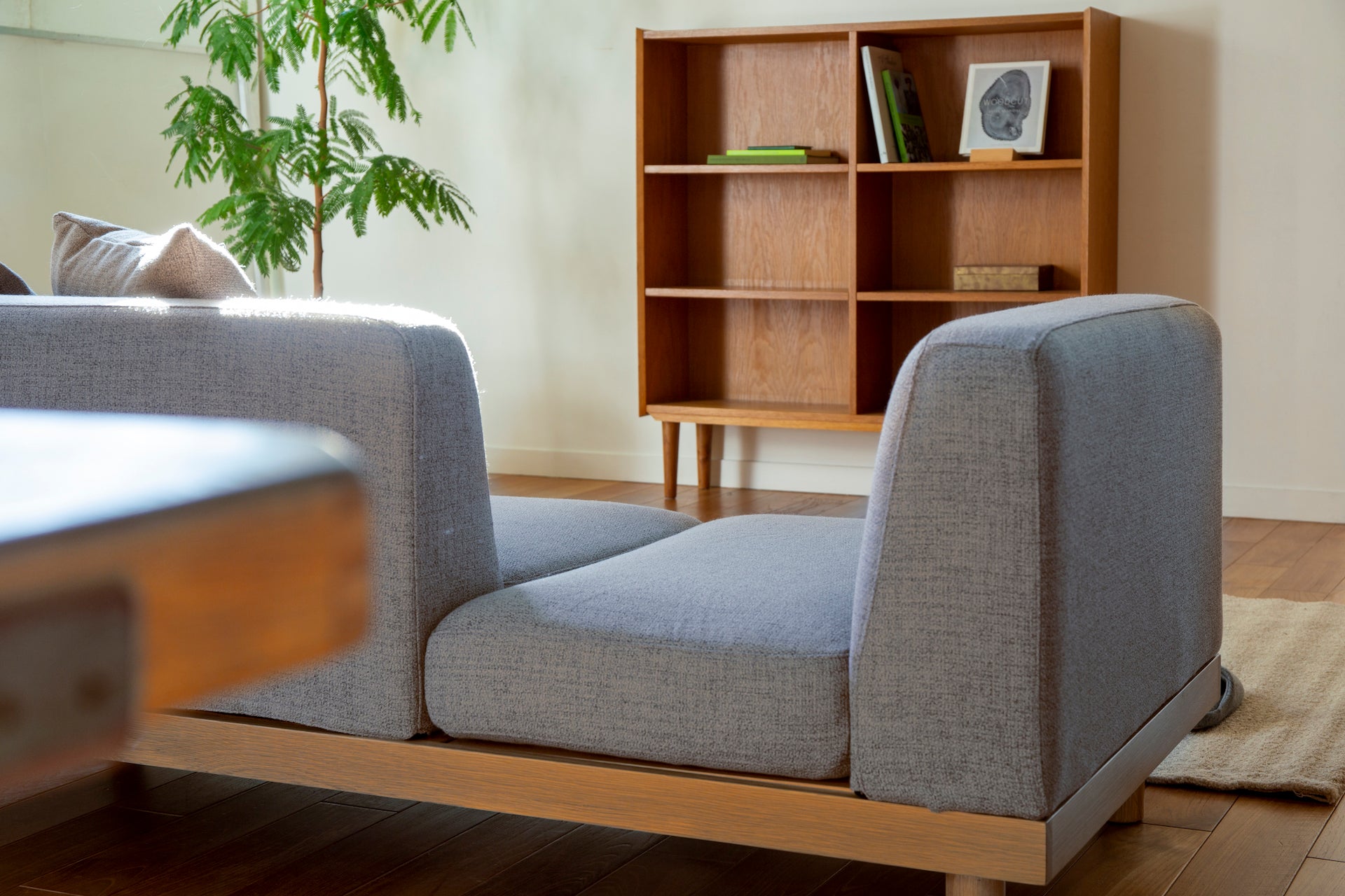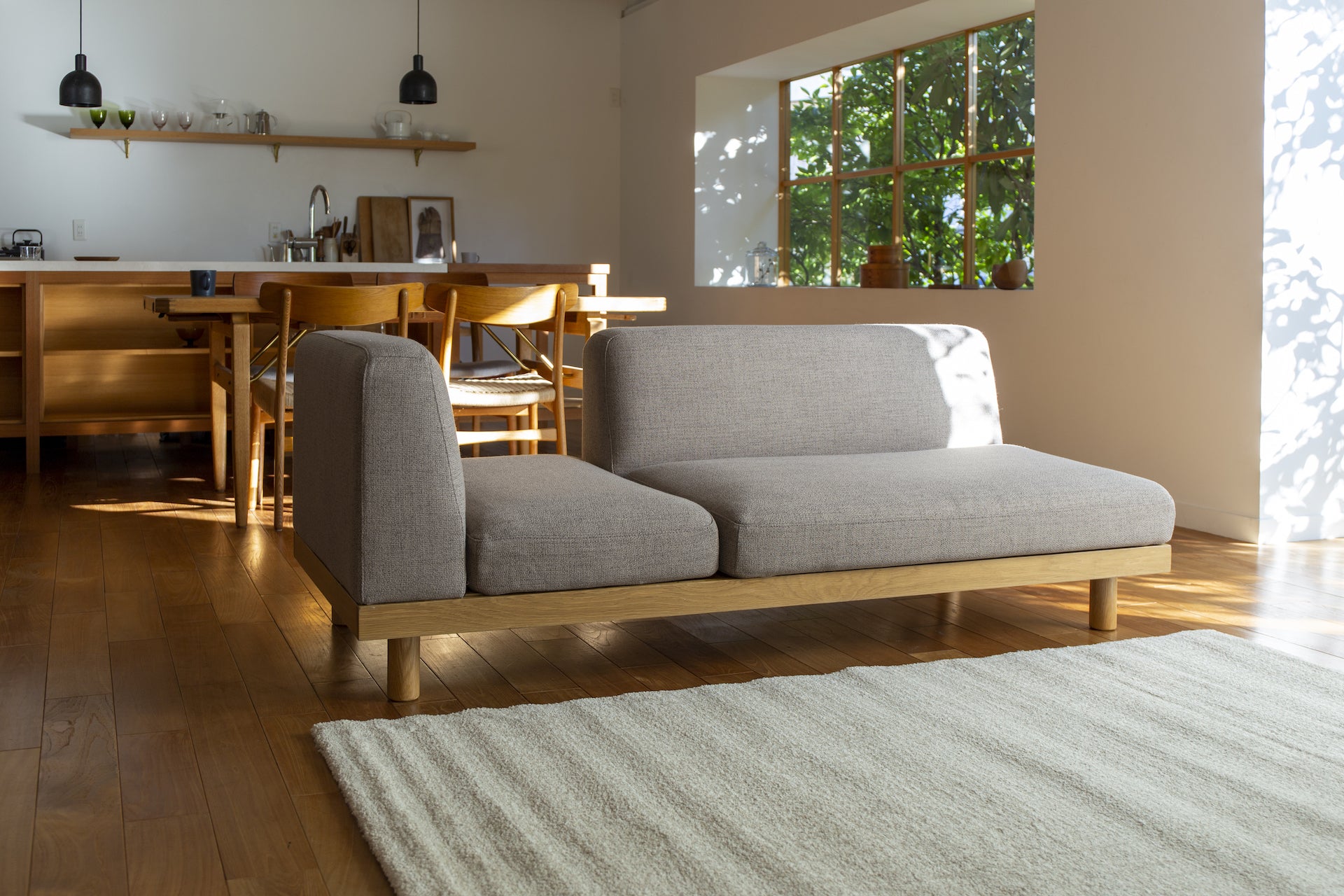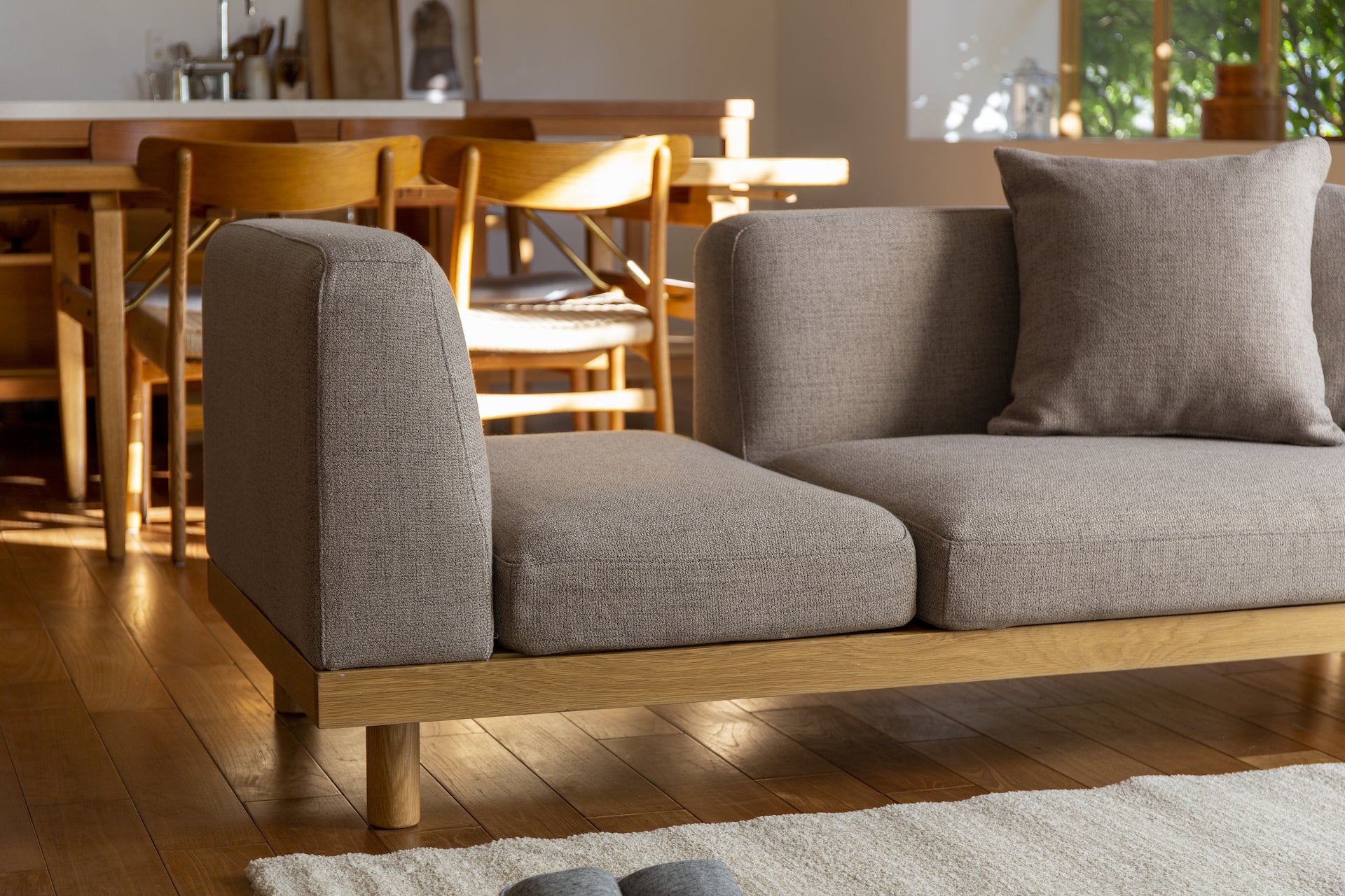 ソファの背が途中で途切れているデザインで、テレビやリビングにいる子供、窓の景色を遮らず、リビングに圧迫感を与えないソファです。大小2つのソファの向きを付け替えることができ、お部屋の雰囲気やライフスタイルに合わせて自由にレイアウトすることができます。各パーツのカバーはドライクリーニングが可能なので、衛生的に使用できます。