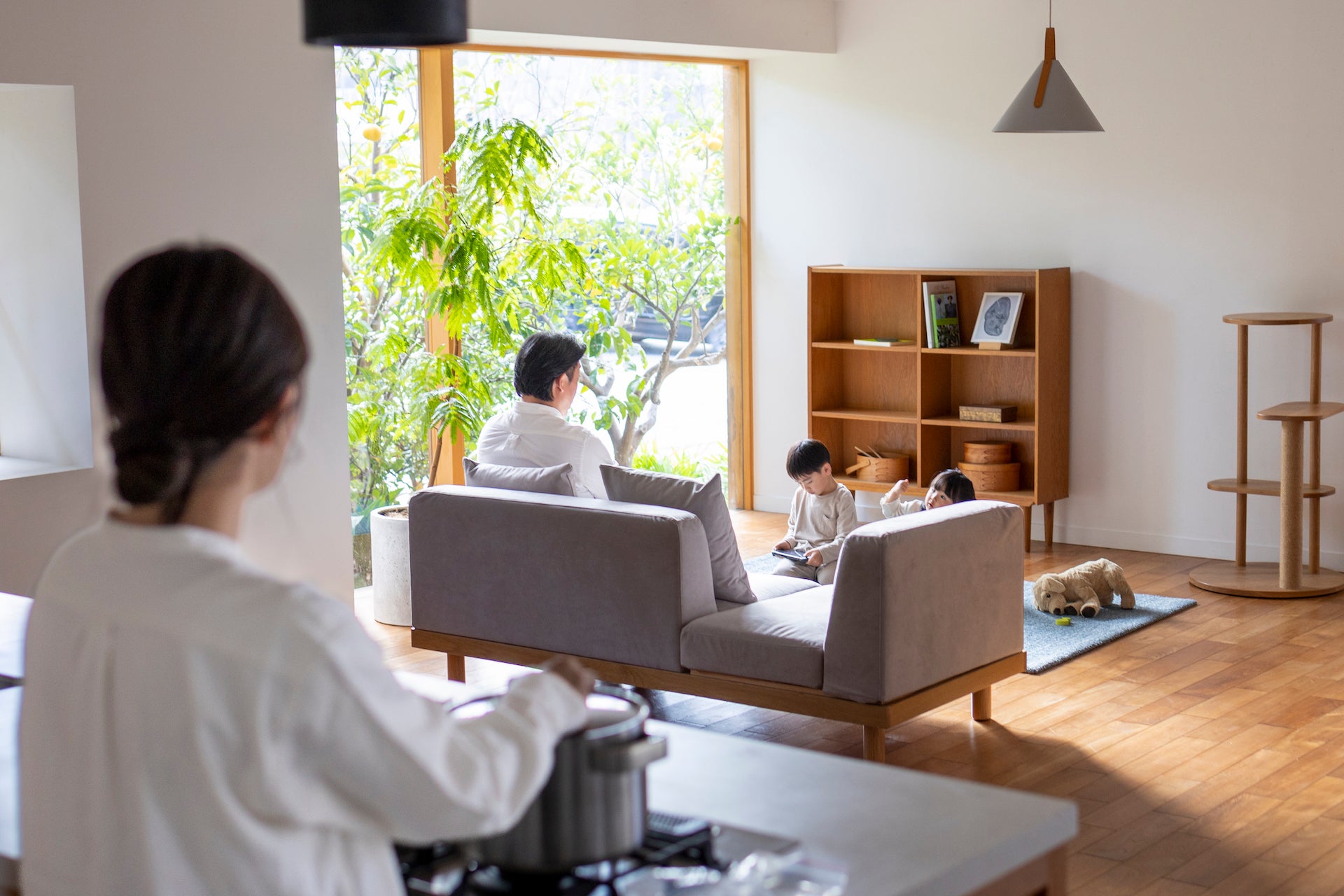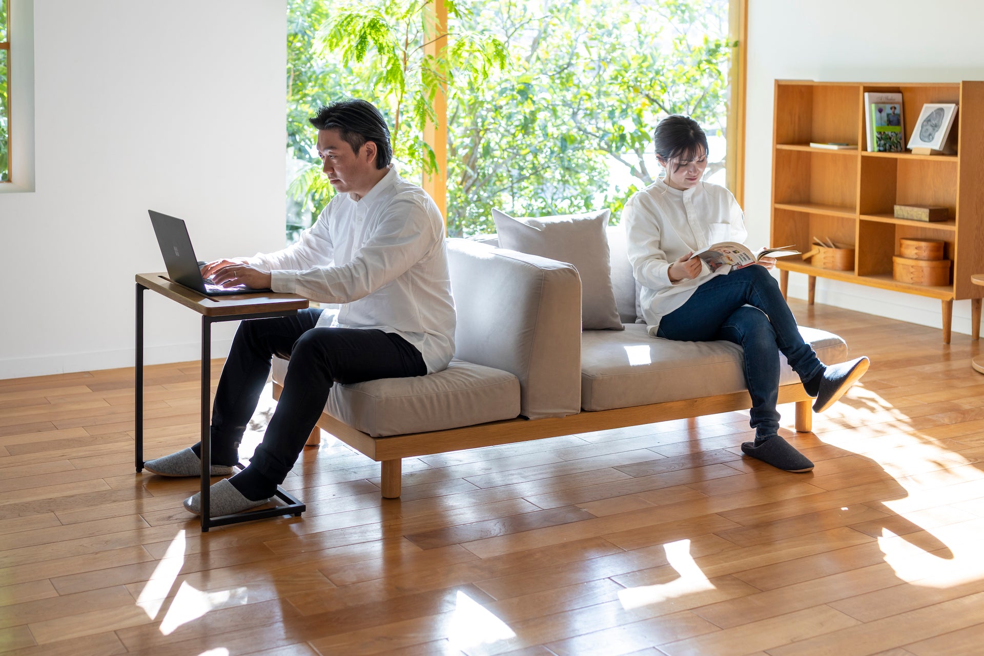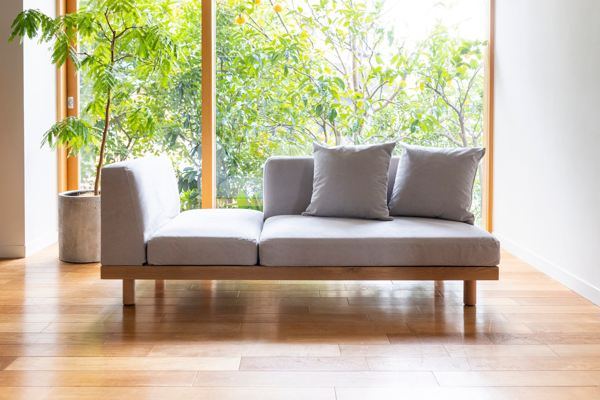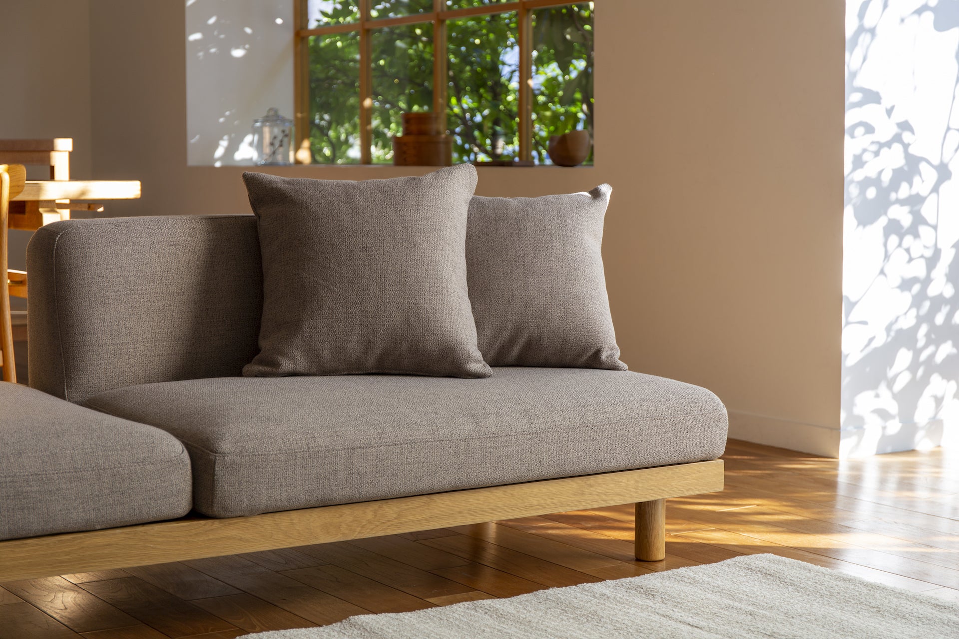 ソファの背が途中で途切れているデザインで、テレビやリビングにいる子供、窓の景色を遮らず、リビングに圧迫感を与えないソファです。大小2つのソファの向きを付け替えることができ、お部屋の雰囲気やライフスタイルに合わせて自由にレイアウトすることができます。各パーツのカバーはドライクリーニングが可能なので、衛生的に使用できます。