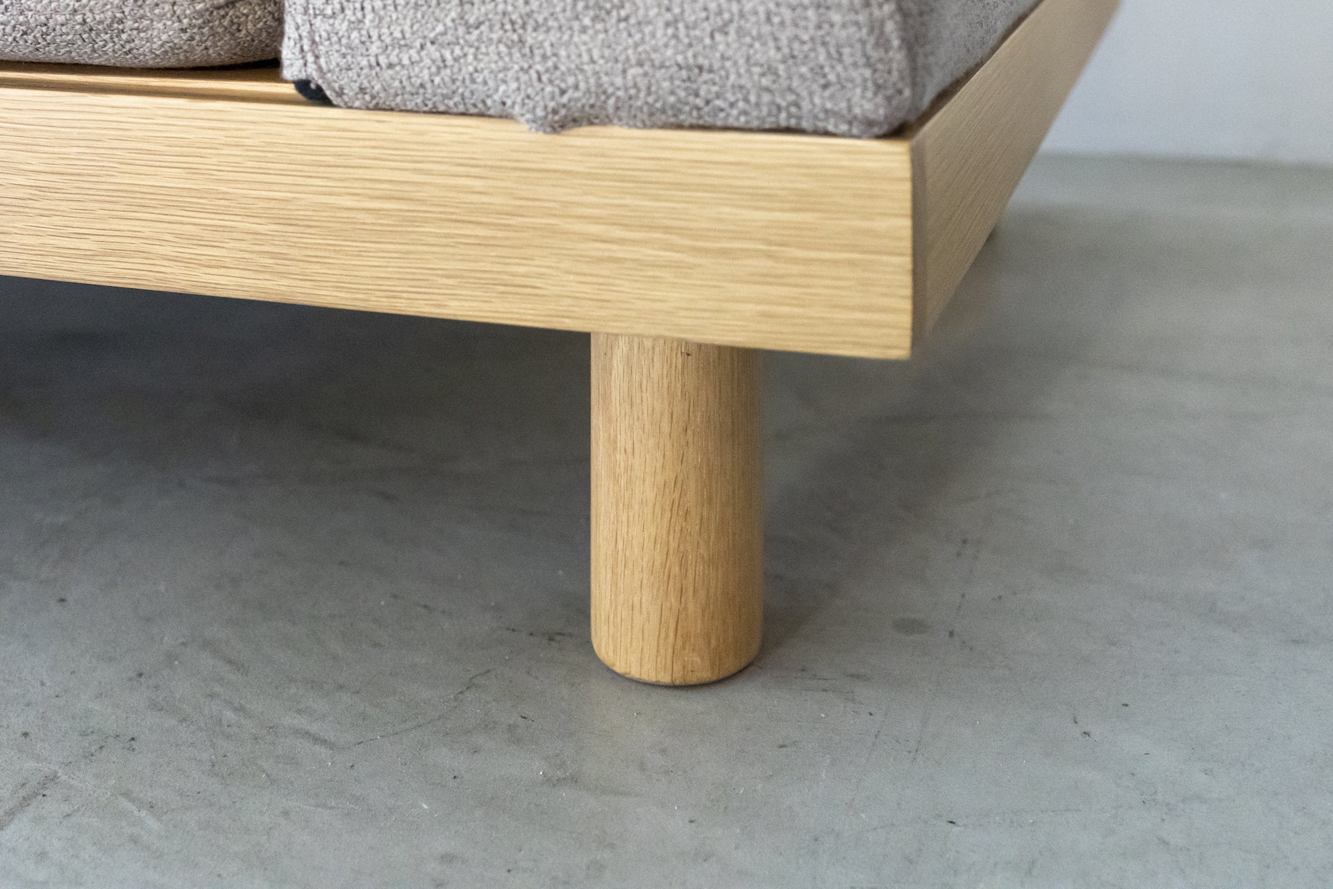 ポリエステル, フェザー, シリコンフィル, ウレタンフォーム, オーク無垢材, ウェービングベルト, ラッカー塗装, 木枠