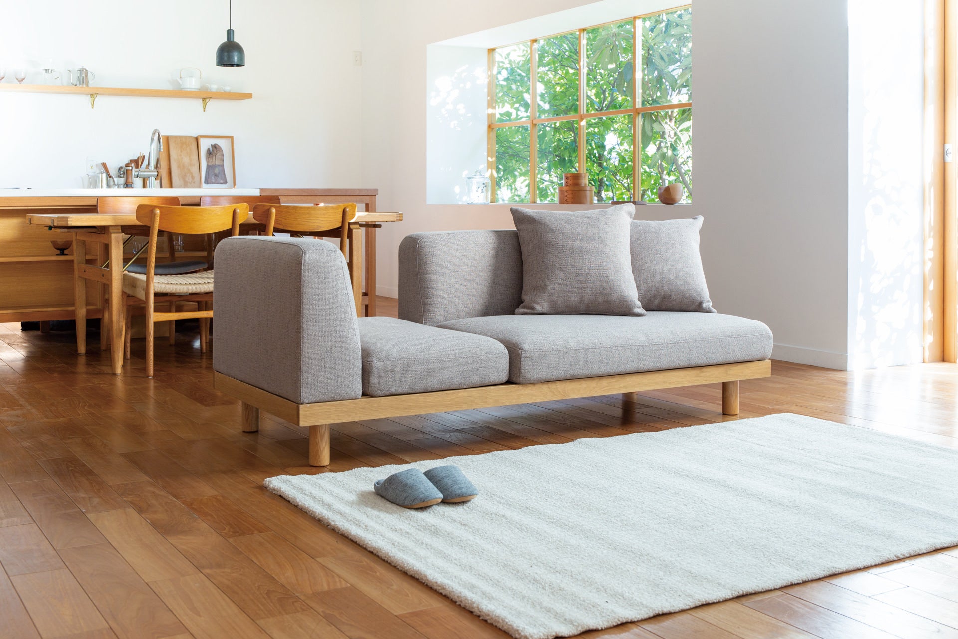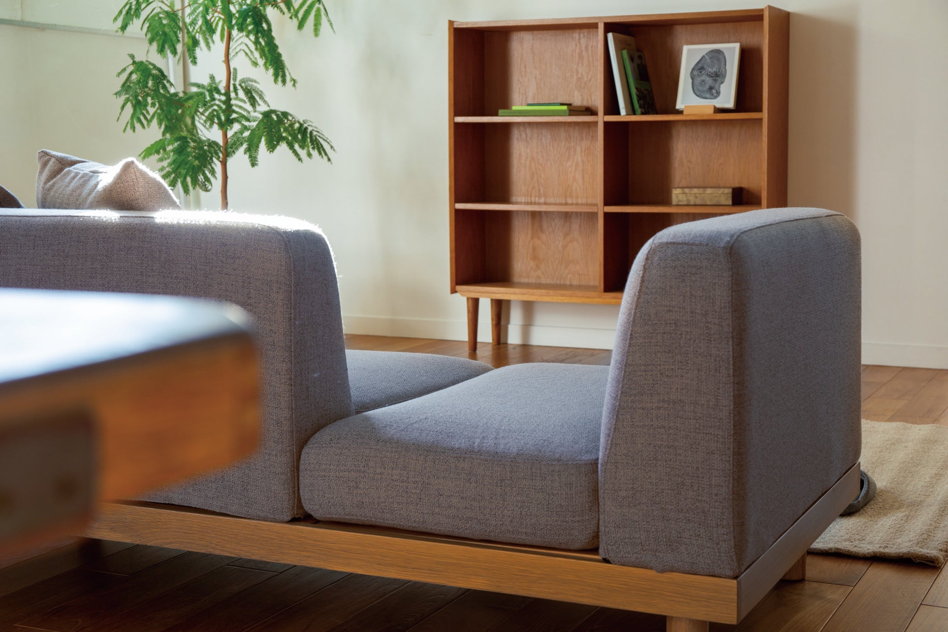 ソファの背が途中で途切れているデザインで、テレビやリビングにいる子供、窓の景色を遮らず、リビングに圧迫感を与えないペットの爪に強い生地を使用したソファです。大小2つのソファの向きを付け替えることができ、お部屋の雰囲気やライフスタイルに合わせて自由にレイアウトすることができます。各パーツのカバーはドライクリーニングが可能なので、衛生的に使用できます。