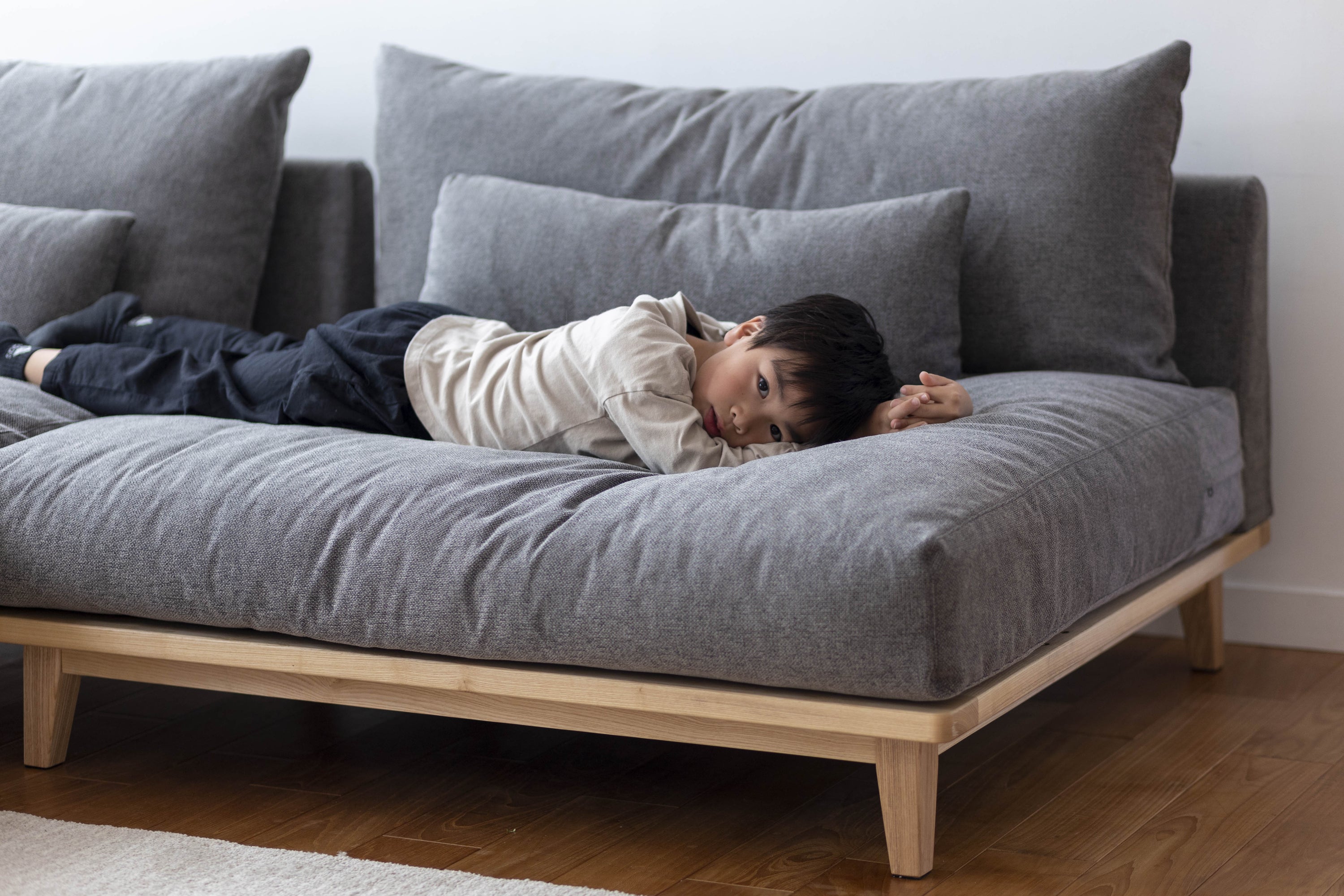 アッシュ無垢材, シリコンフィル, フェザー, オイル塗装, ウェービングベルト, ウレタンフォーム, 木枠