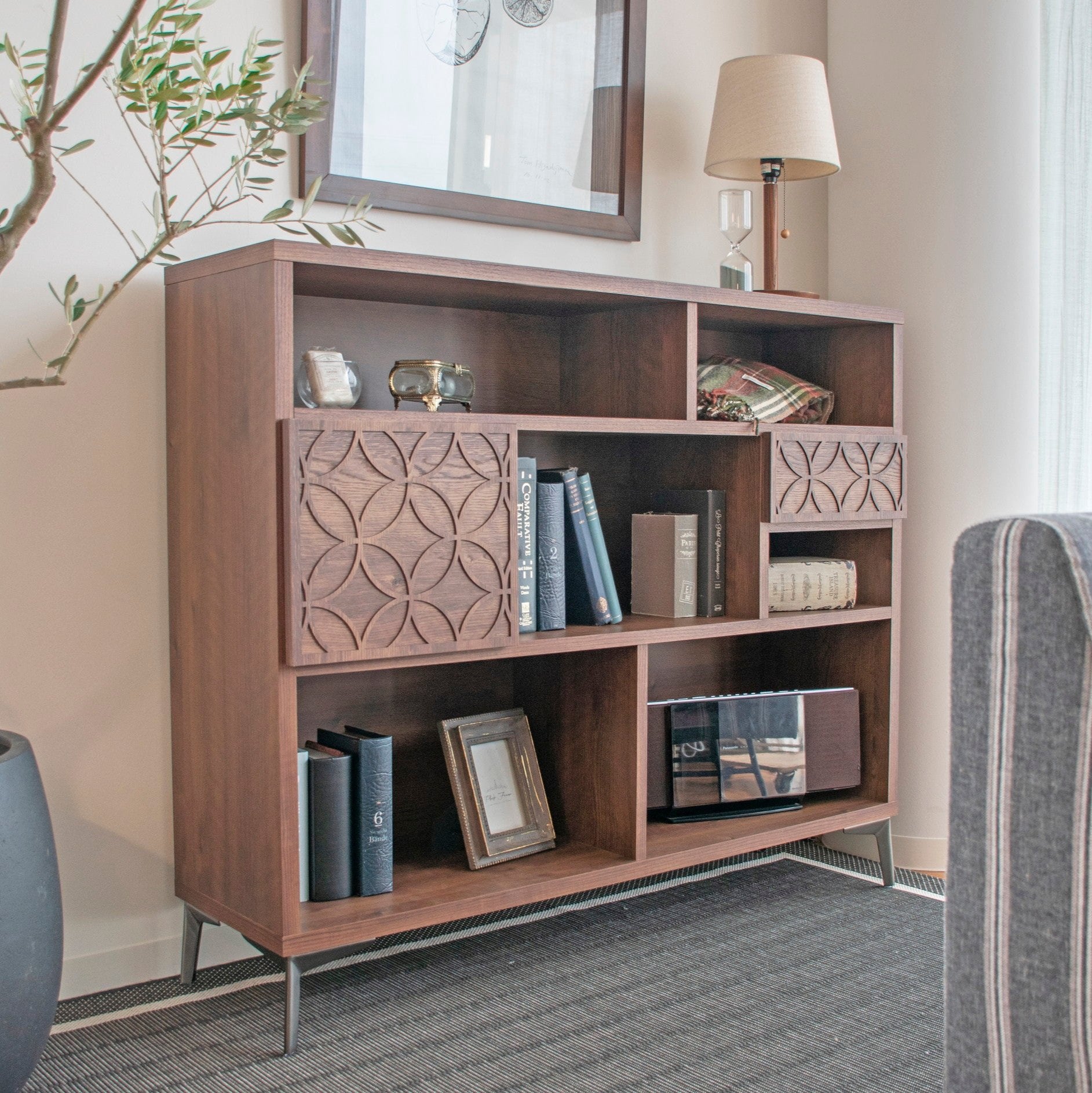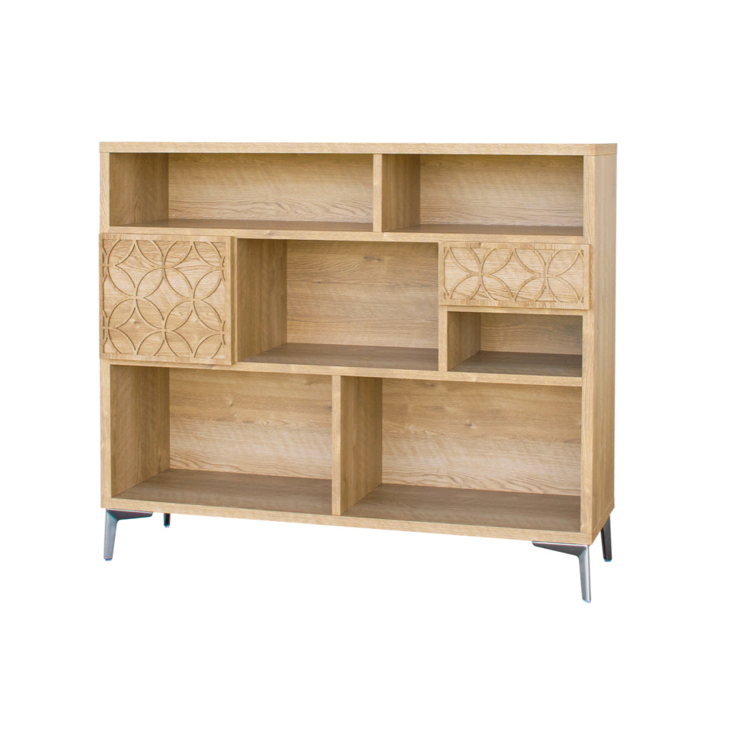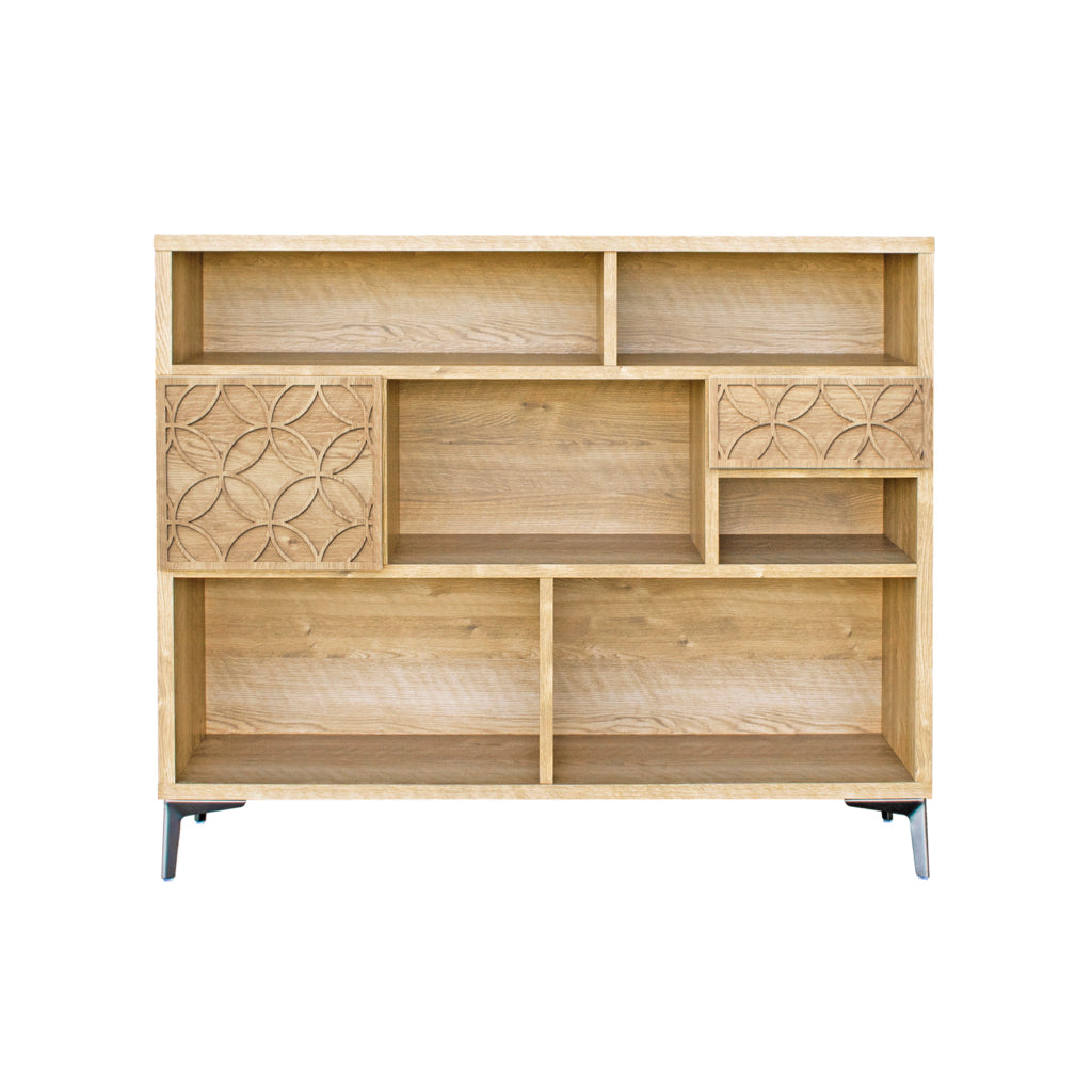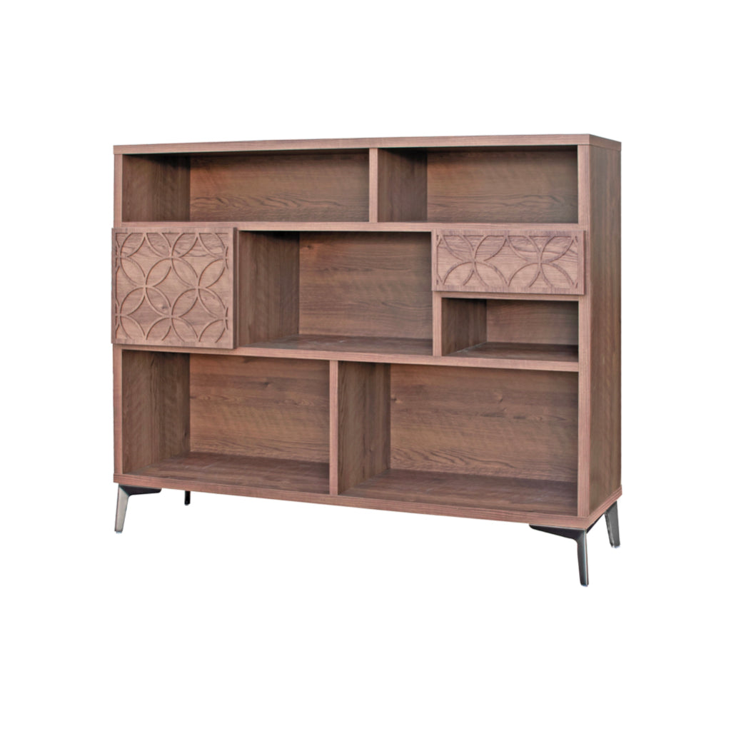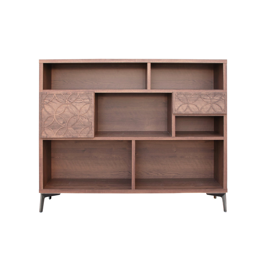 落ち着きの中にも趣のある印象を持つ意匠のシェルフです。様々なシーンで活用いただける2サイズから選べます。カジュアルのみならずアンティークな空間とも調和する優れた意匠性のあるアイテムです。
