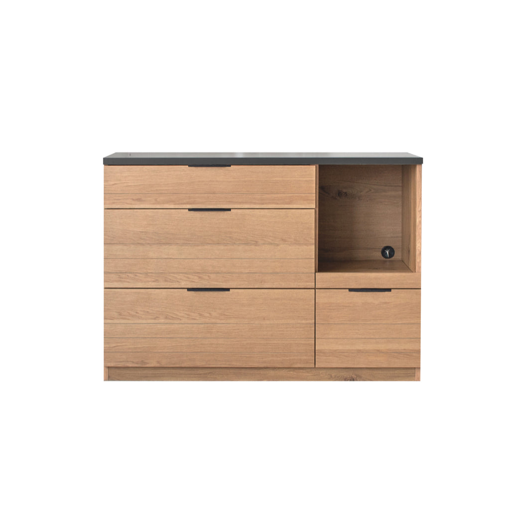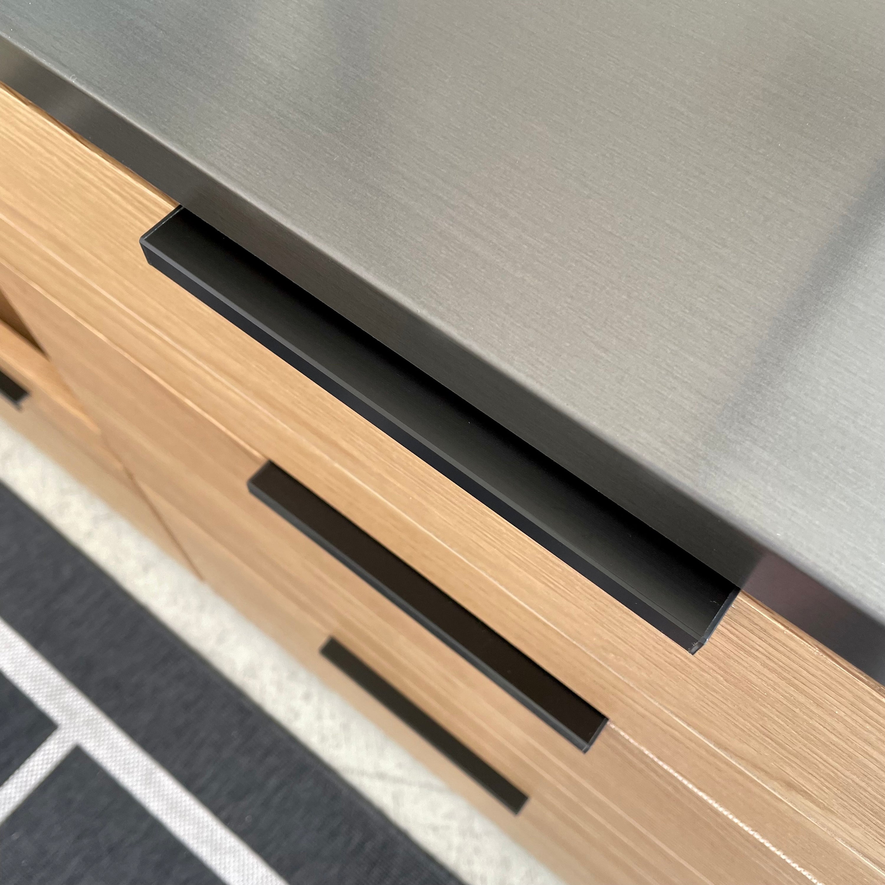 耐指紋・耐熱・耐薬品性に優れた特殊合板を天板部分に使用したキッチンカウンターです。ゴミ箱をすっぽり収めることができるダストカウンタータイプもございます。