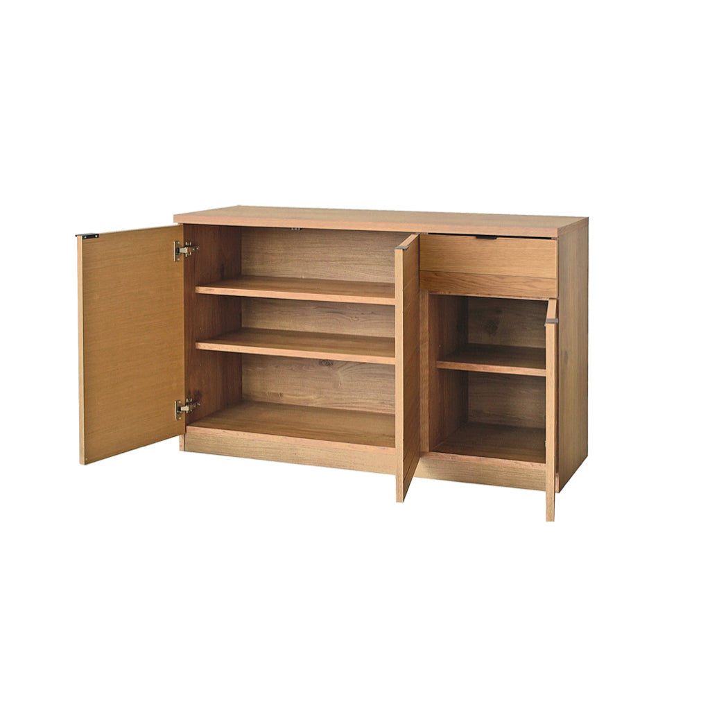 収納たっぷりで様々なものを収納することができるサイドボードです。オーク材を使用したスタイリッシュなデザインでどんなお部屋にもマッチします。