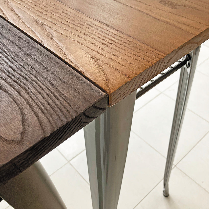 エルム無垢の表情豊かな天板とブラックスチール脚を合わせたハイテーブルです。カウンター使いはもちろん、立ち作業のワークテーブルとしても重宝します。