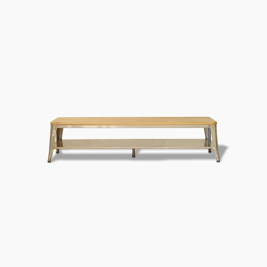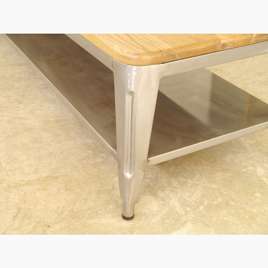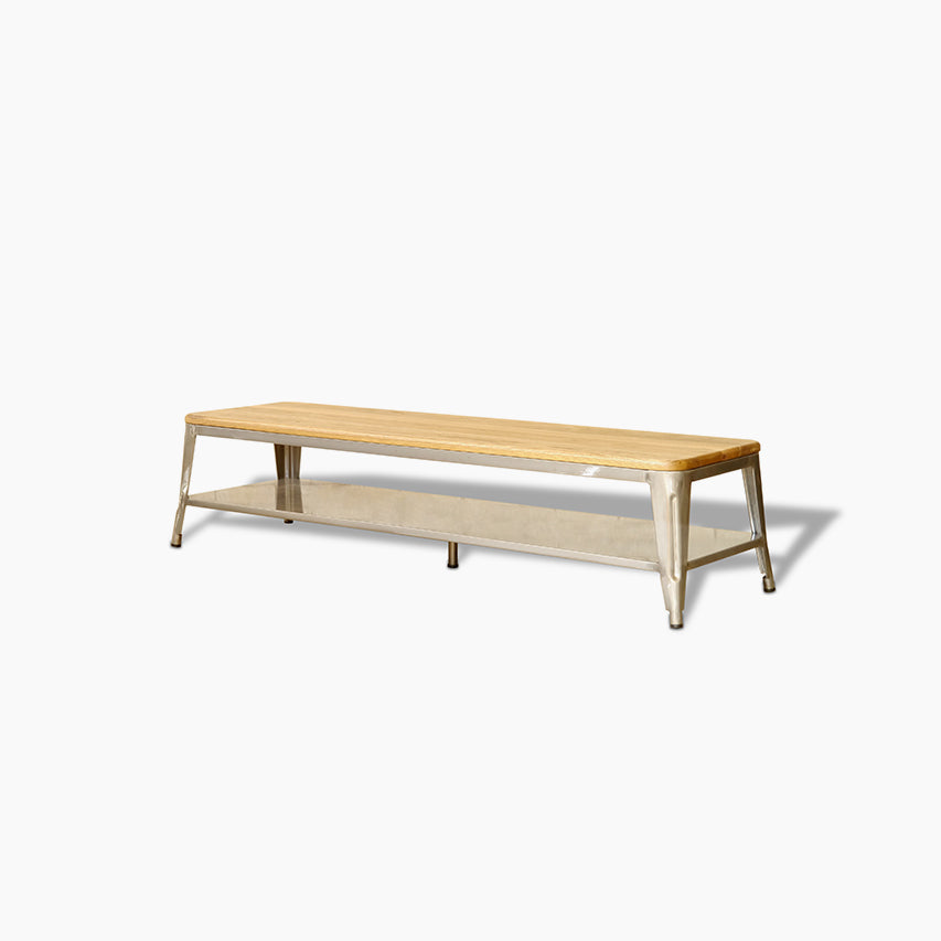 スチールフレームにエルム材天板を組み合わせたローボードです。幅160cmでAV機器や周辺機器をすっきり収められ、抜け感のあるオープン収納が配線や掃除もしやすいです。インダストリアル寄りの素材感で、無骨さと軽さを両立したテレビ台です。