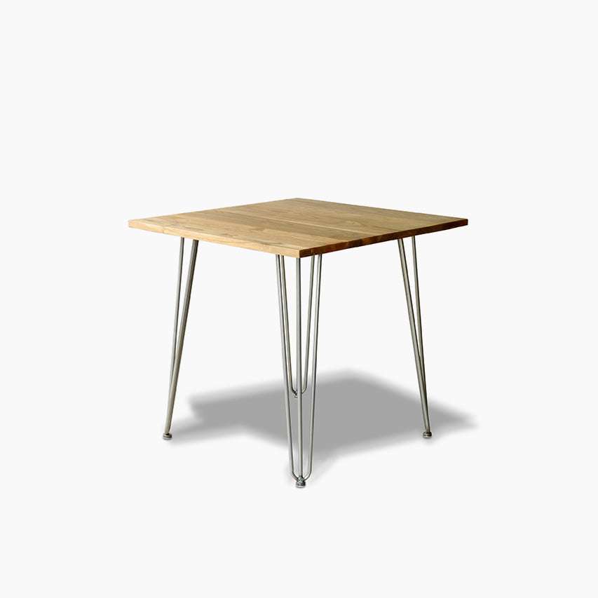木の豊かな表情とメタル脚の無骨さが魅力のダイニングテーブルです。シリーズのチェアやスツールと合わせた統一感のあるコーディネートが可能です。