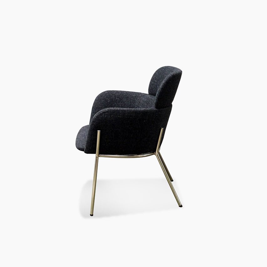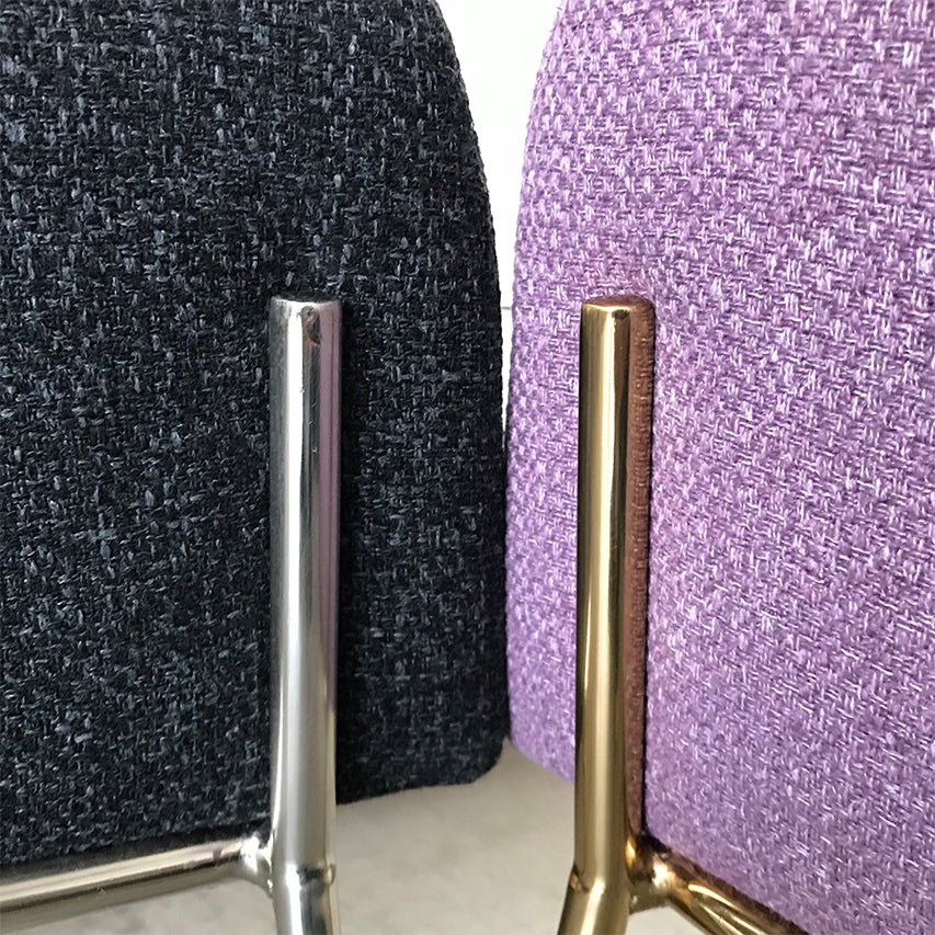 リビングのアクセントになるやわらかな表情を持つパーソナルチェアです。繊細なスチール脚にしっかりと張り込んだ座と背が美しいデザインです。色の組み合わせも可愛らしいチェアとなっています。生地とフレームの組み合わせはブラック×クリアとピンク×ゴールドの2色展開です。