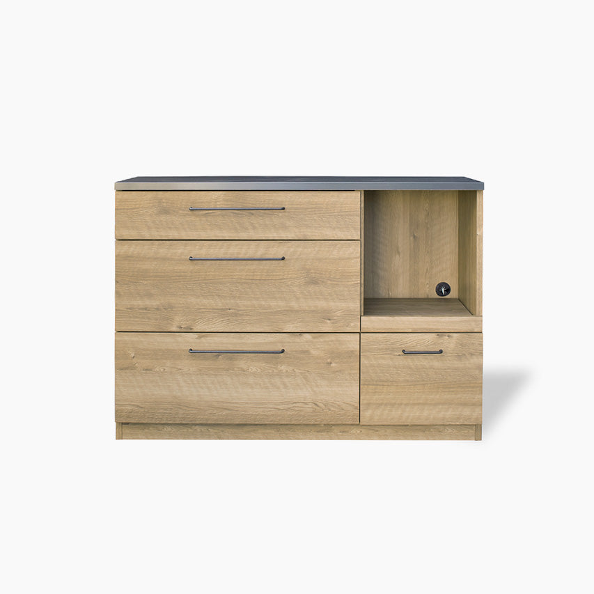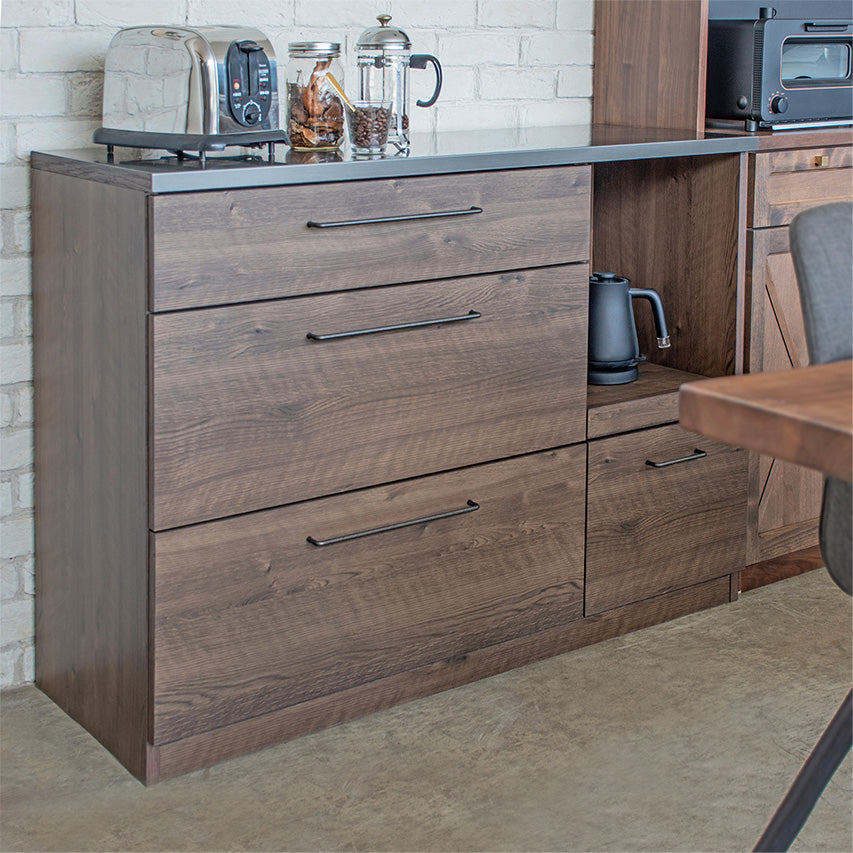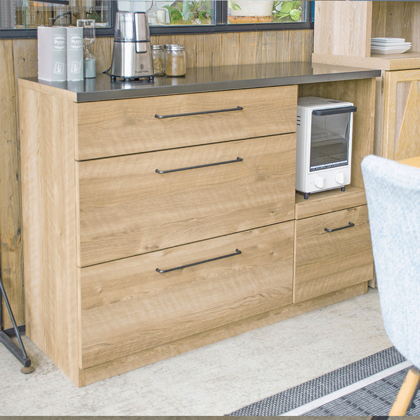 家電をまとめて置けて食器やストックをしまえる扉収納を備えたキッチンカウンターです。収納も多く便利なアイテムです。