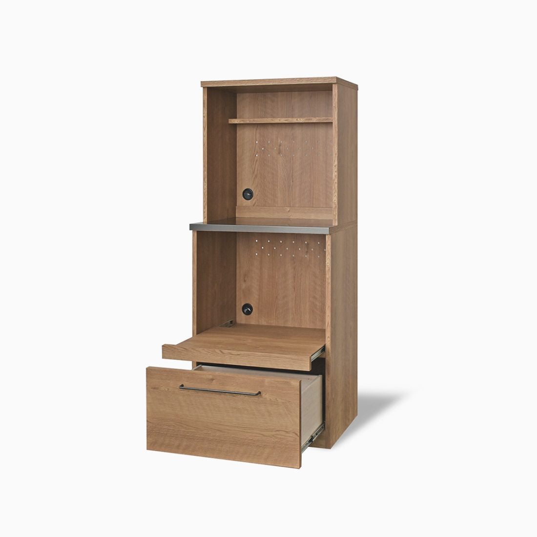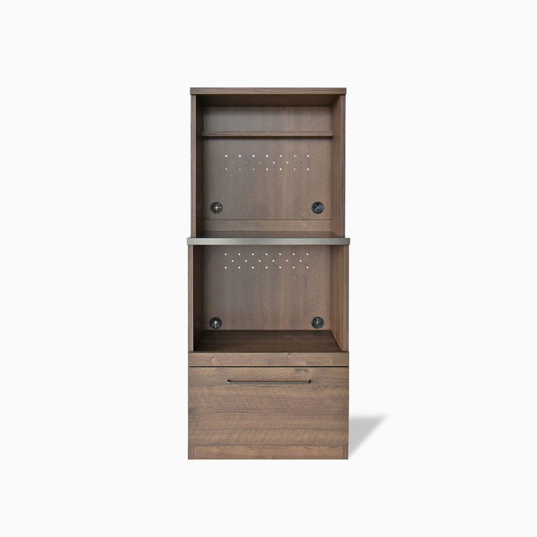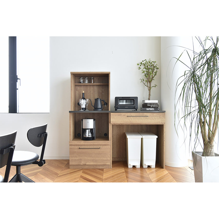 省スペースながら家電と食器を縦方向に効率よく収められるレンジボードのミドルタイプです。収納力もあり、日々の家事をスムーズにします。