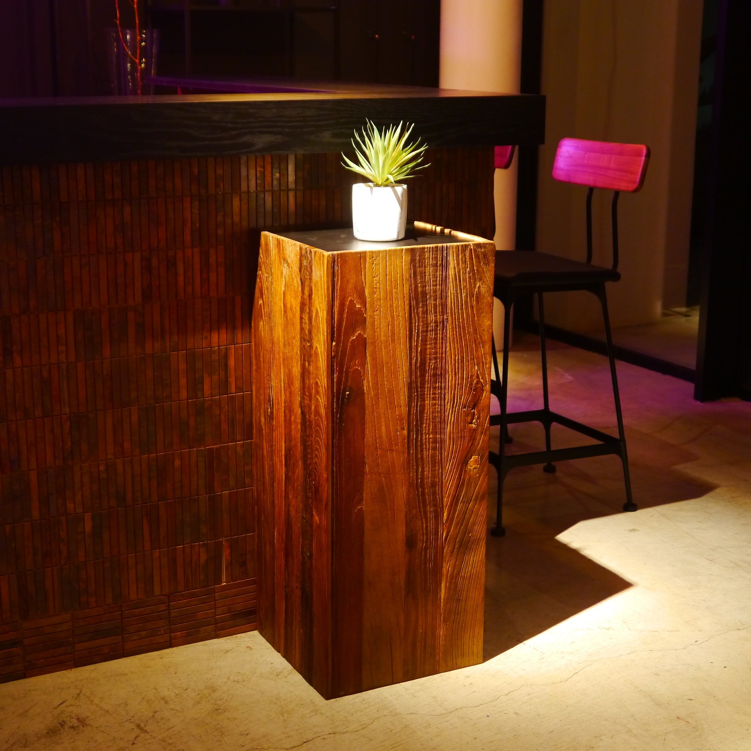 花を飾る、アートを飾るなど、空間に高さと雰囲気を作り出すシンプルな花台です。木のスタンドでナチュラルな印象を与えます。