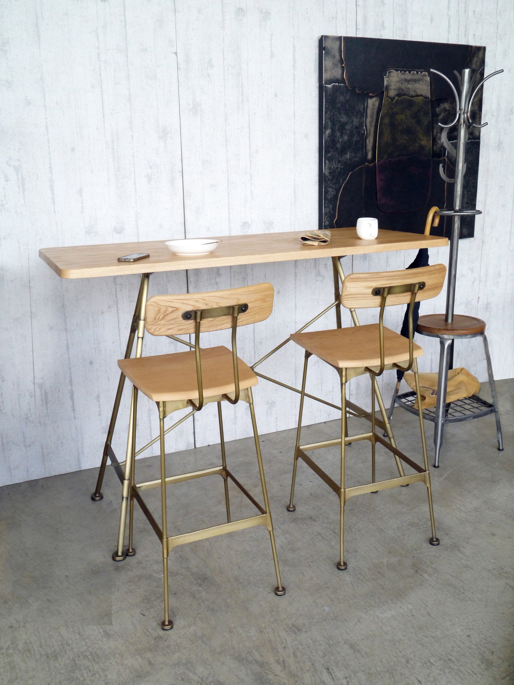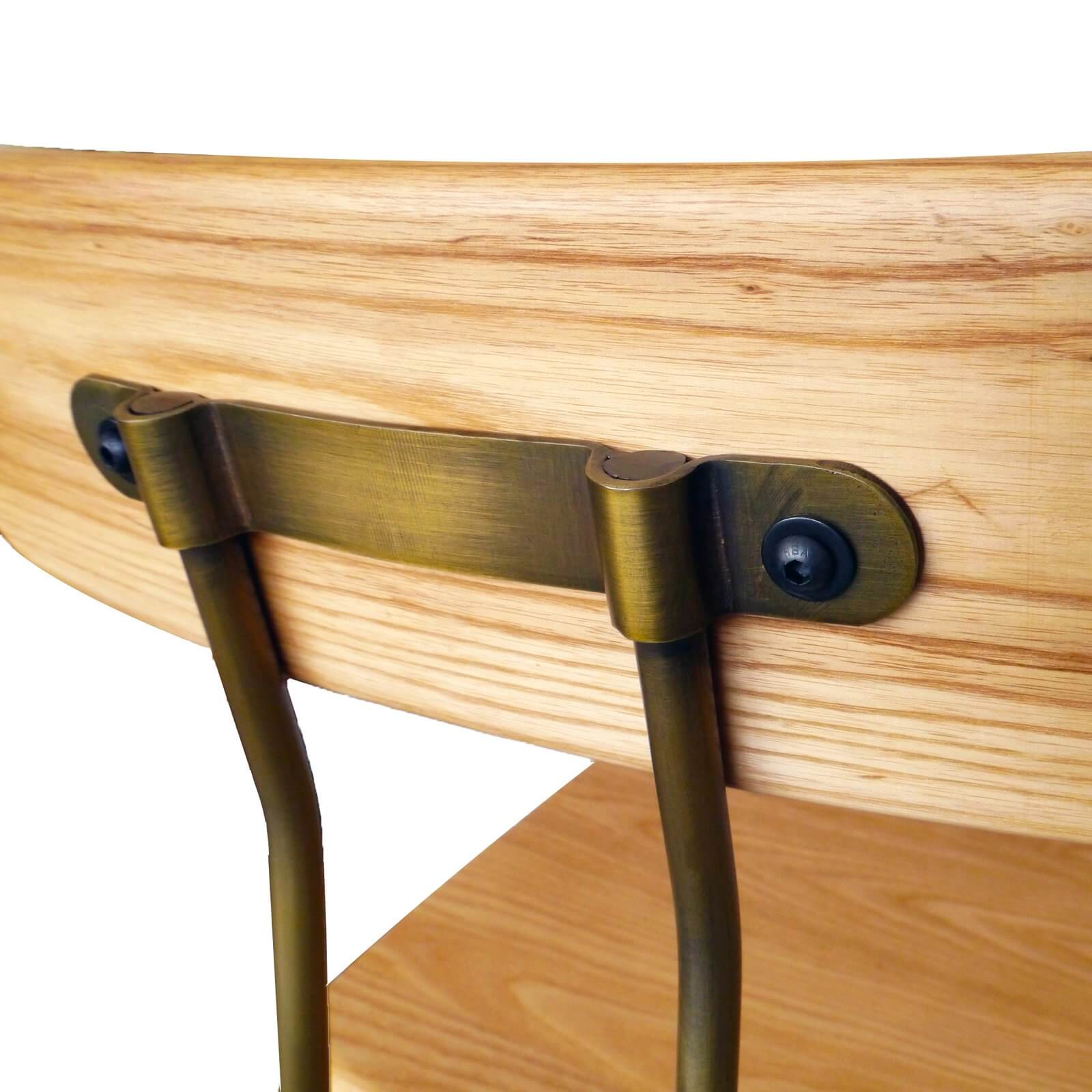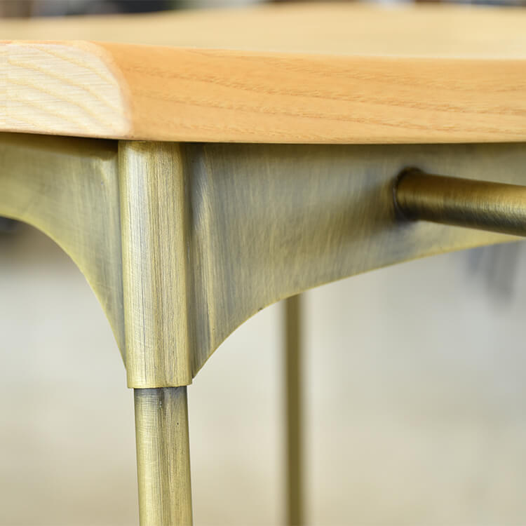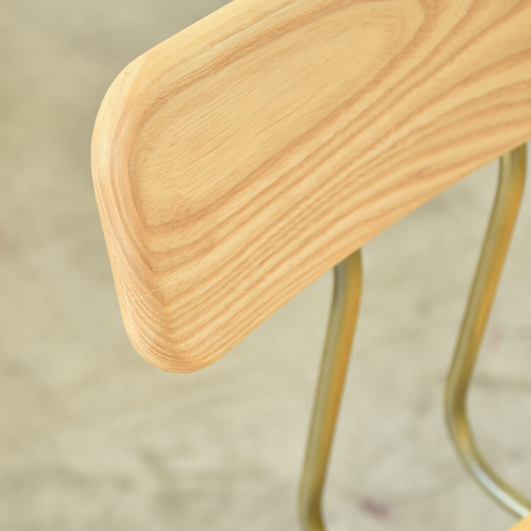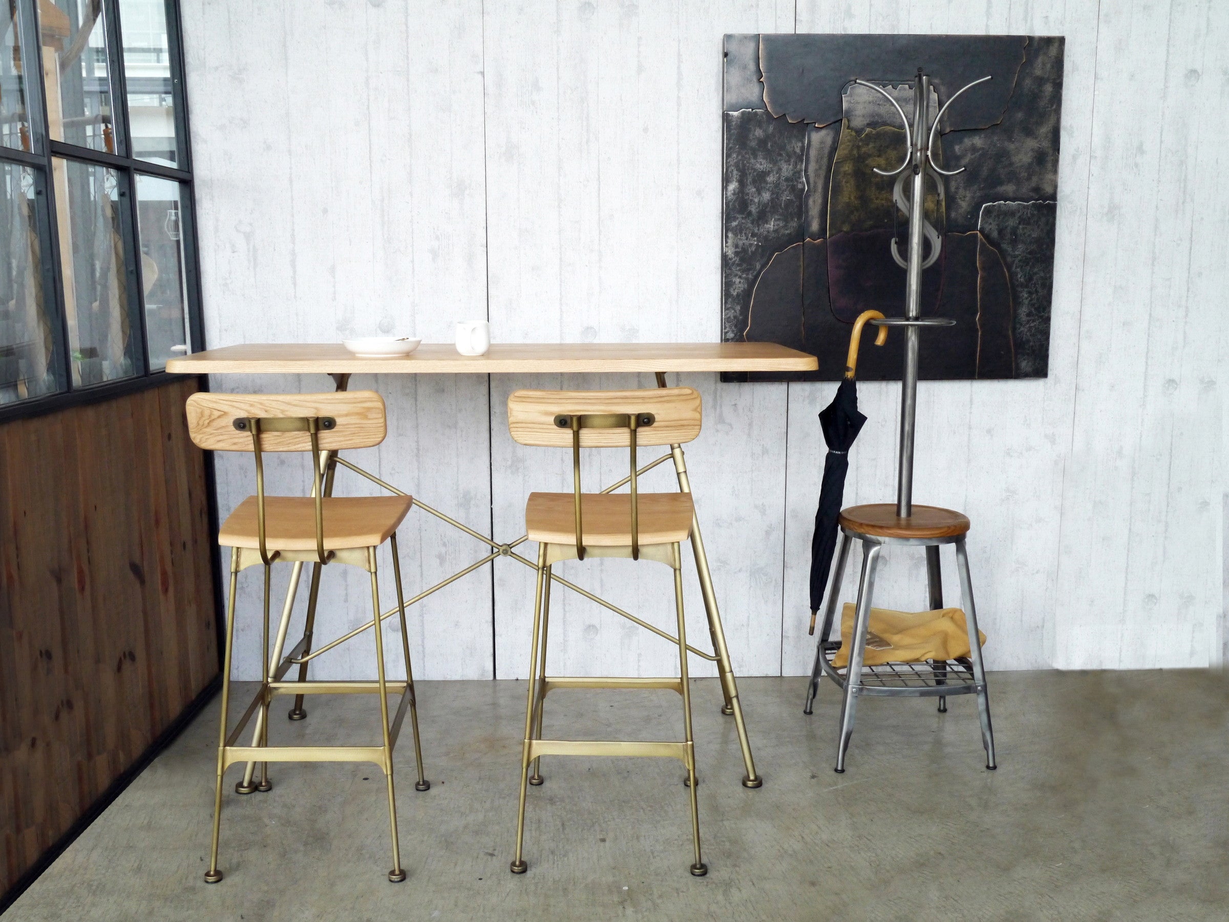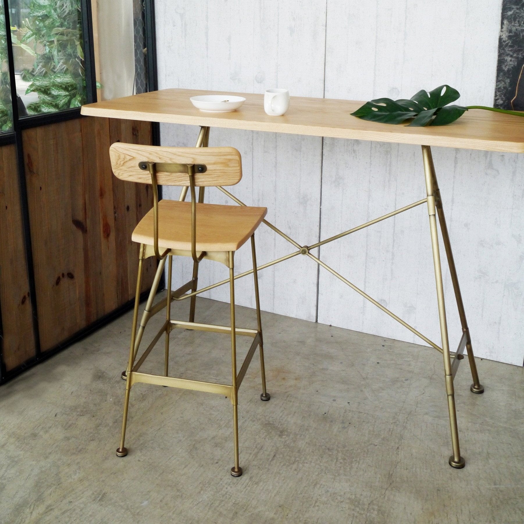 アッシュ無垢材とアンティーク風のゴールドで仕上げたスチール脚が調和した、安心感と高級感のあるハイチェアです。
