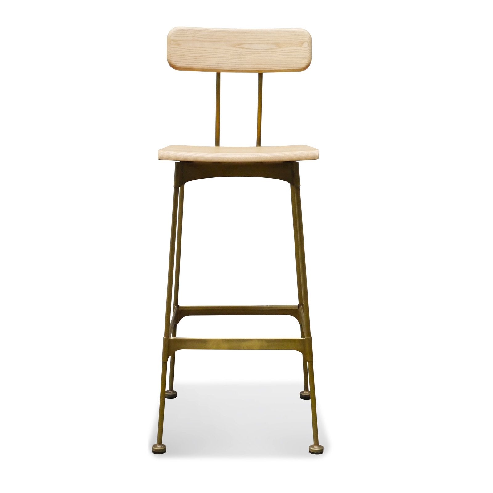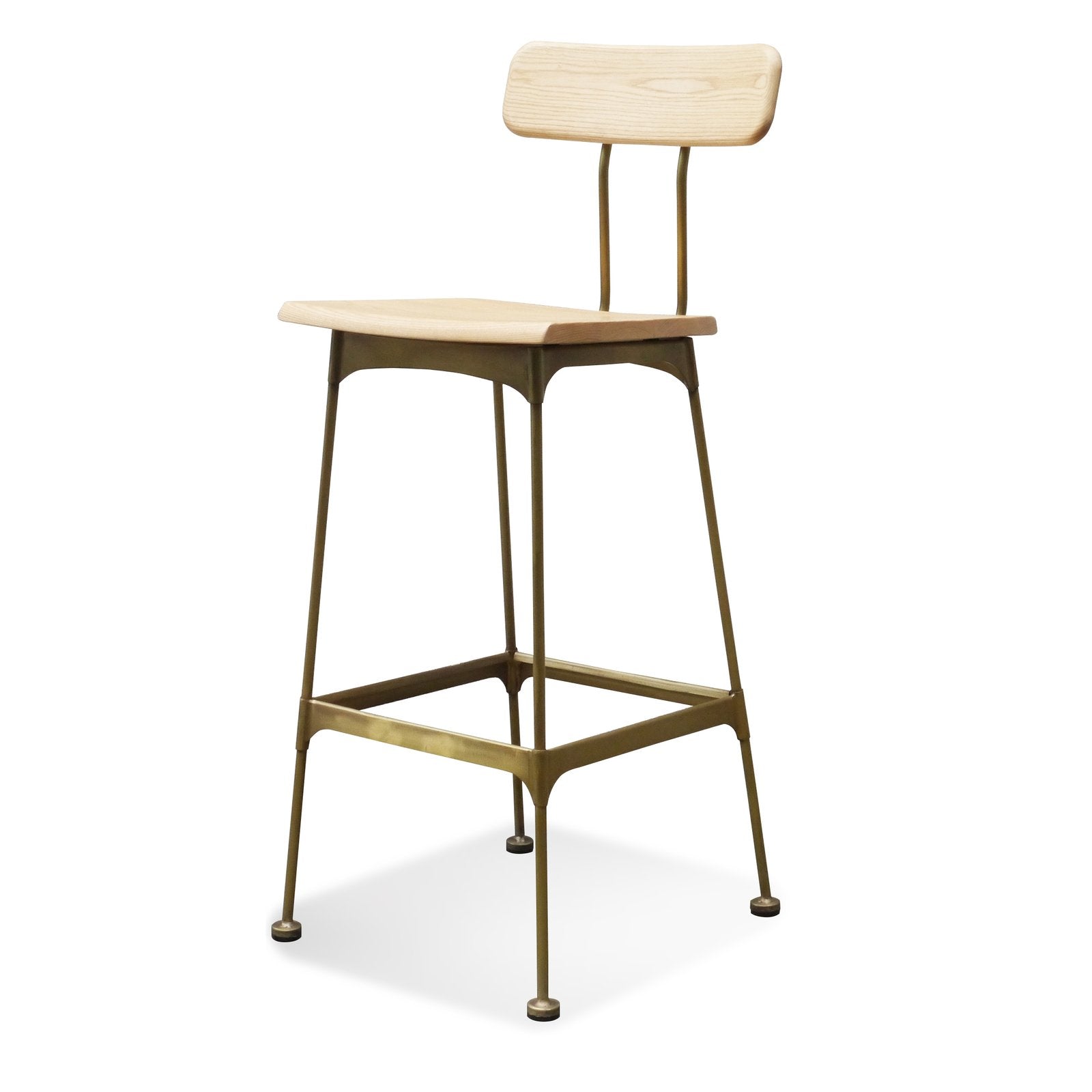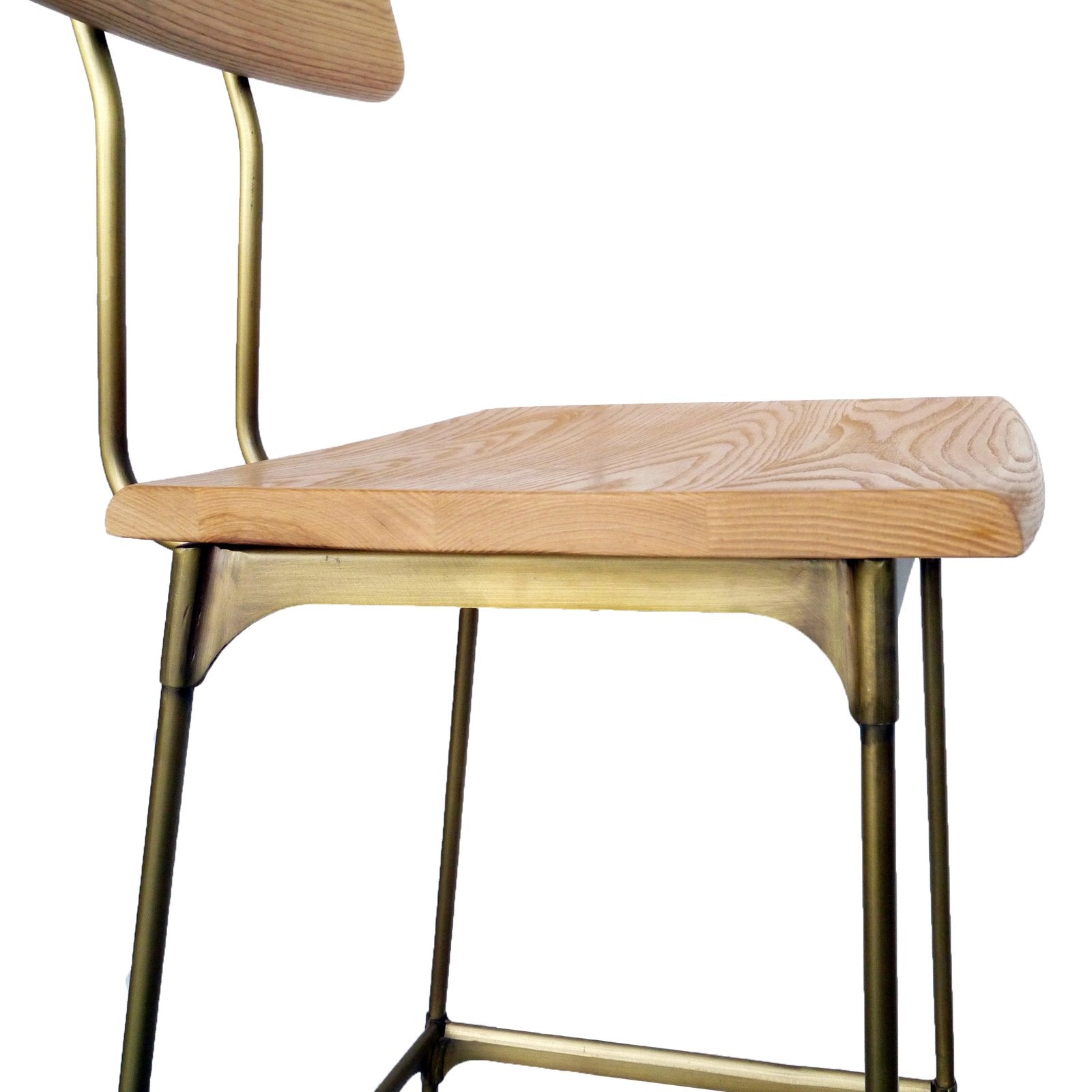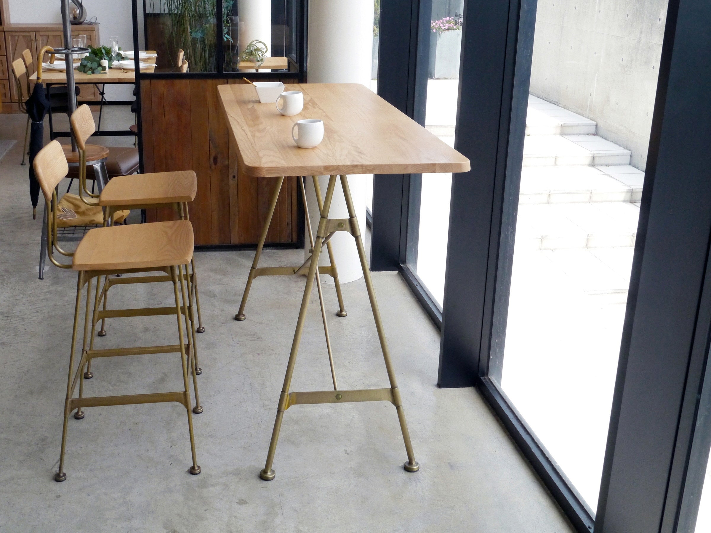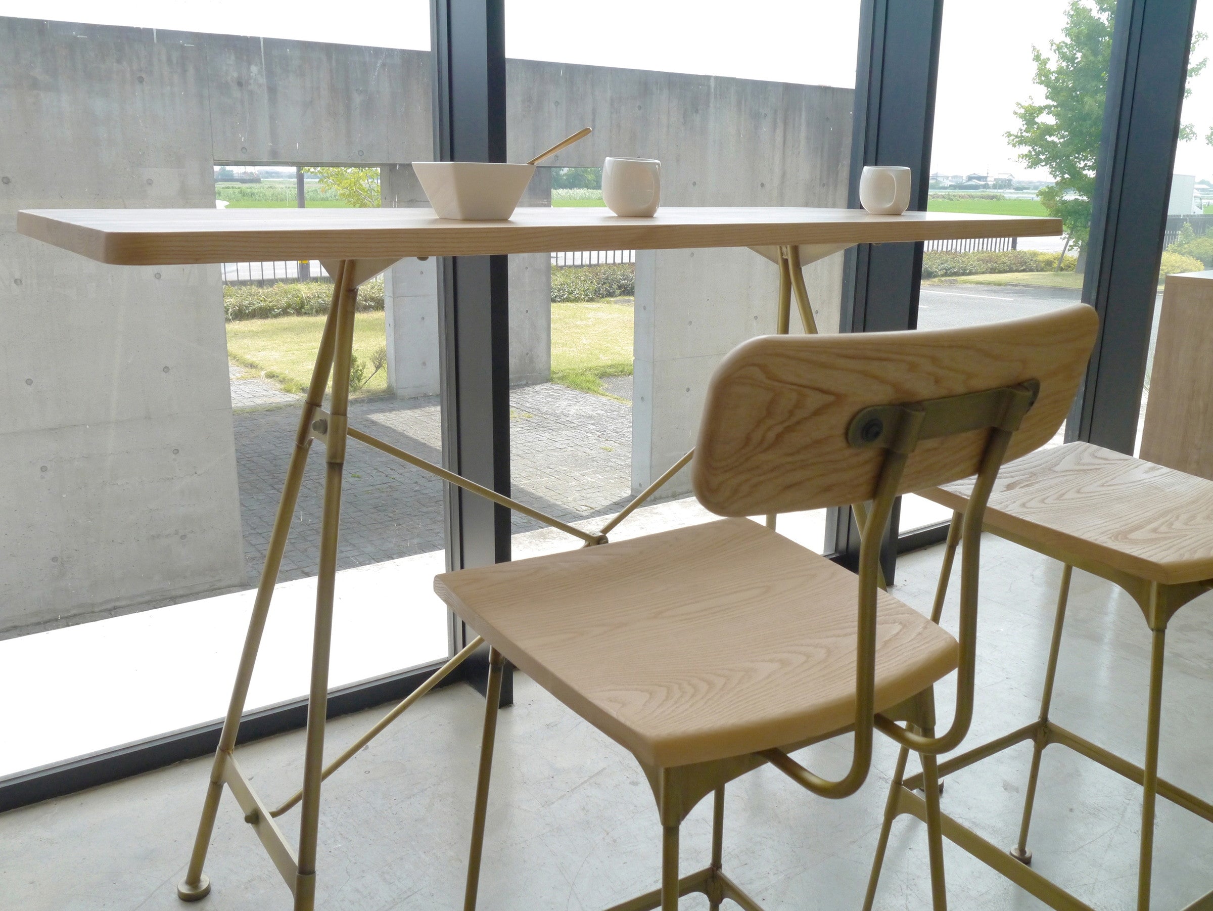 アッシュ無垢材とアンティーク風のゴールドで仕上げたスチール脚が調和した、安心感と高級感のあるハイチェアです。