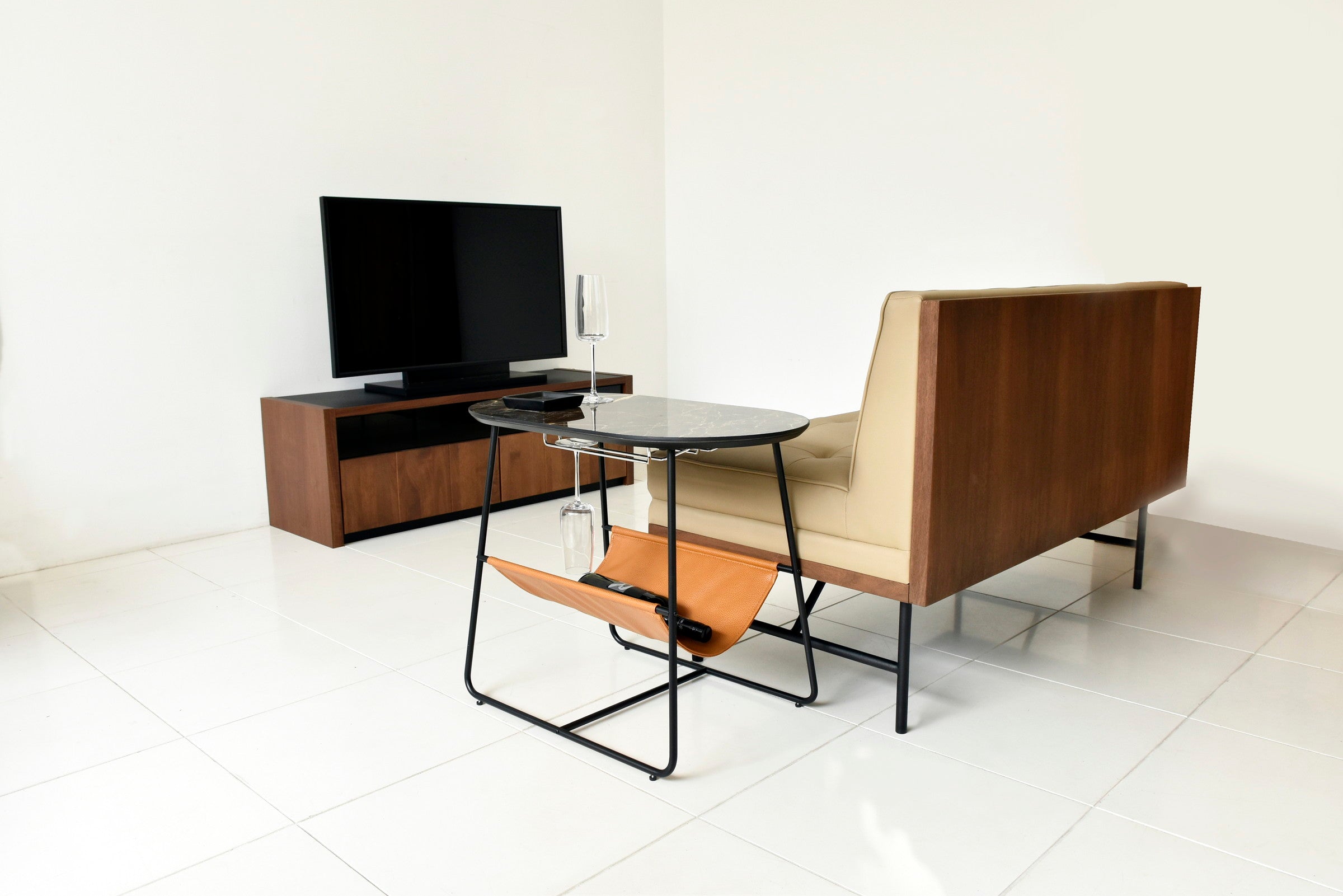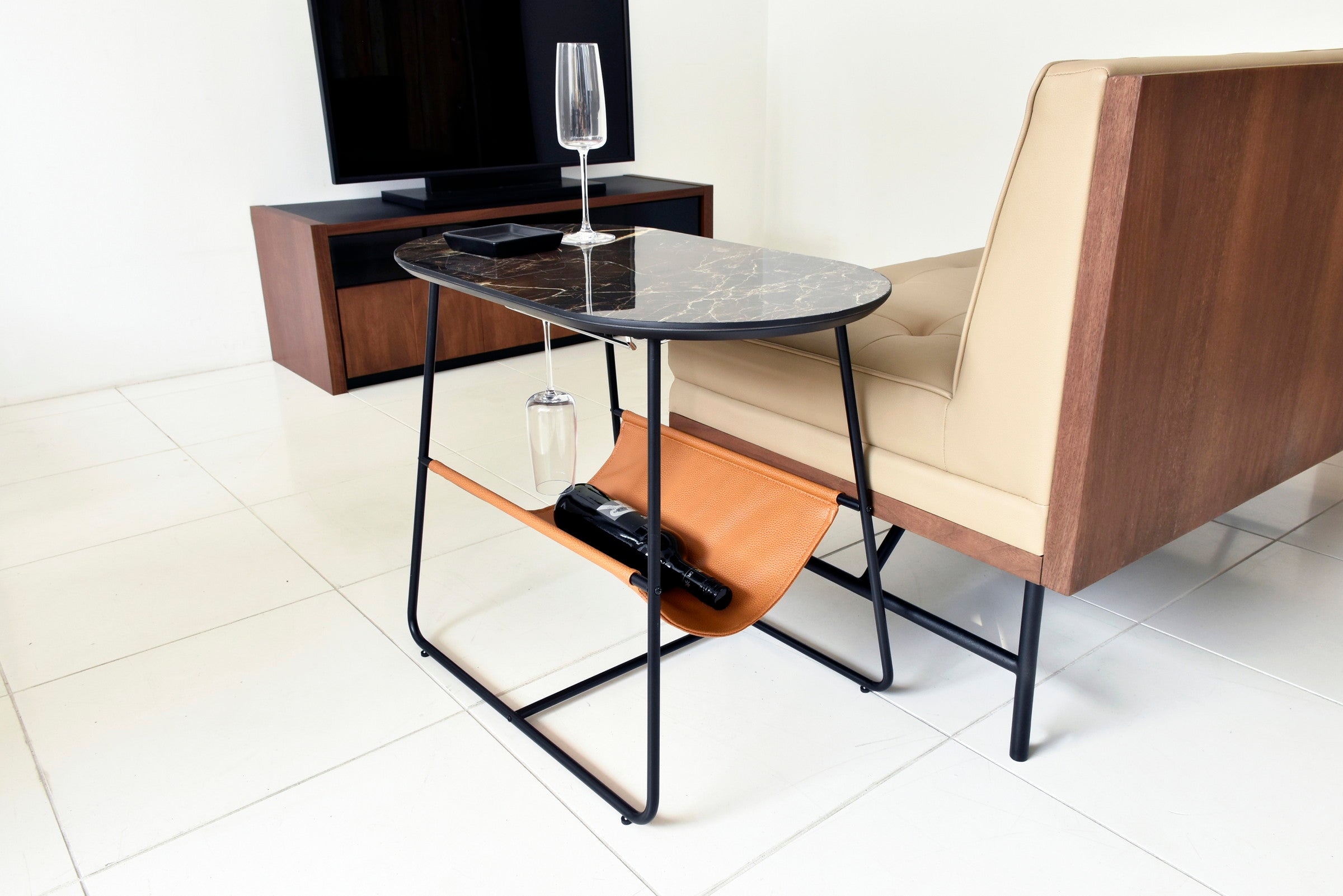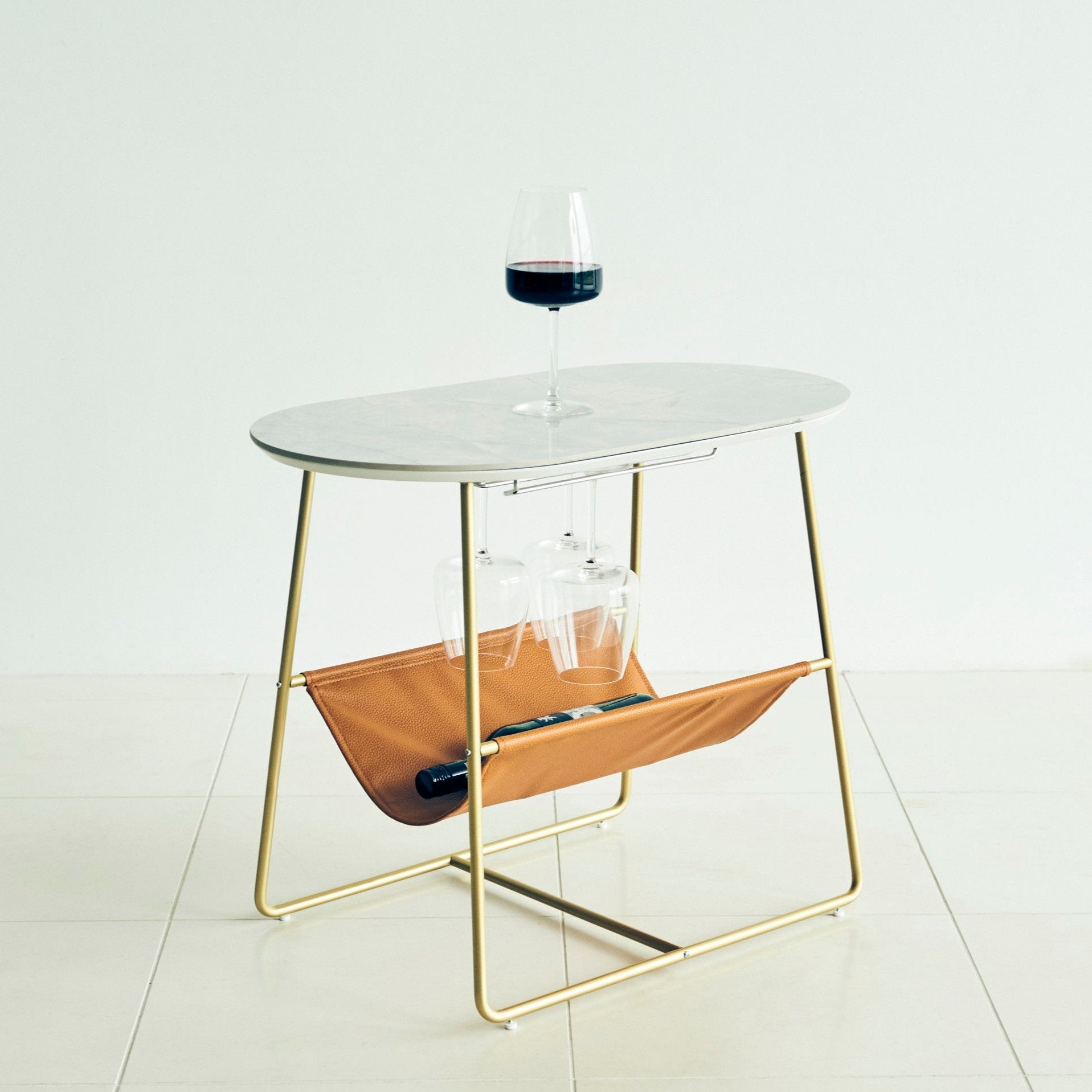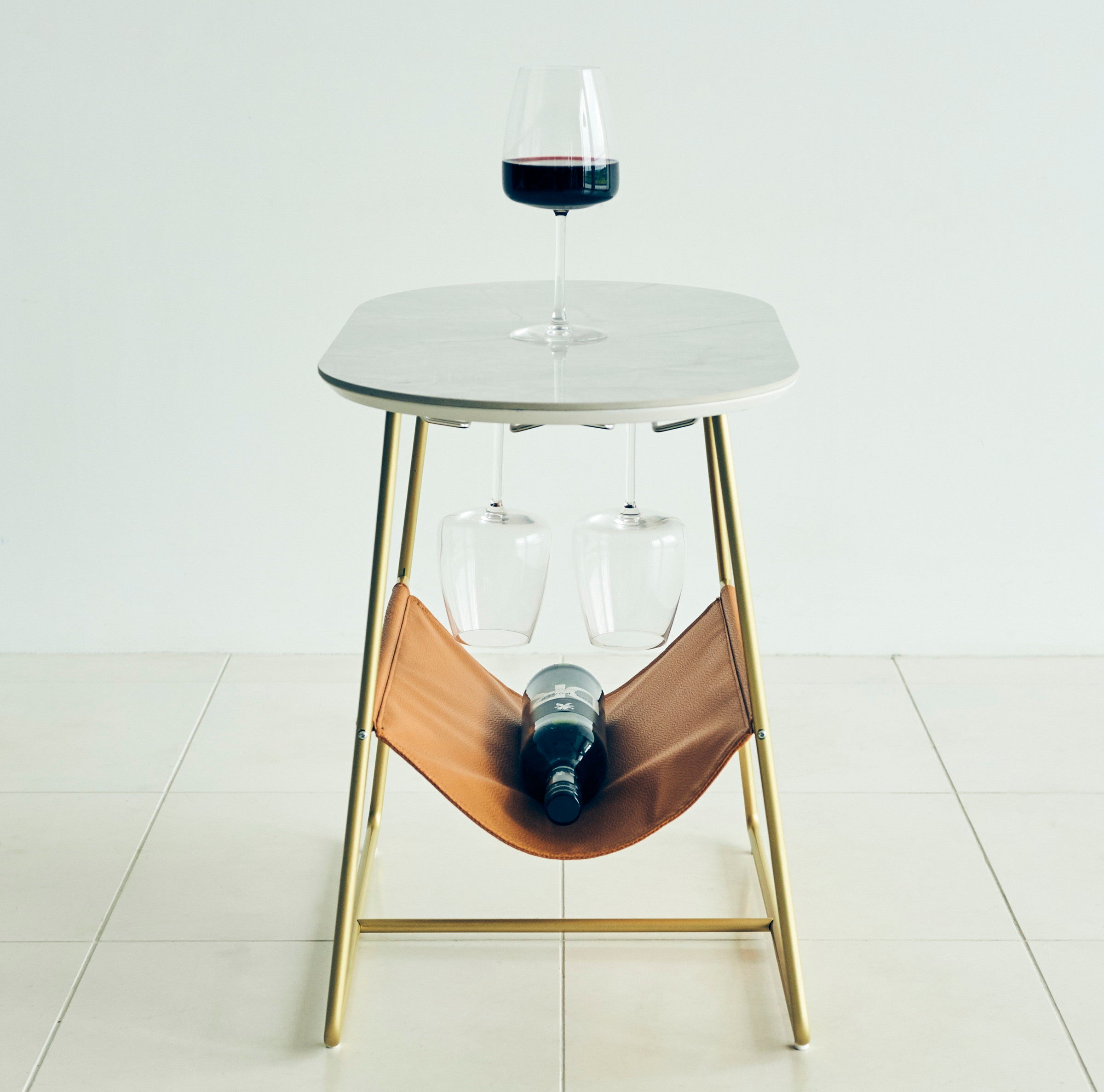 ワイングラスホルダーやボトルラックの機能性とデザイン性を兼ね備えたサイドテーブルです。セラミックの天板がおしゃれな空間を演出します。
