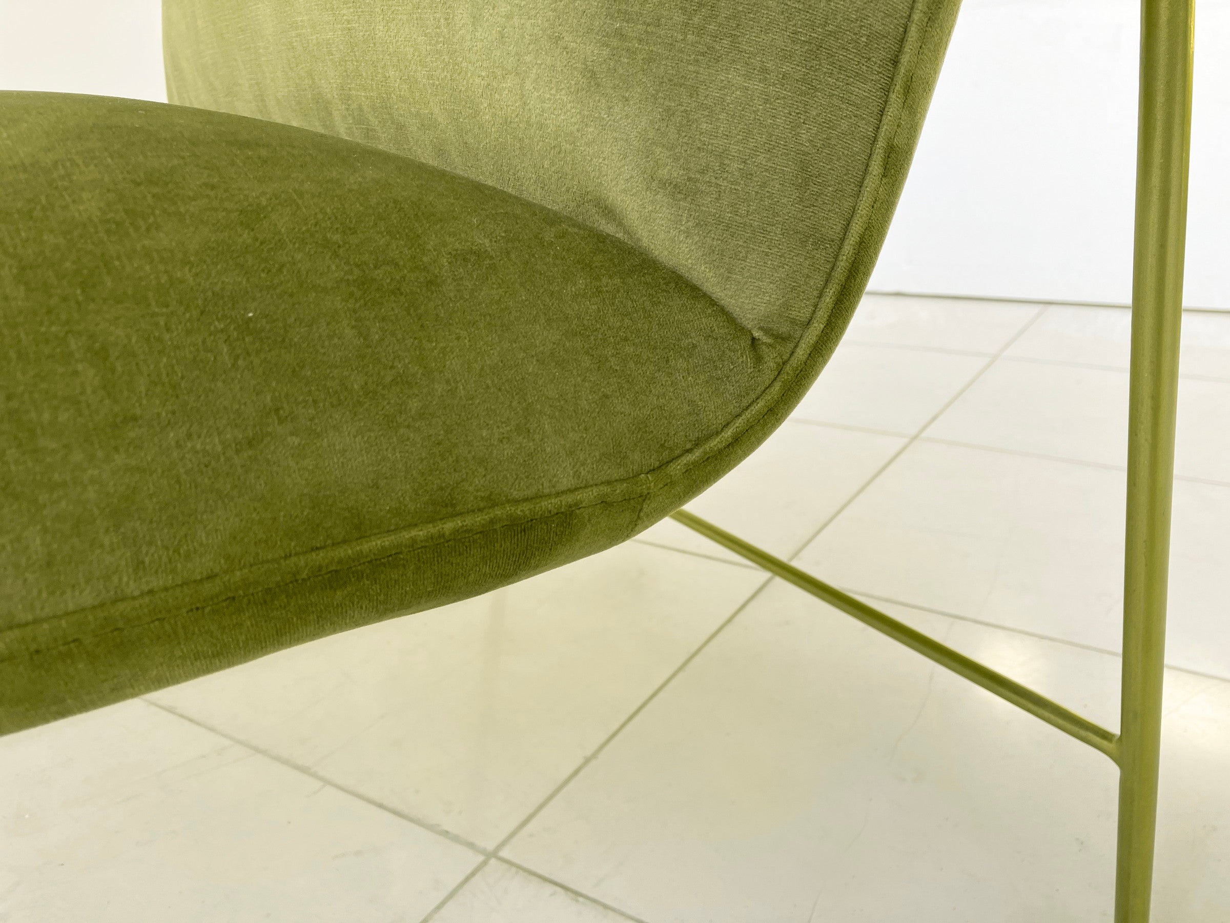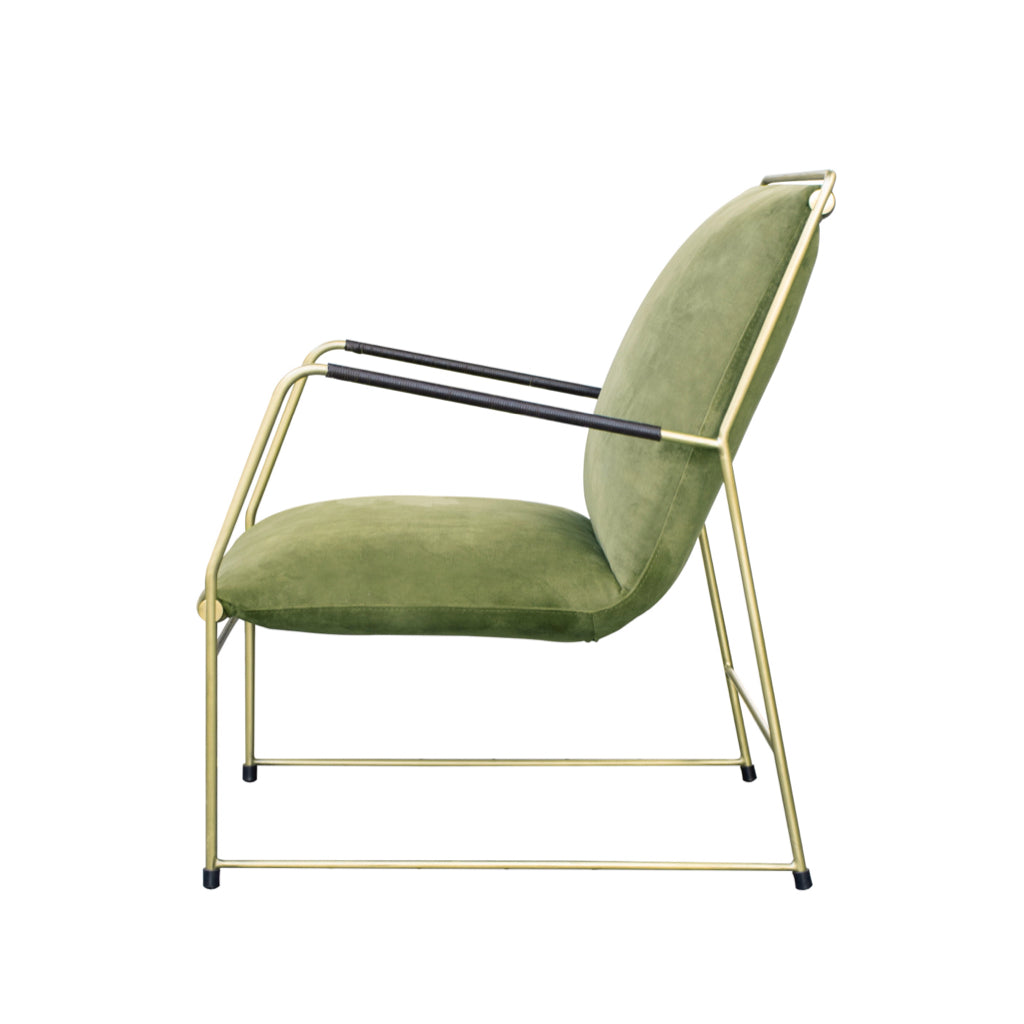 丸みのあるグリーンのシートと軽快なフレームのコントラストが気品を漂わせるパーソナルチェアです。ファブリックの優しい質感と深い座り心地でゆったりと安らげる時間を与えてくれます。