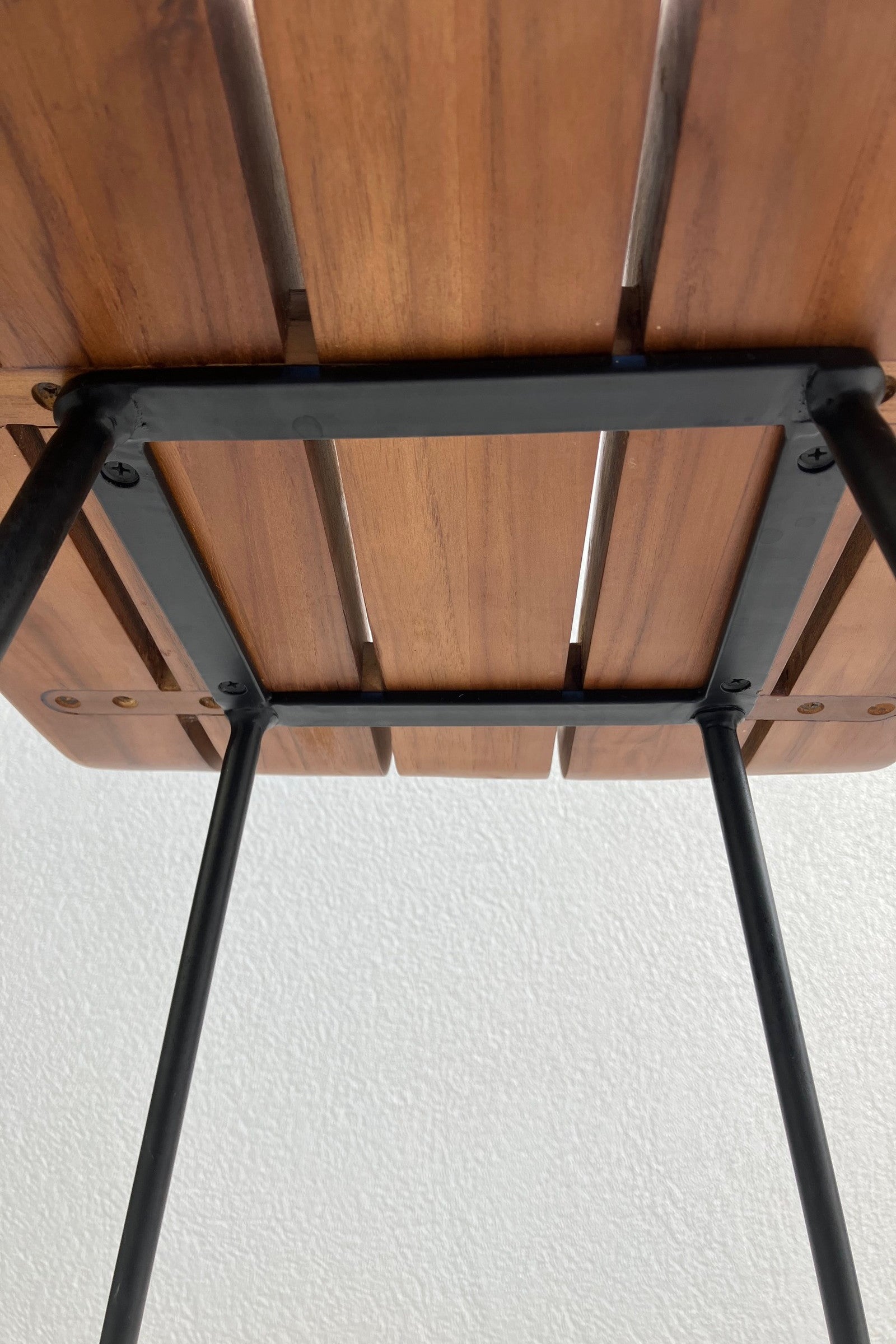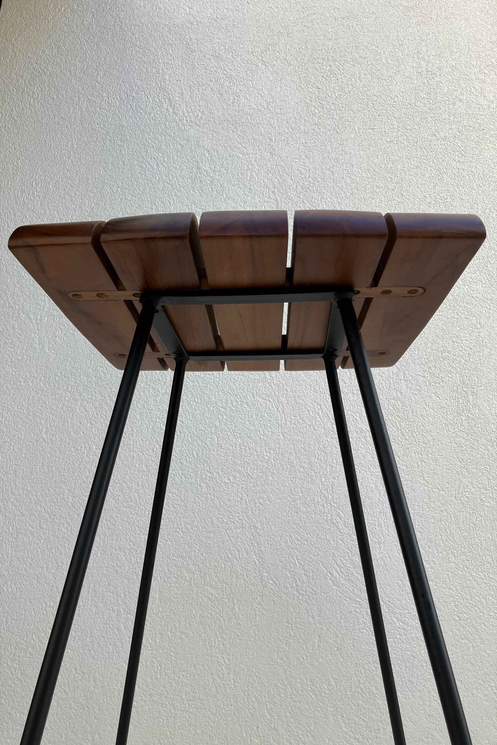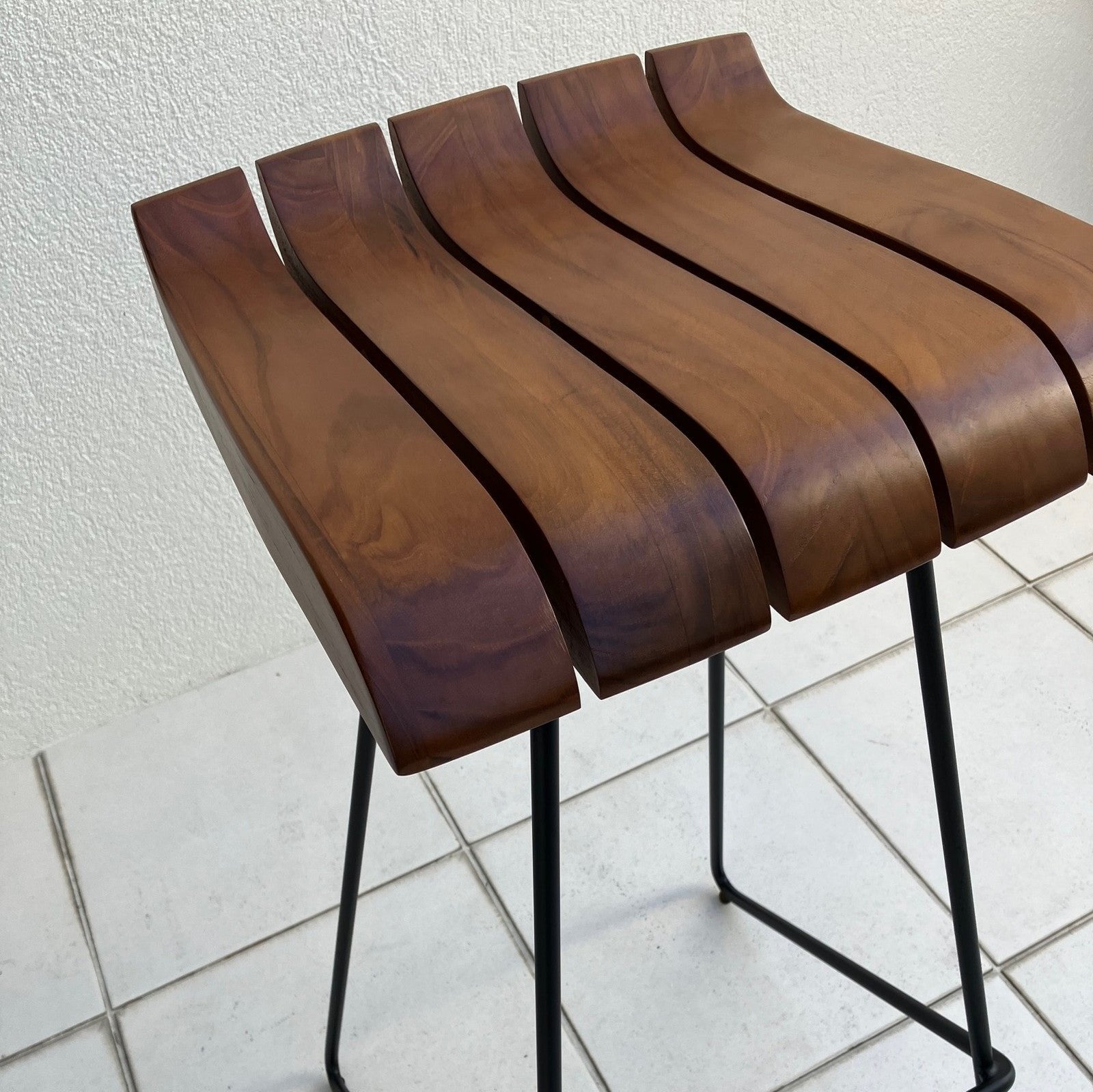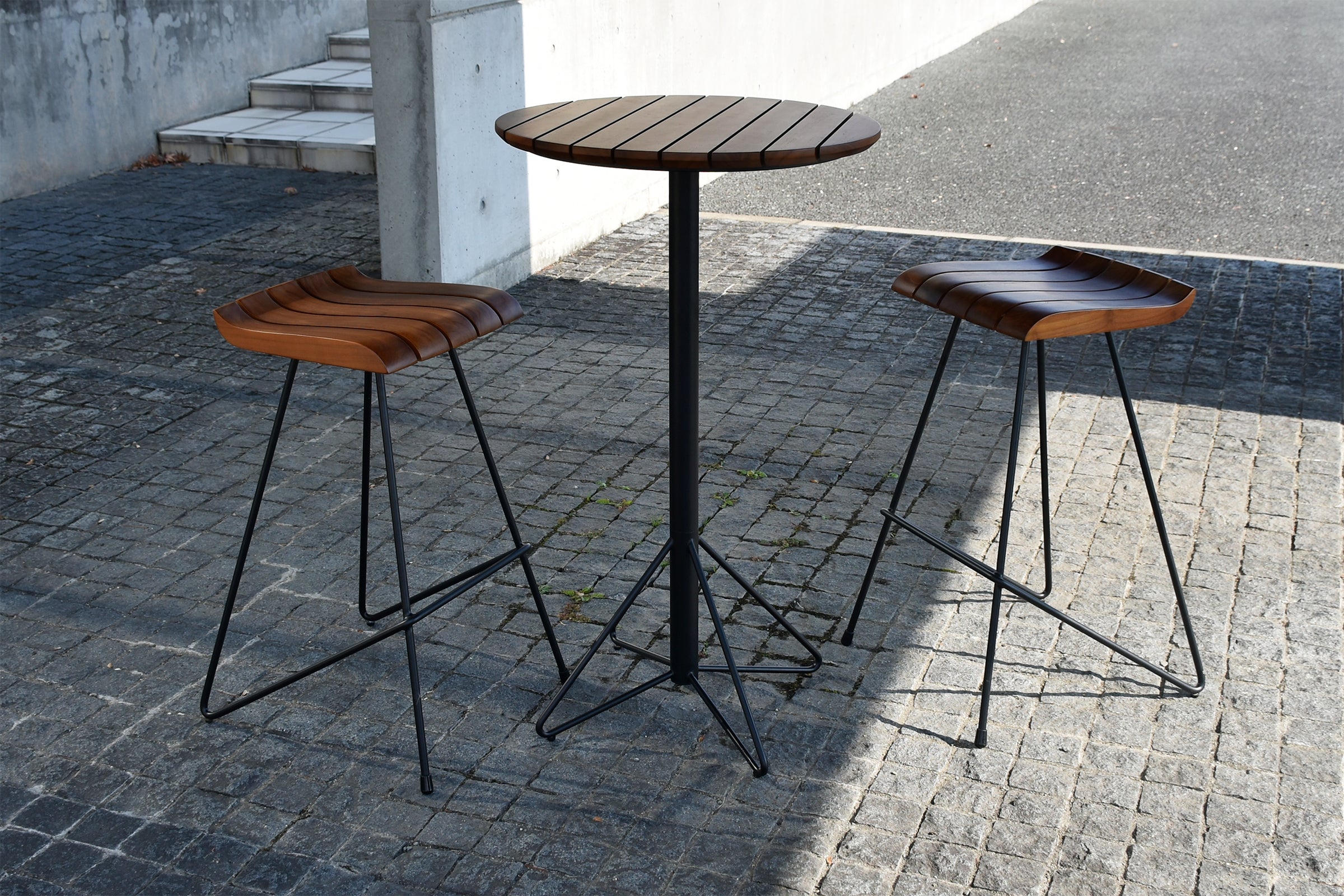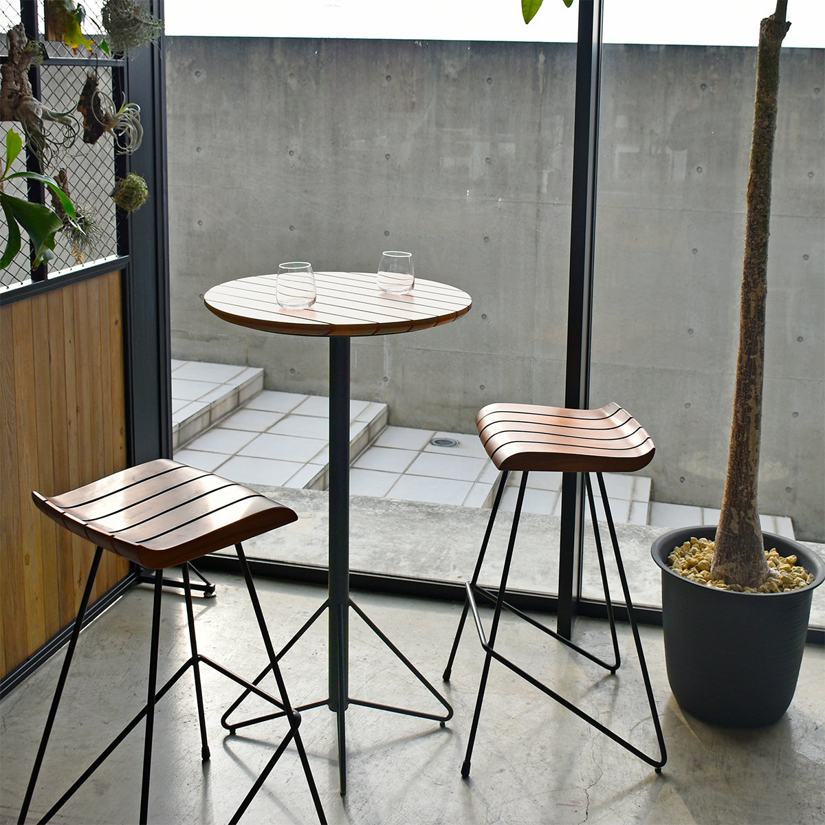 耐久性が非常に高く、屋外での使用にも適しているチーク材を使用したハイチェアです。ブラジル産のチーク無垢材を贅沢に使用し、オイル塗装仕上げになっています。