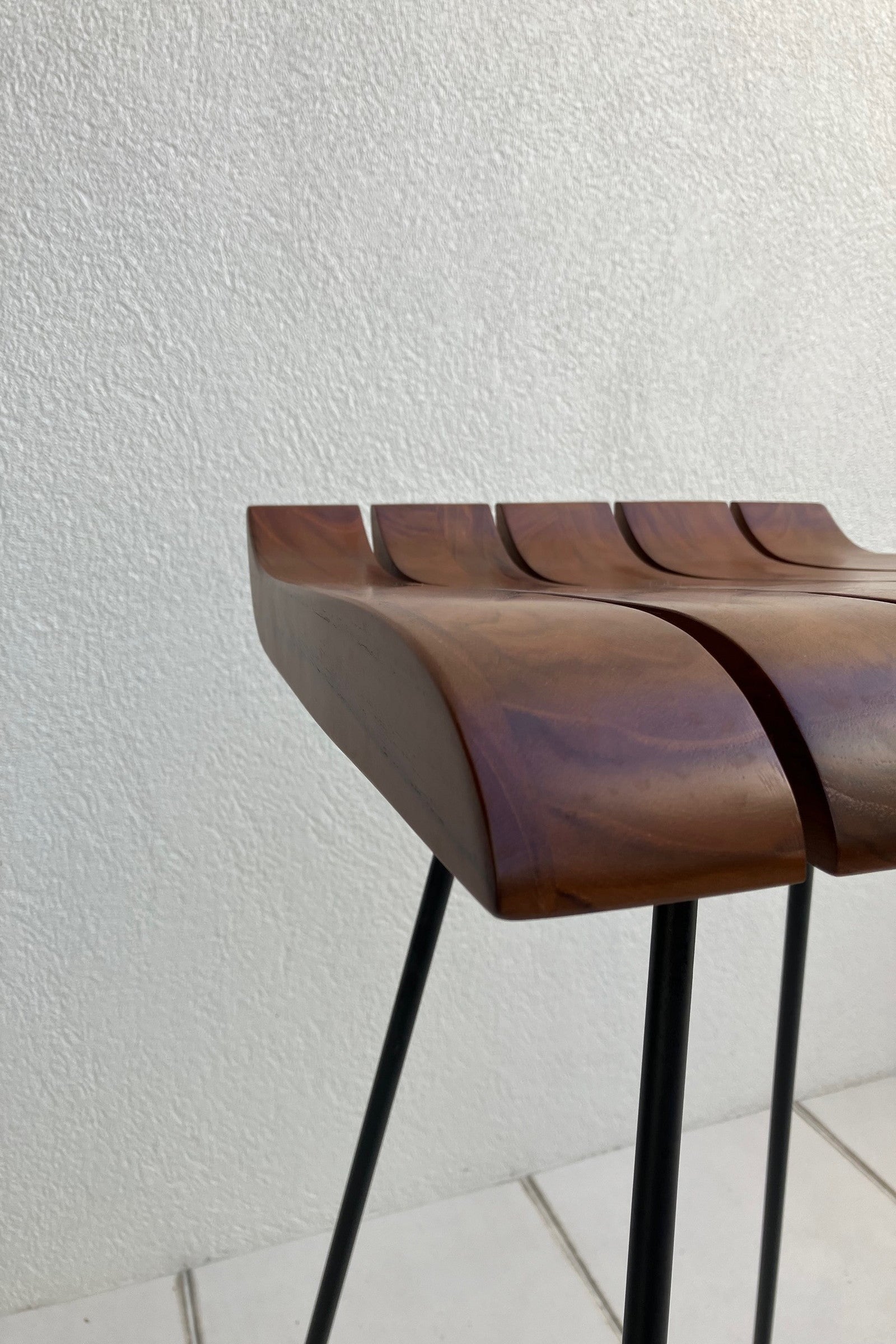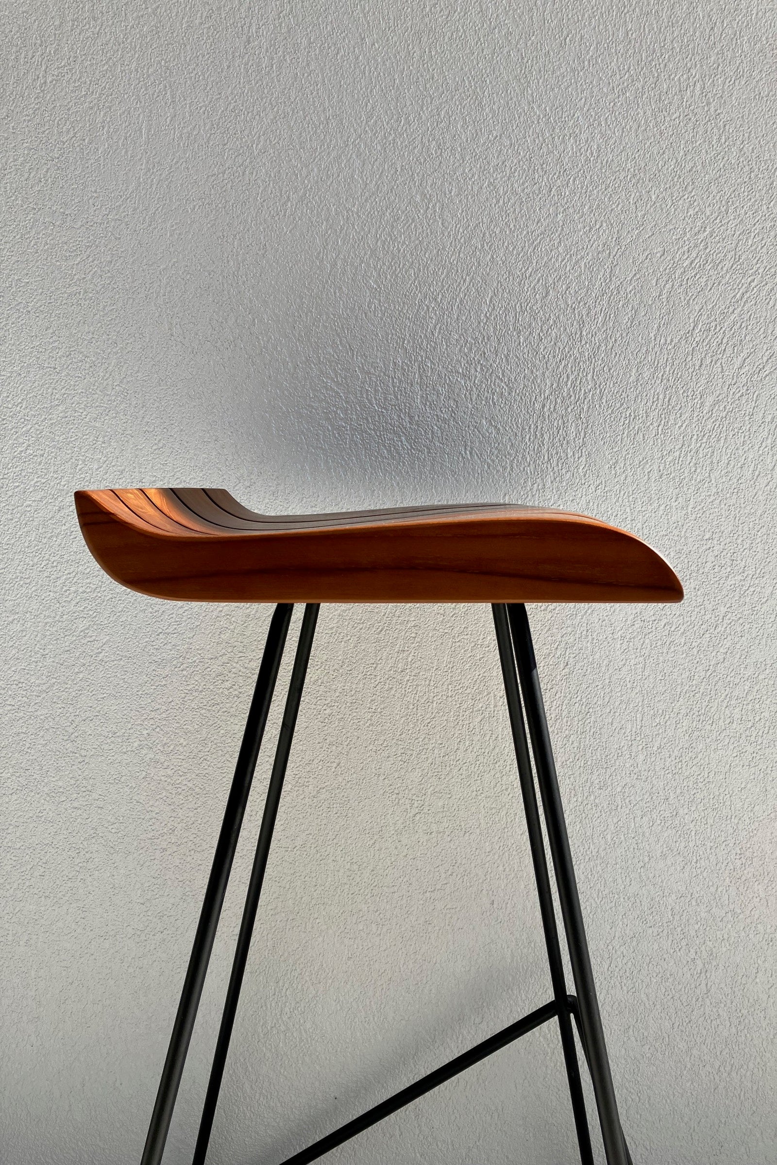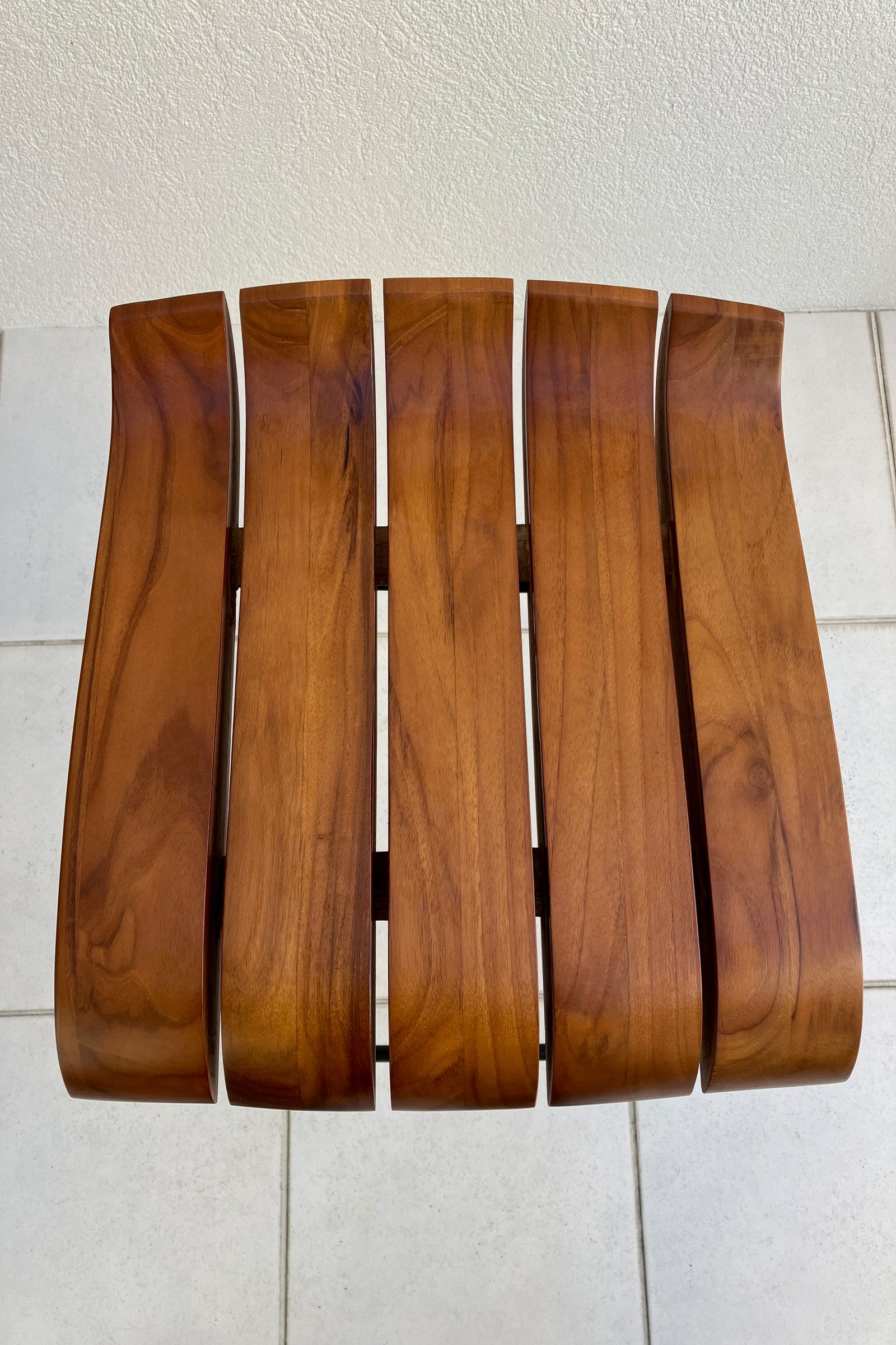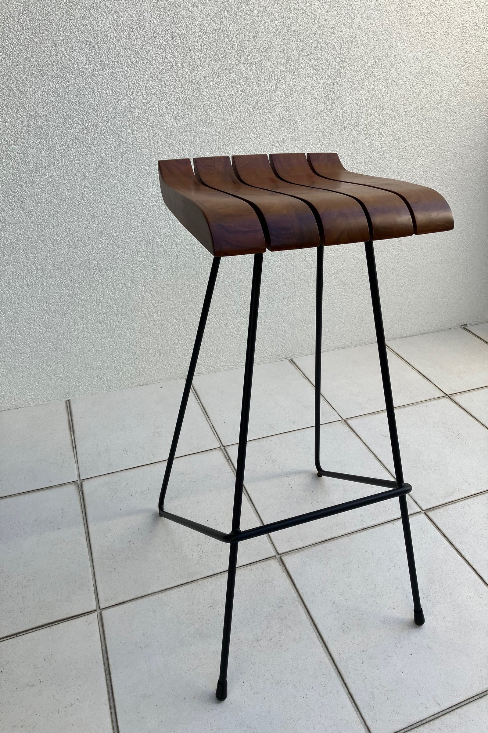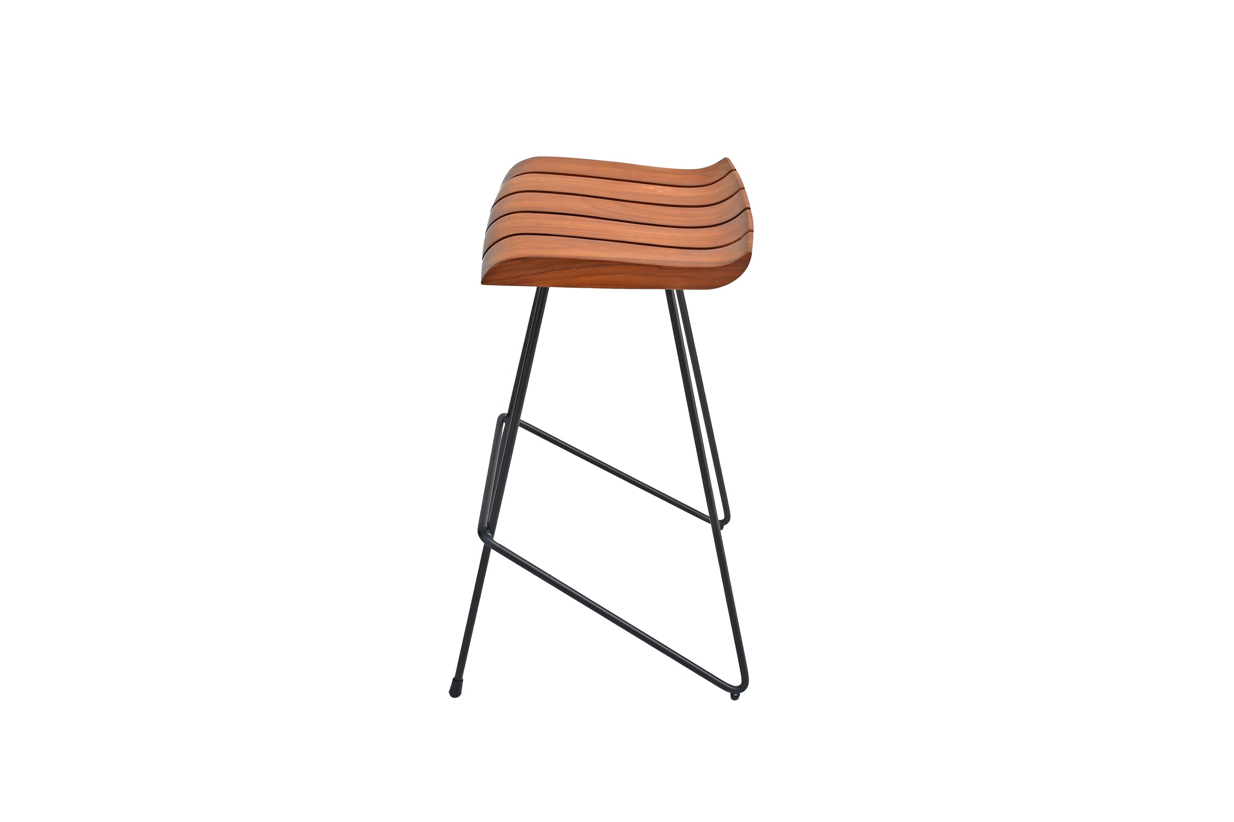 耐久性が非常に高く、屋外での使用にも適しているチーク材を使用したハイチェアです。ブラジル産のチーク無垢材を贅沢に使用し、オイル塗装仕上げになっています。