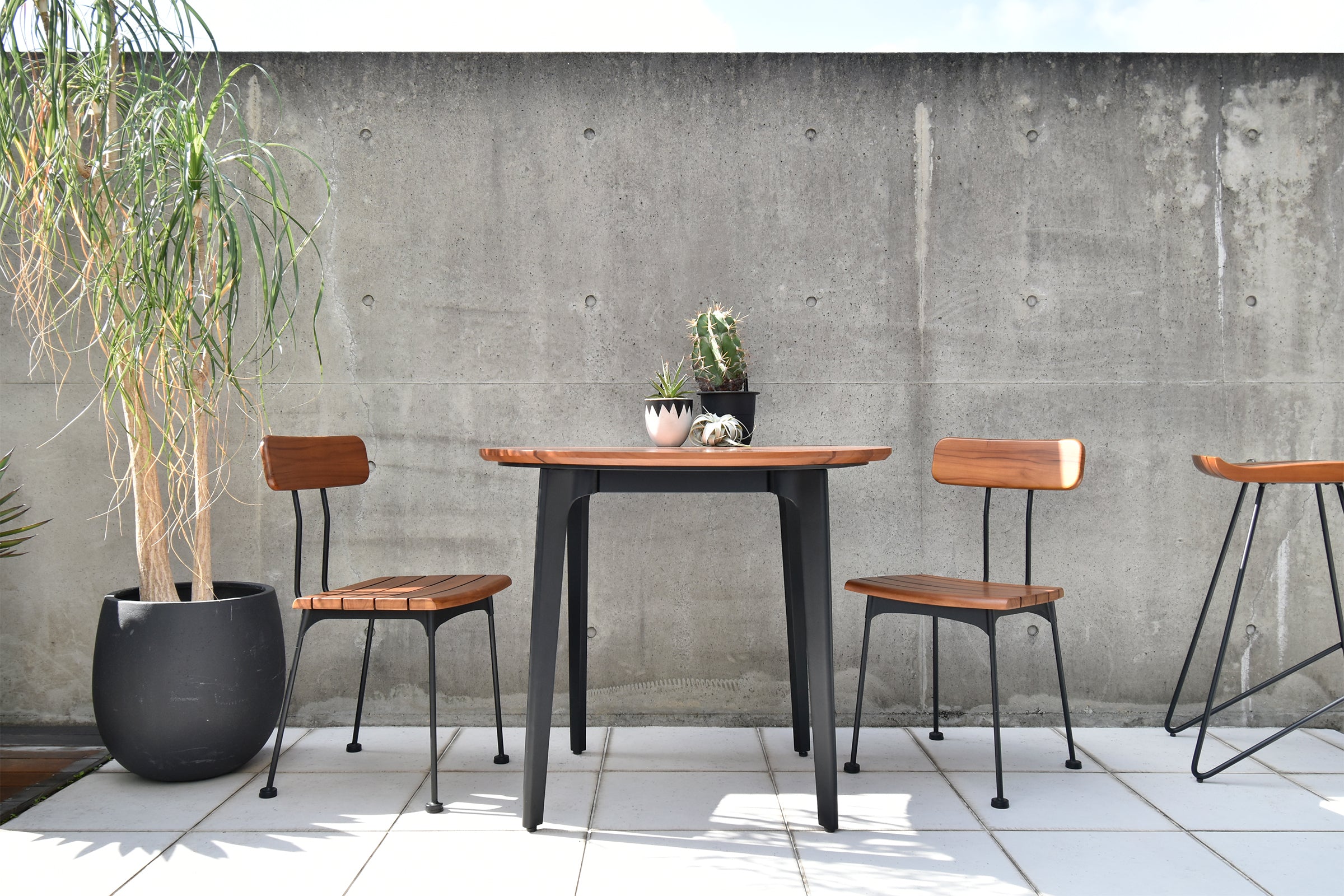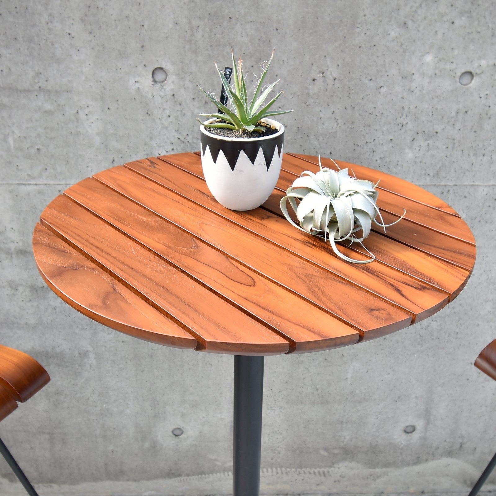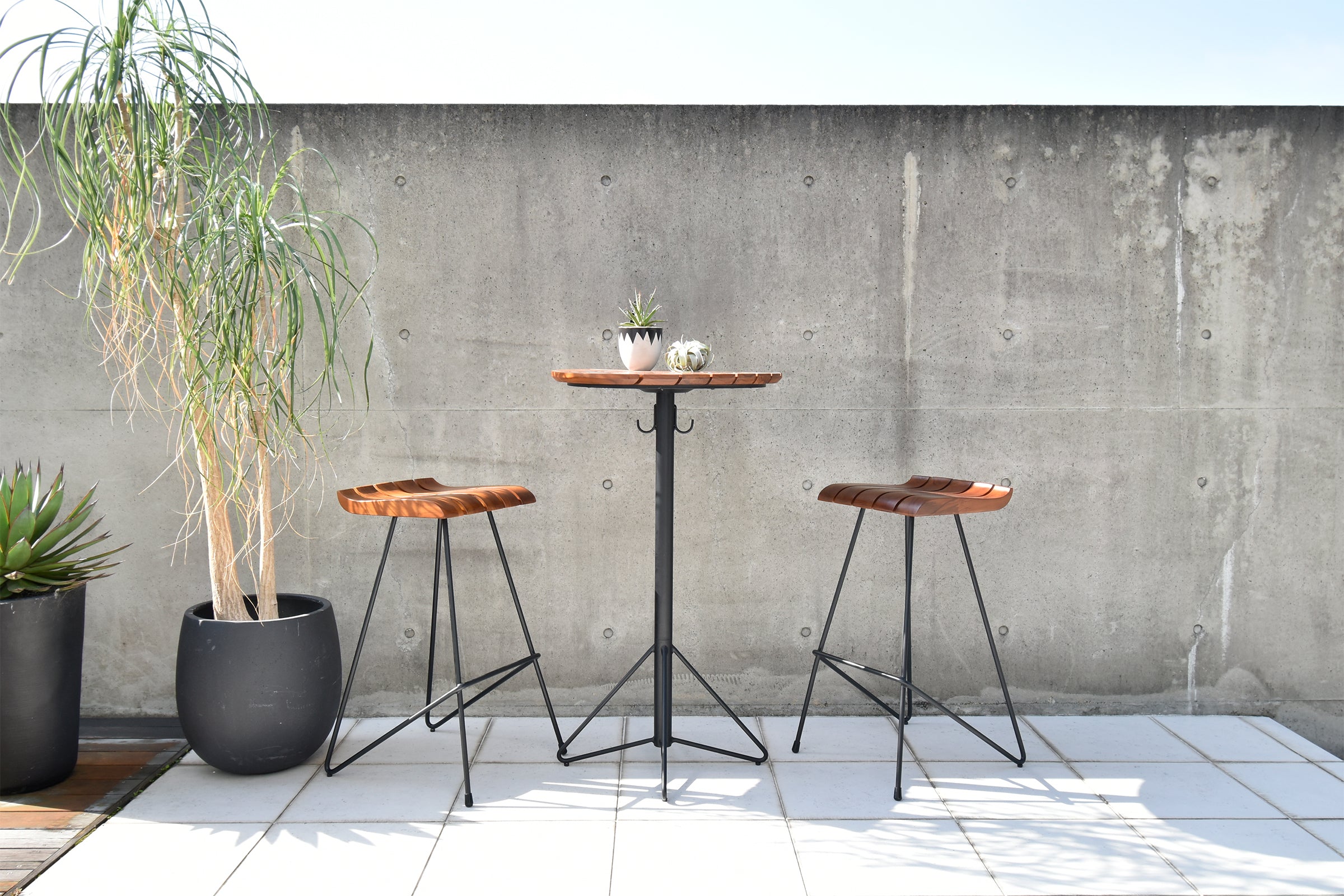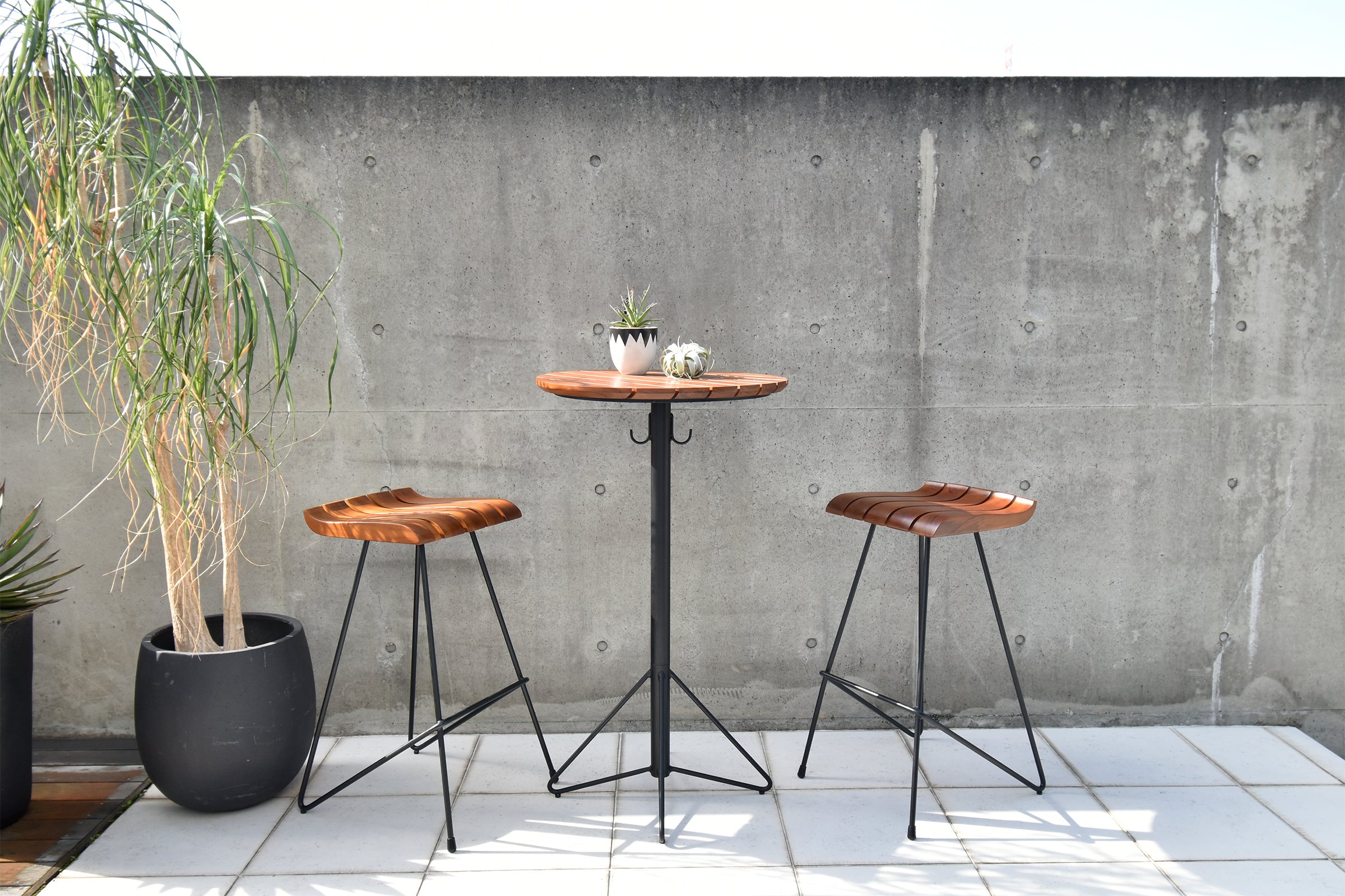 耐久性が非常に高く、屋外での使用にも適しているチーク材を使用したハイテーブルです。ブラジル産のチーク無垢材を贅沢に使用し、オイル塗装仕上げになっています。