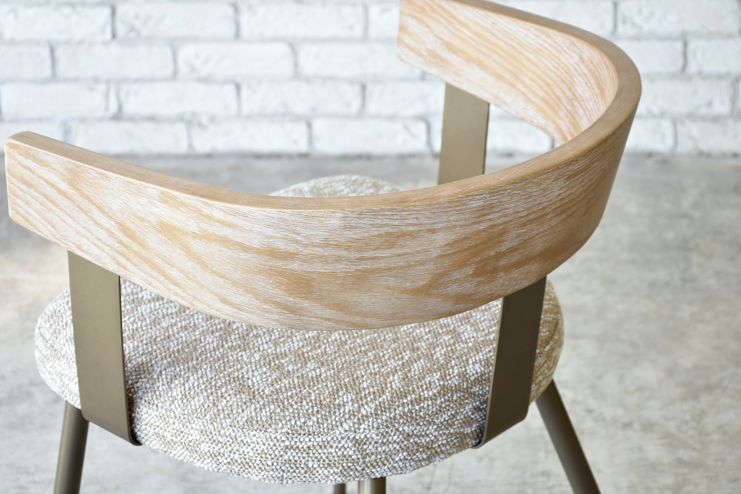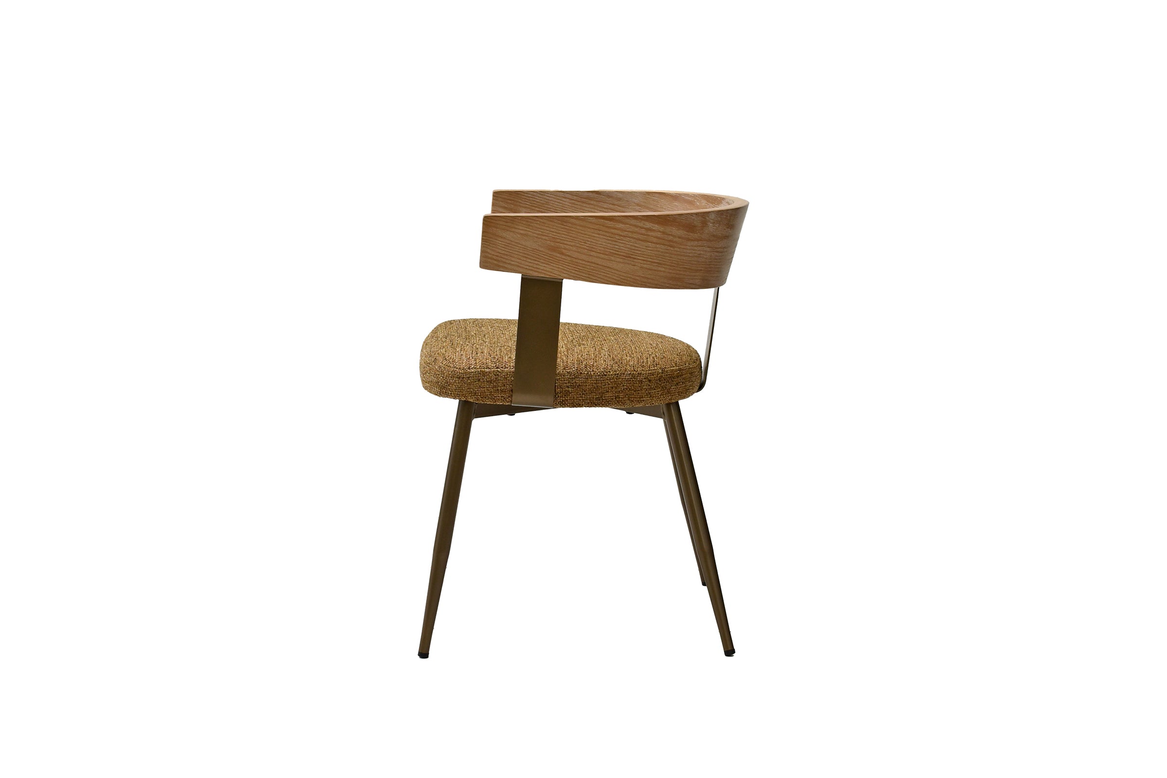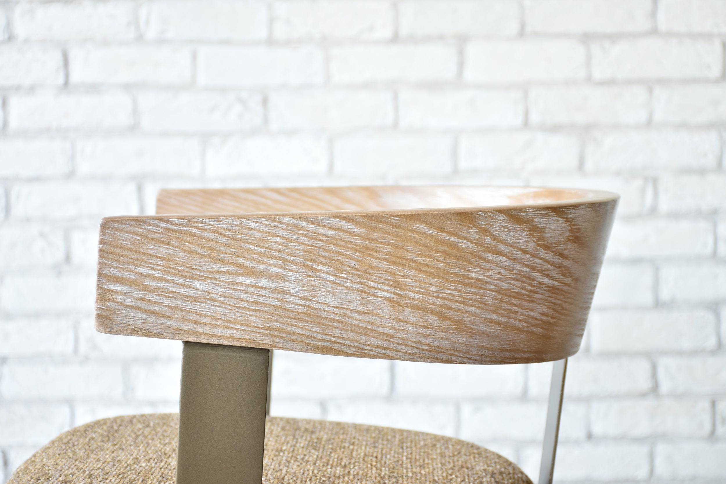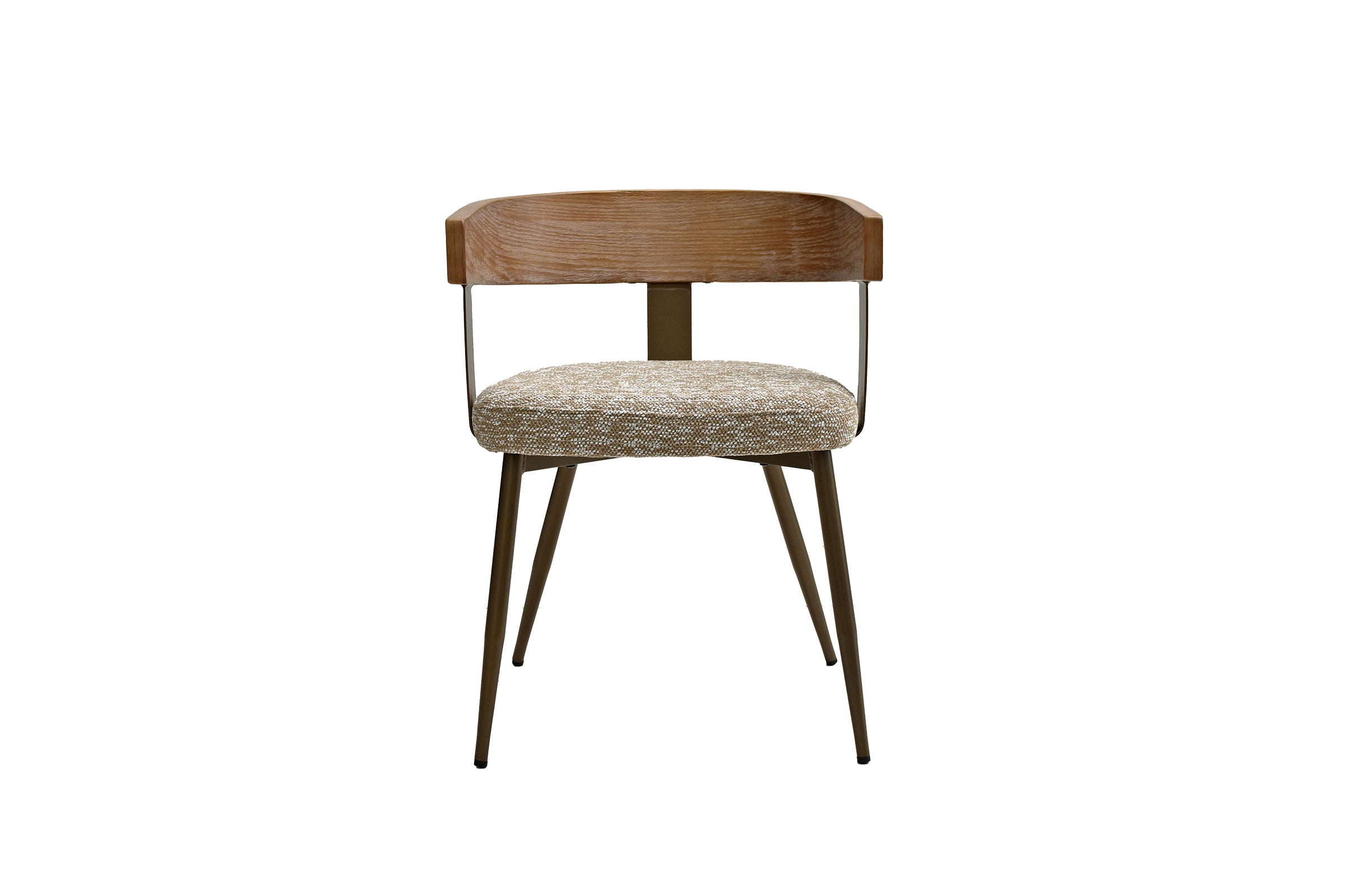 オーク材とスチール、ファブリック素材を組み合わせたダイニングチェアです。ブラウンとナチュラルの2色展開でお部屋の雰囲気に合わせて選ぶことができます。
