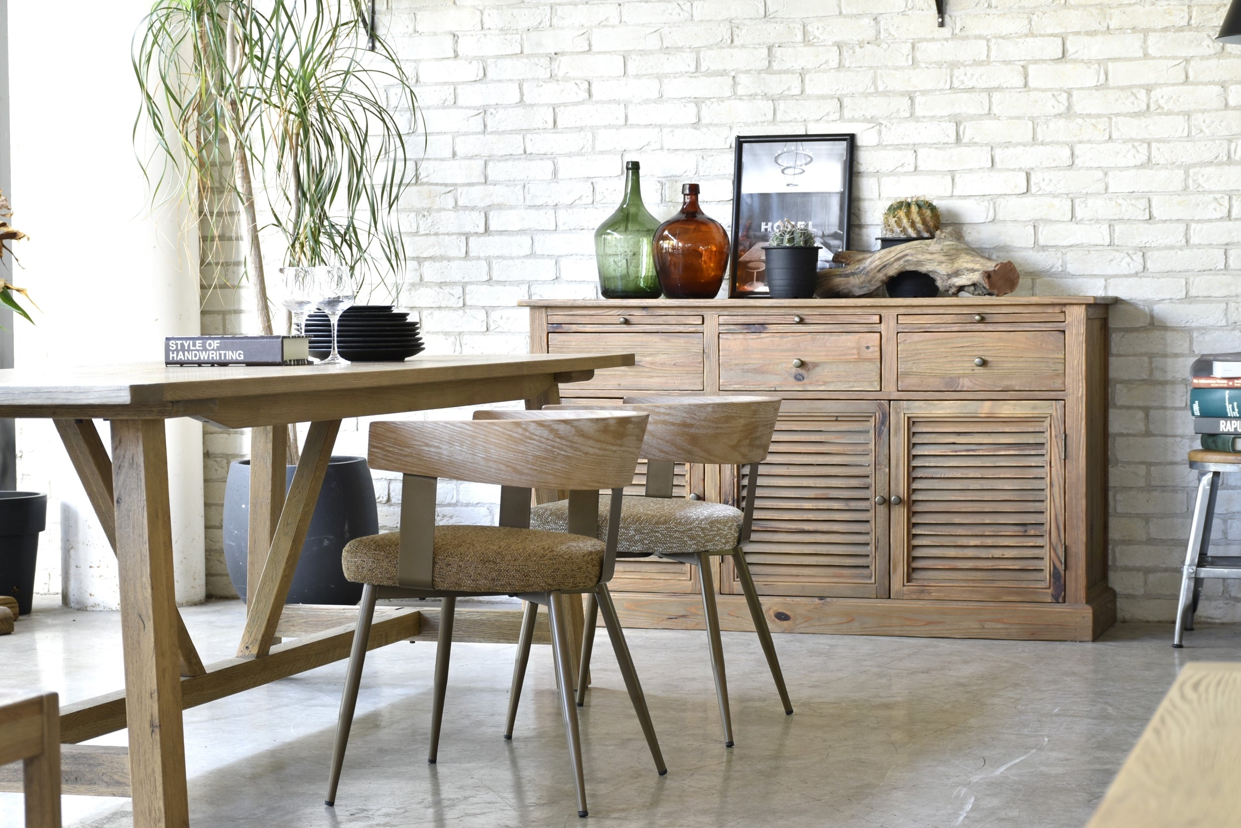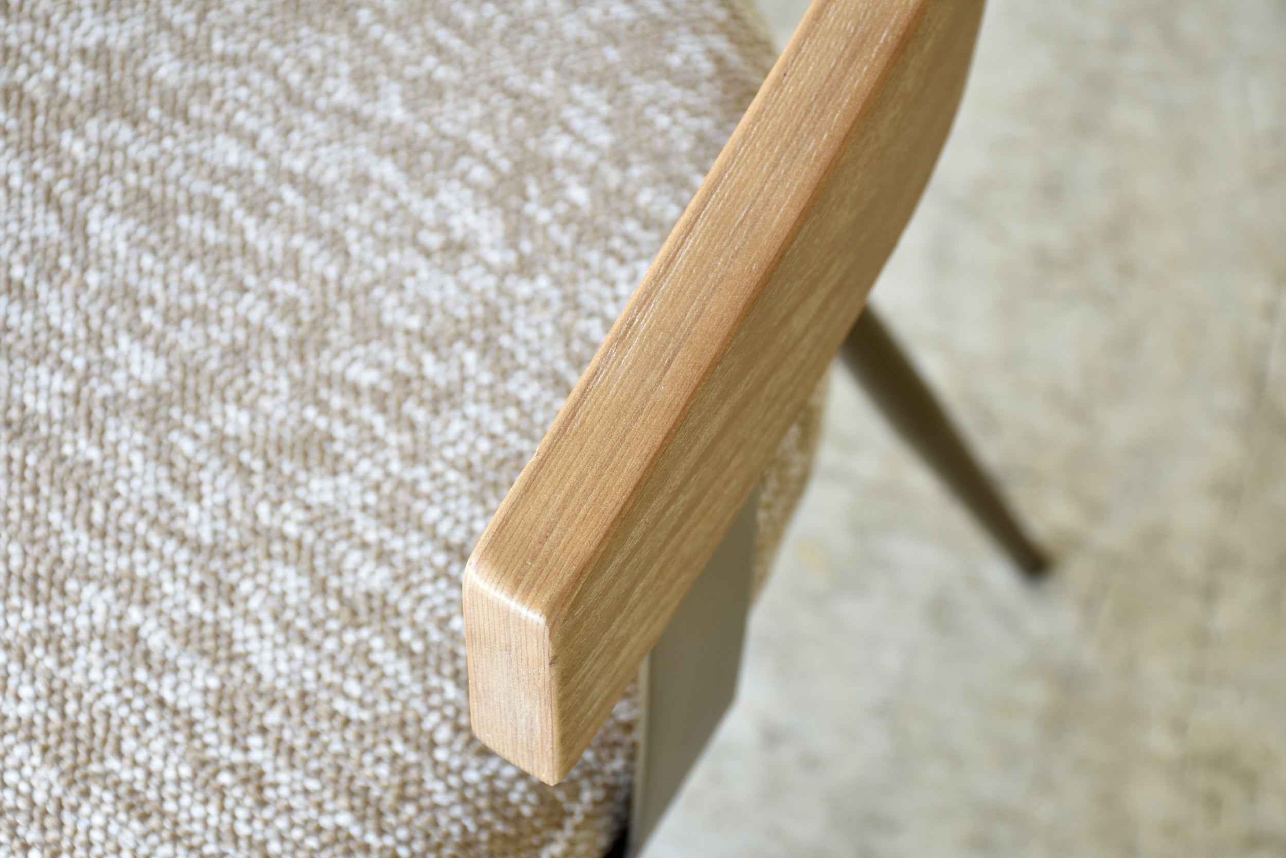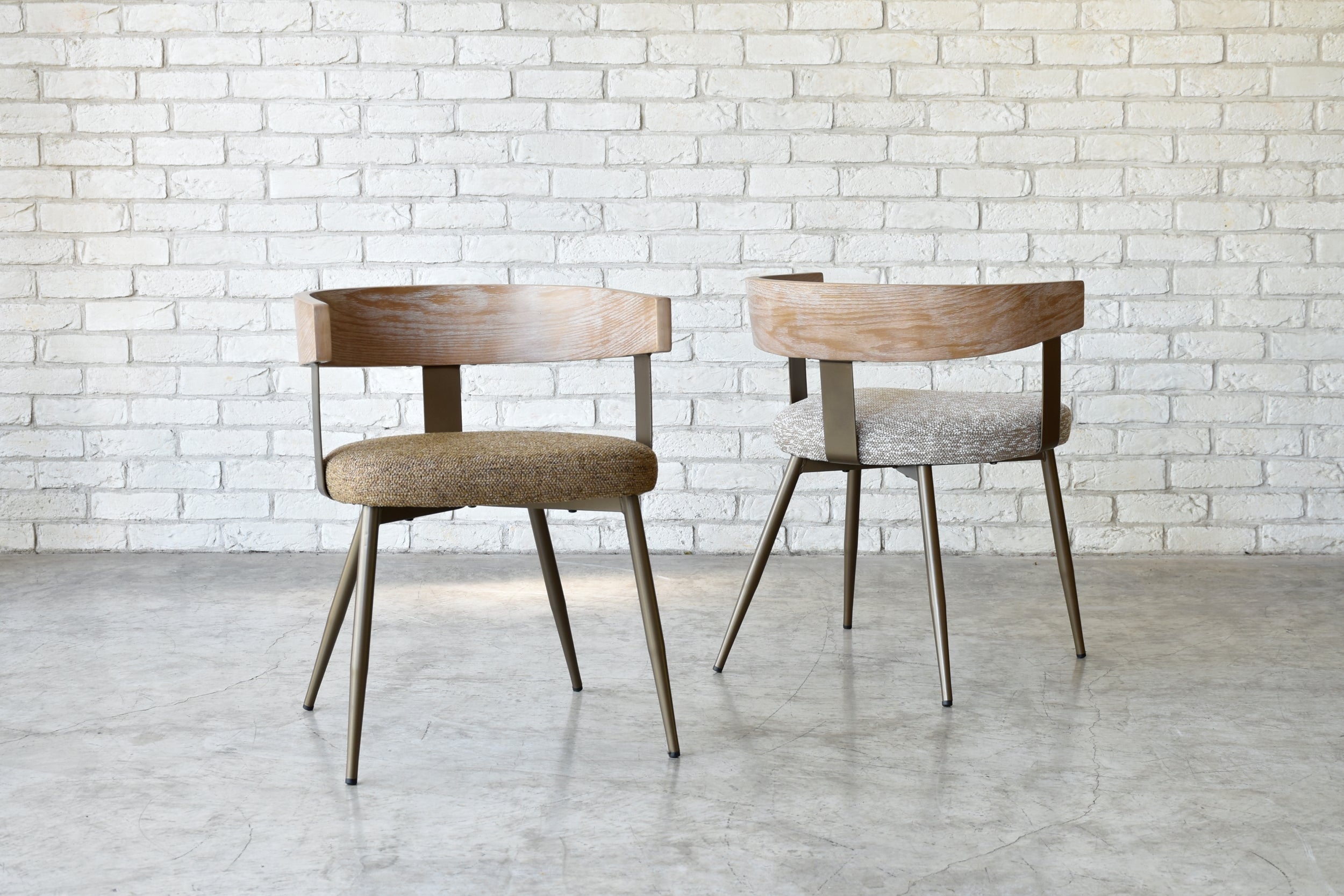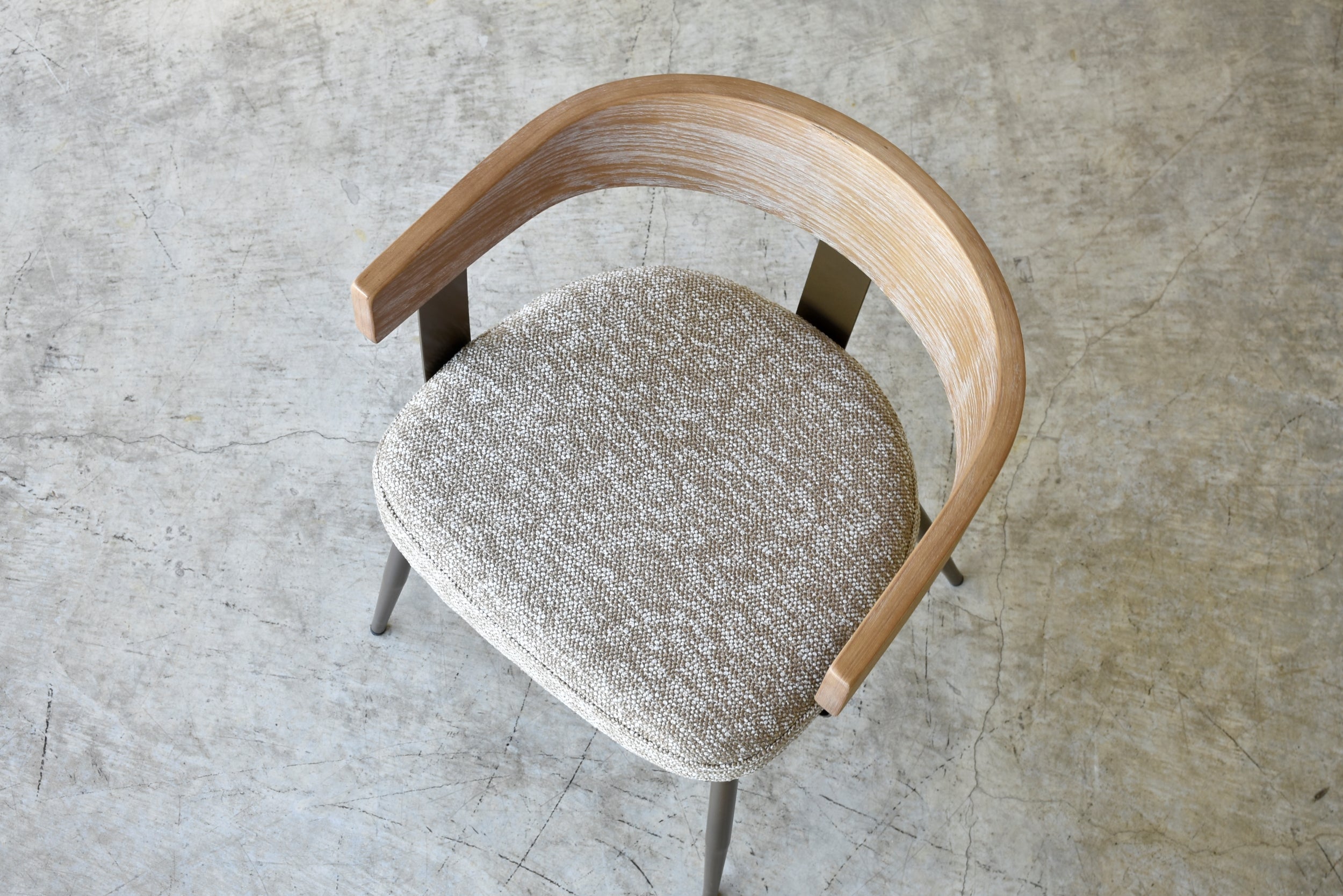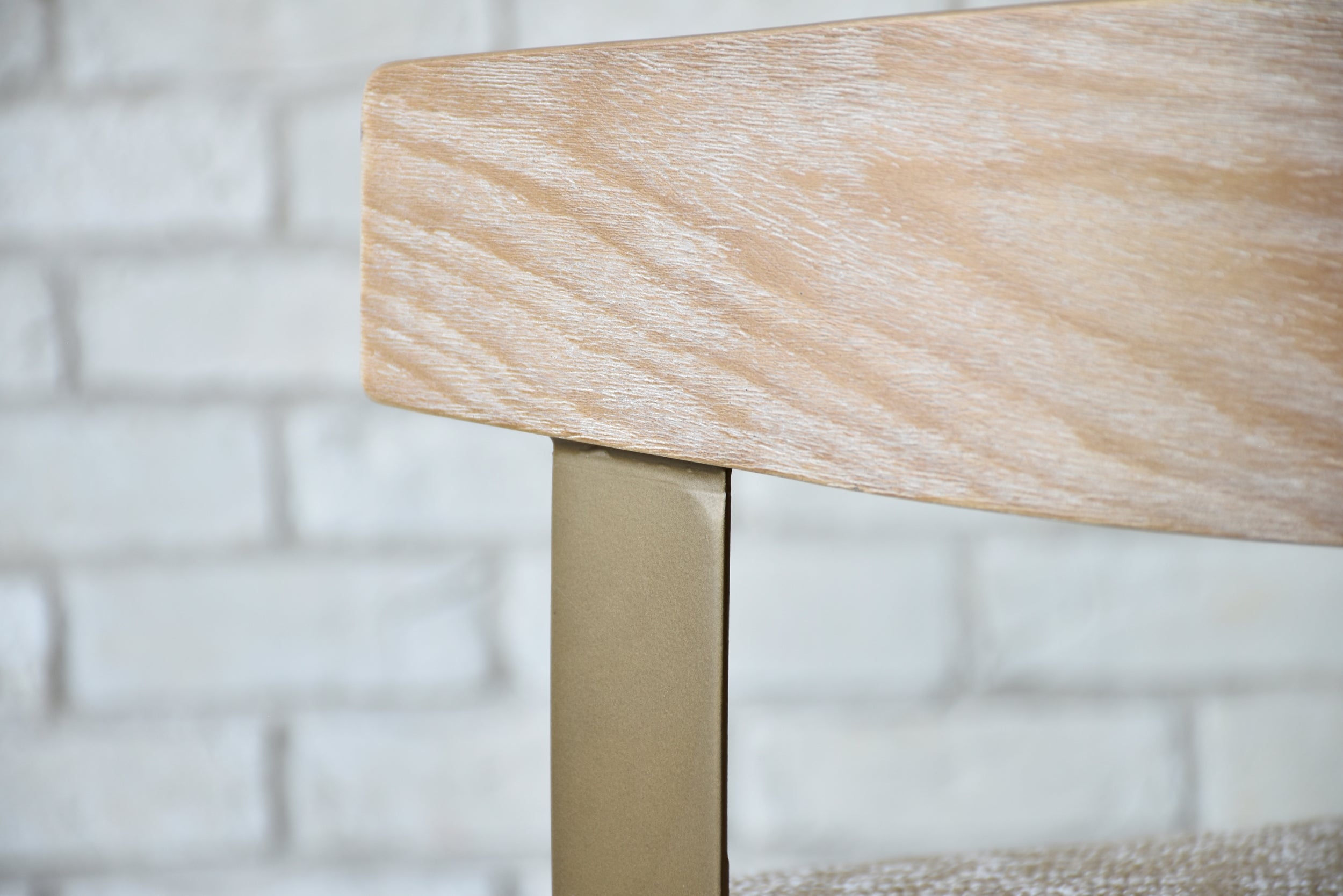 オーク材とスチール、ファブリック素材を組み合わせたダイニングチェアです。ブラウンとナチュラルの2色展開でお部屋の雰囲気に合わせて選ぶことができます。