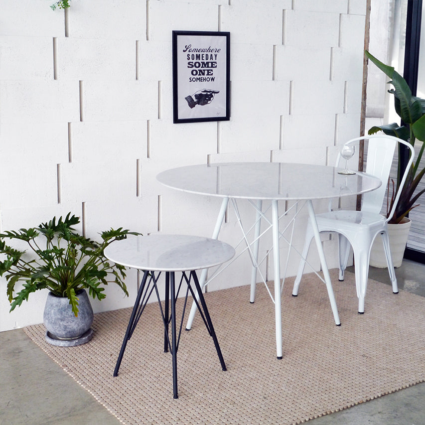 重厚感のある大理石天板が空間をラグジュアリーに演出するサイドテーブルです。直線的な脚がモダンな印象を添えます。