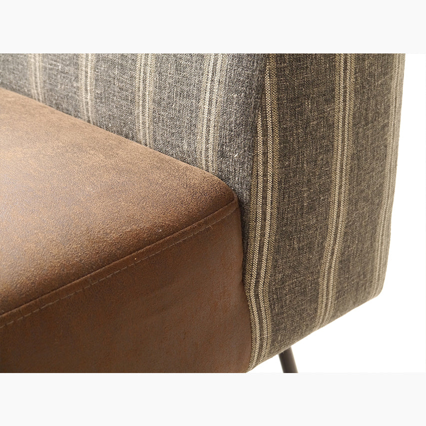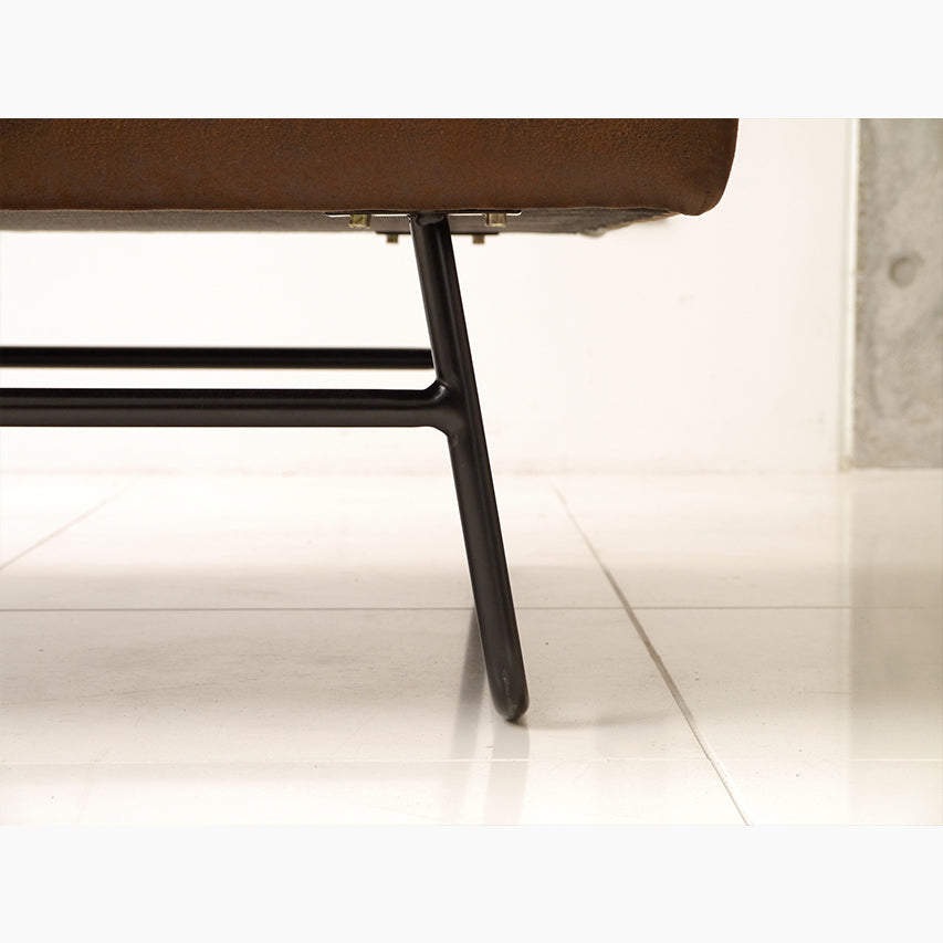 同シリーズのベーシックソファです。スチール脚で足元に軽さを出し、ファブリックの色調が空間になじみます。ほどよいクッション性でダイニング脇のリビングシーンをすっきりまとめます。