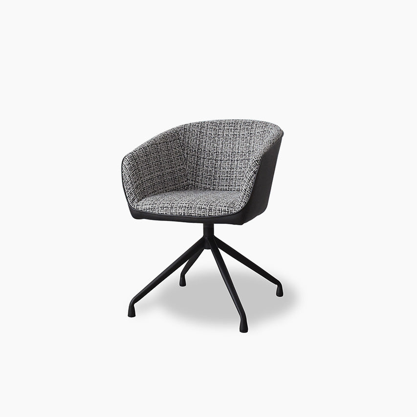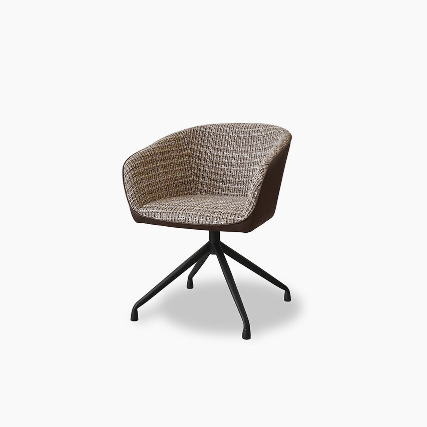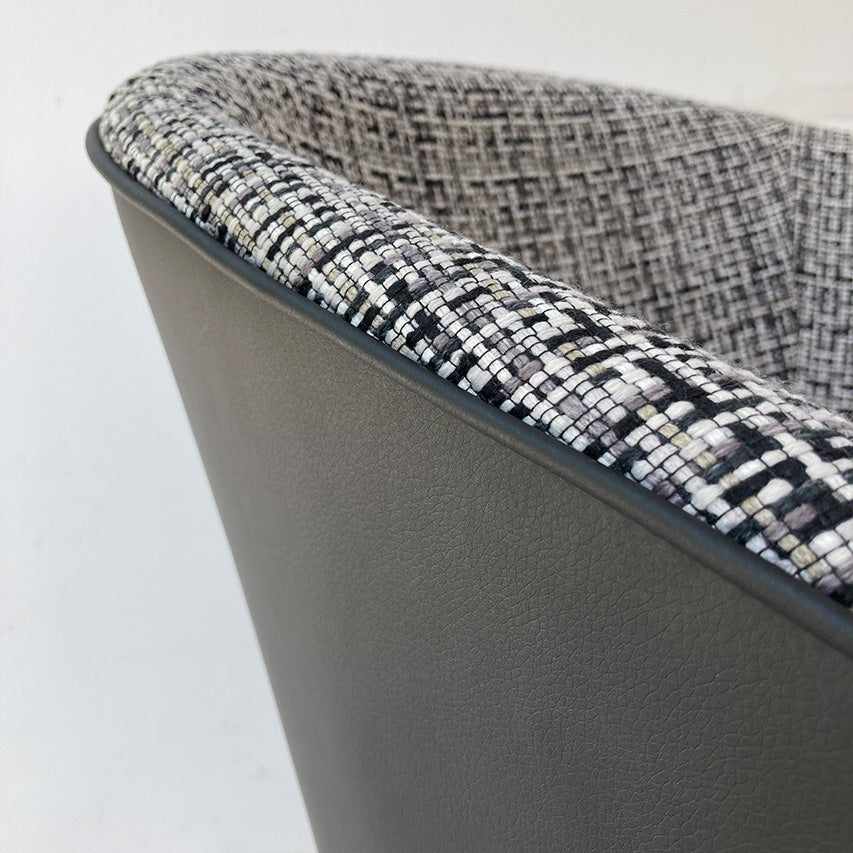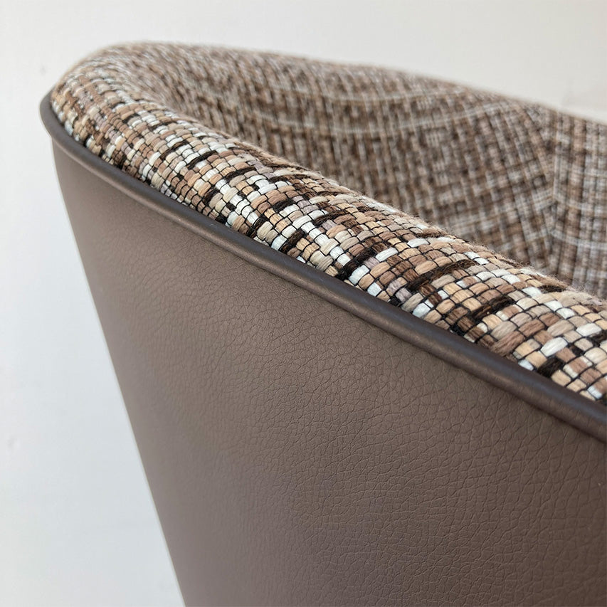低めの背とワイドな座でくつろげる一脚です。布×レザー調の異素材ミックスがインテリアのアクセントになります。