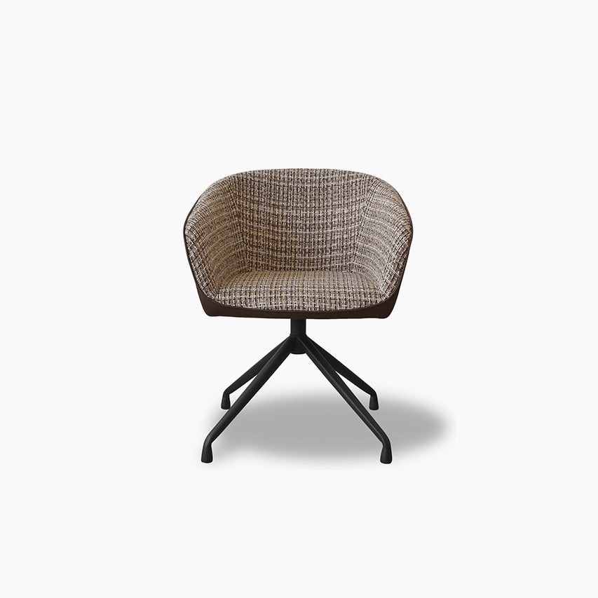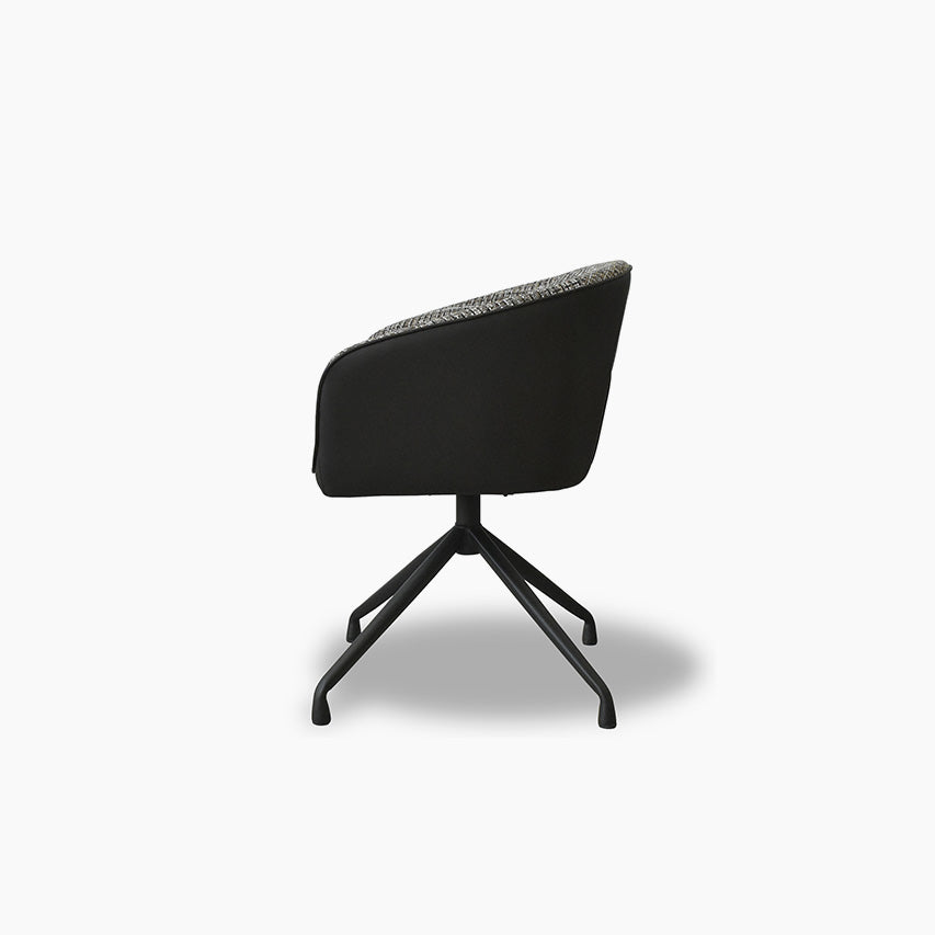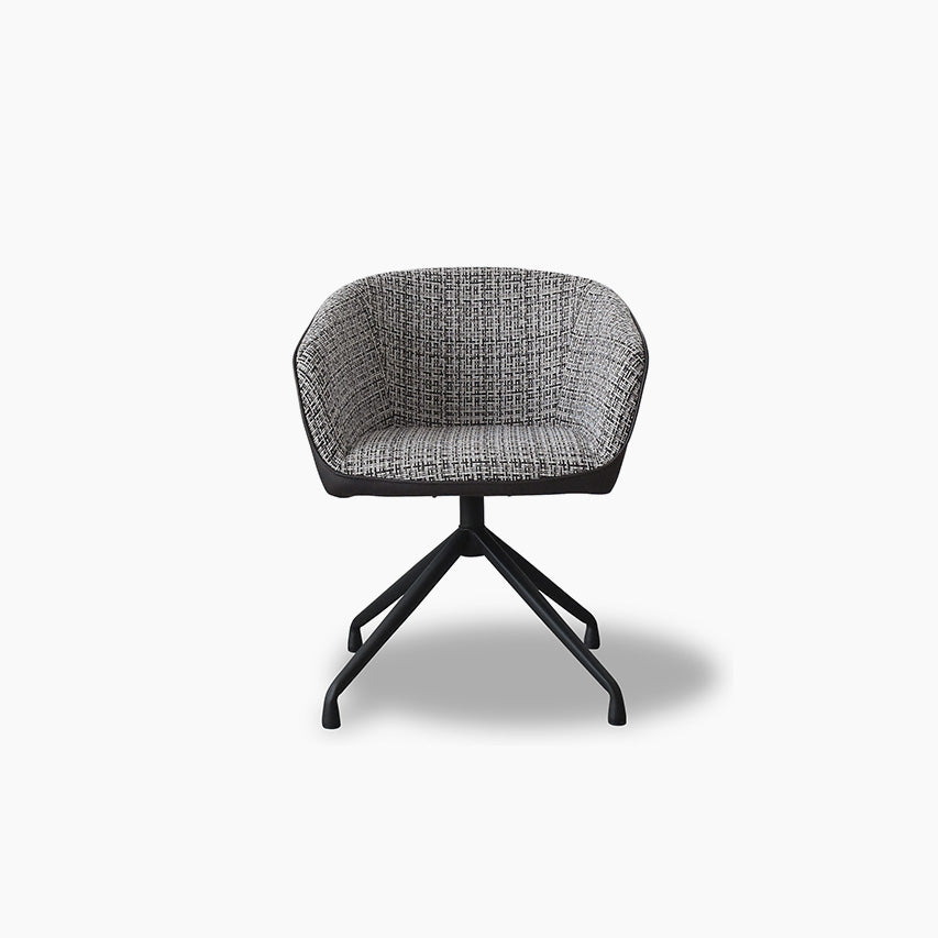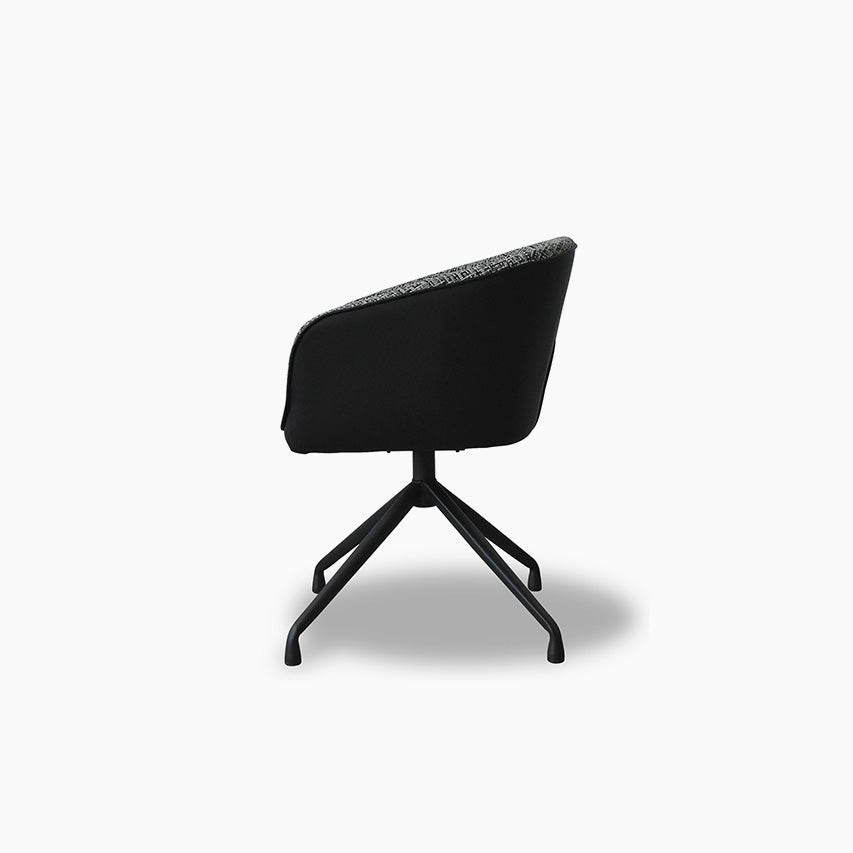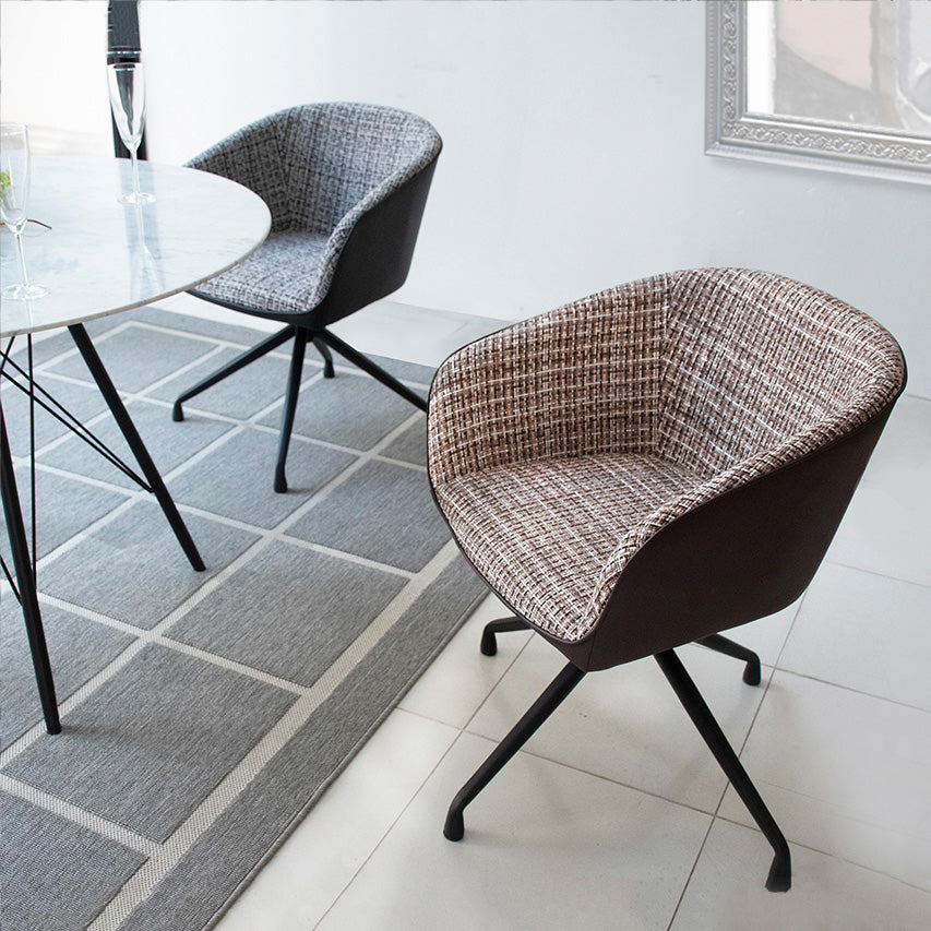 低めの背とワイドな座でくつろげる一脚です。布×レザー調の異素材ミックスがインテリアのアクセントになります。