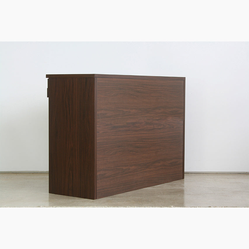 天板下を大きく開けたオープンカウンターです。ダストボックスやワゴンを収めやすく、キッチンの作業動線を妨げません。