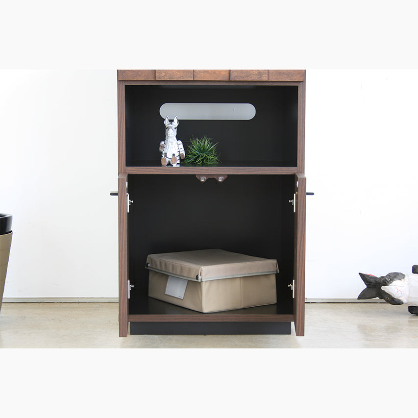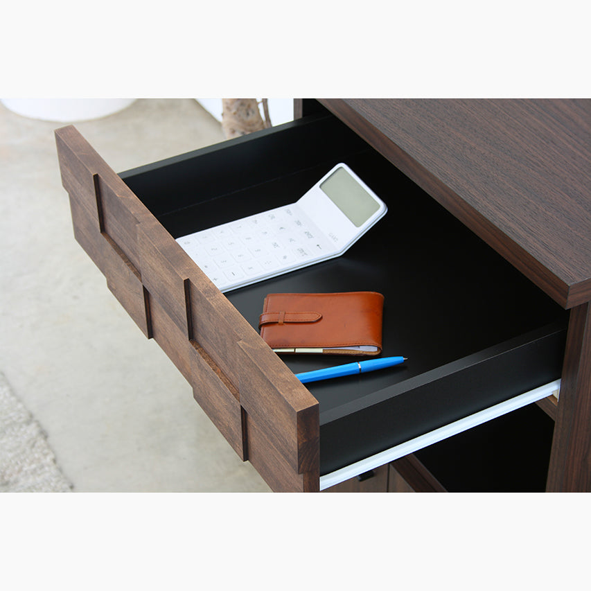 幅50cmの電話台です。小引き出しと扉収納で、連絡帳や工具などの細かなものまで気持ちよく整頓できます。