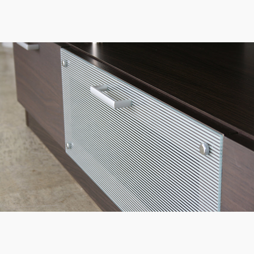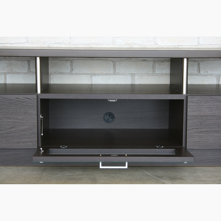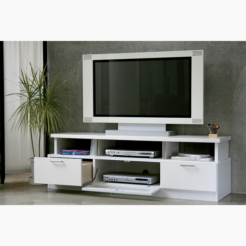 落ち着いたトーンの前板とフラットなデザインが特徴のテレビボードです。150cm幅でリビングに取り入れやすいサイズです。