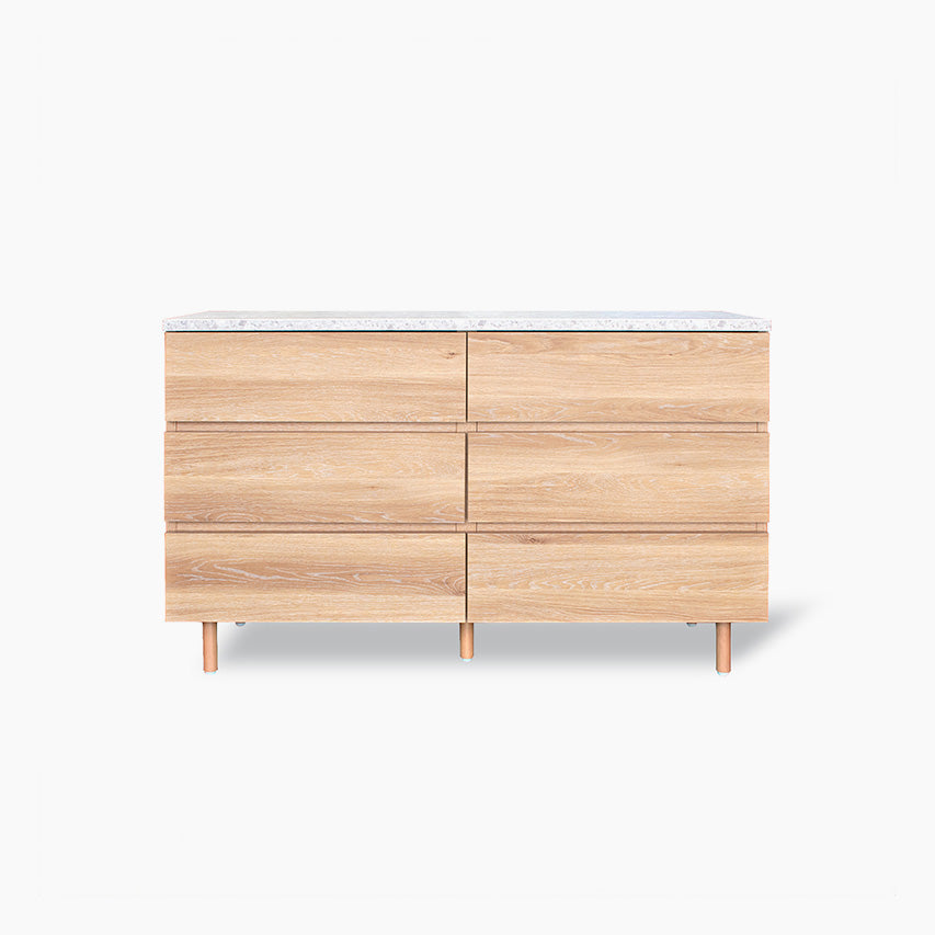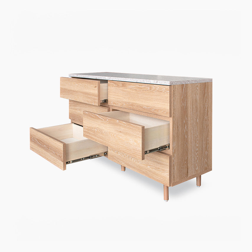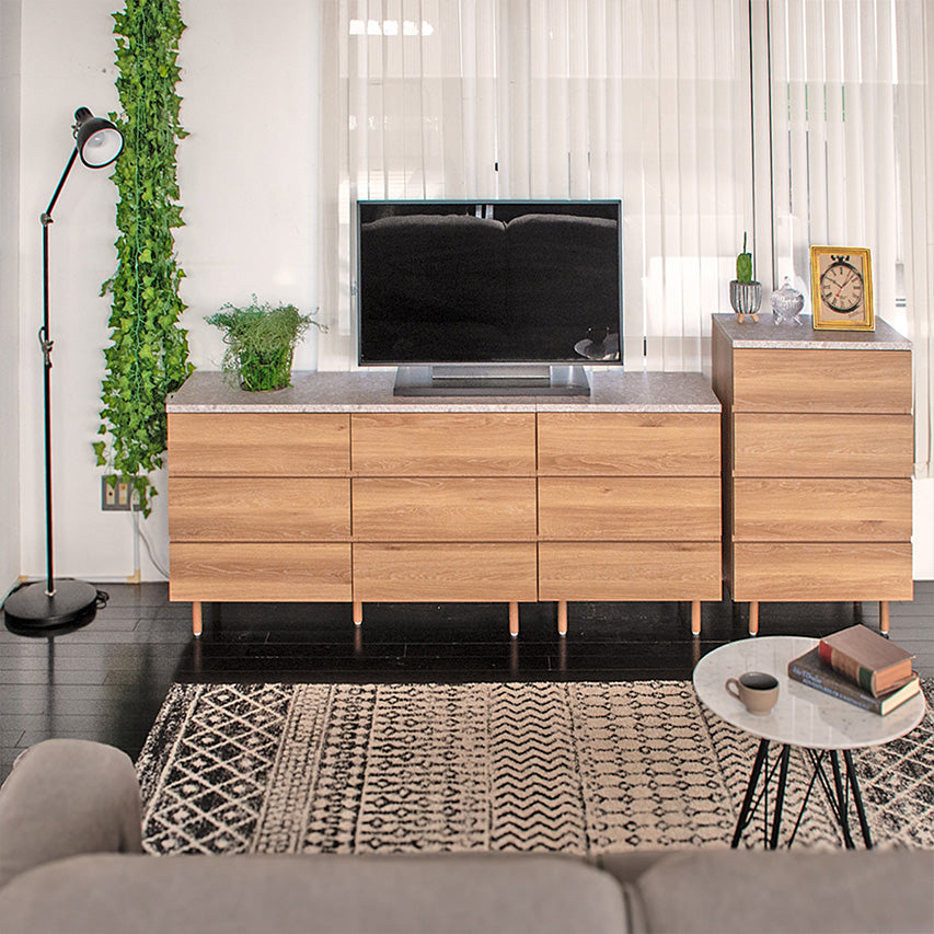 幅120cmの引き出し3杯タイプ。広めの天板と大容量の収納で、寝室やリビングの衣類・日用品整理に活躍します。