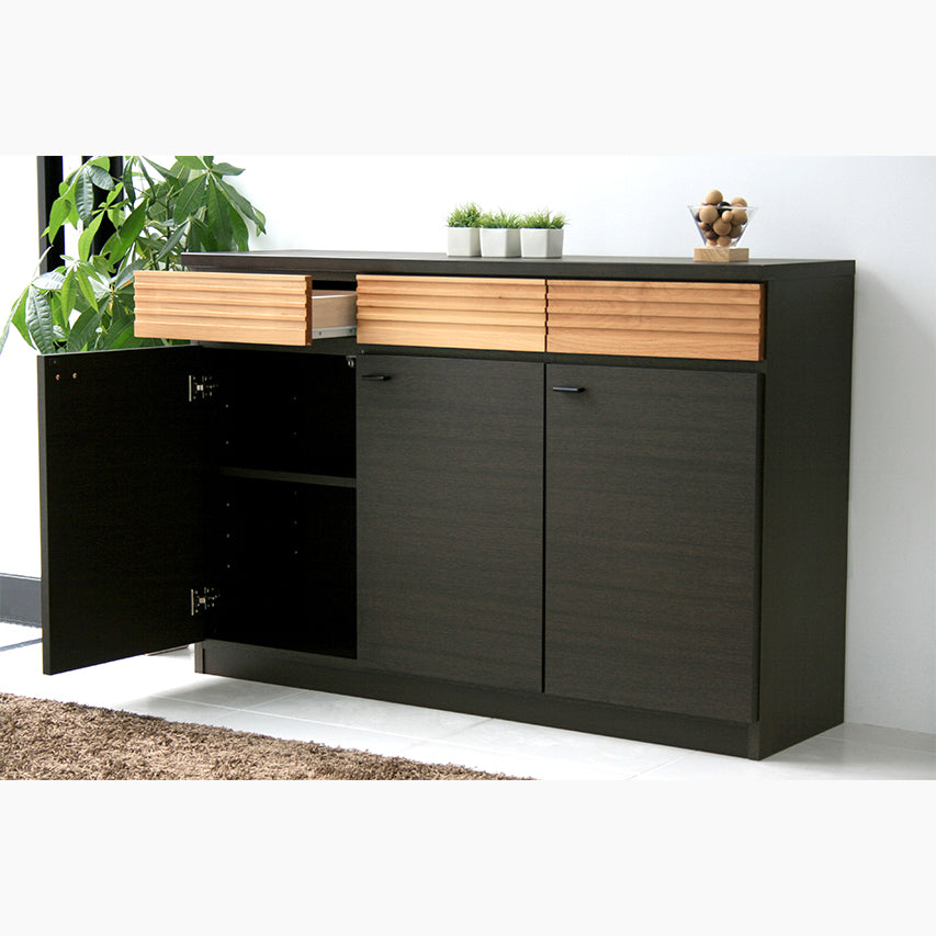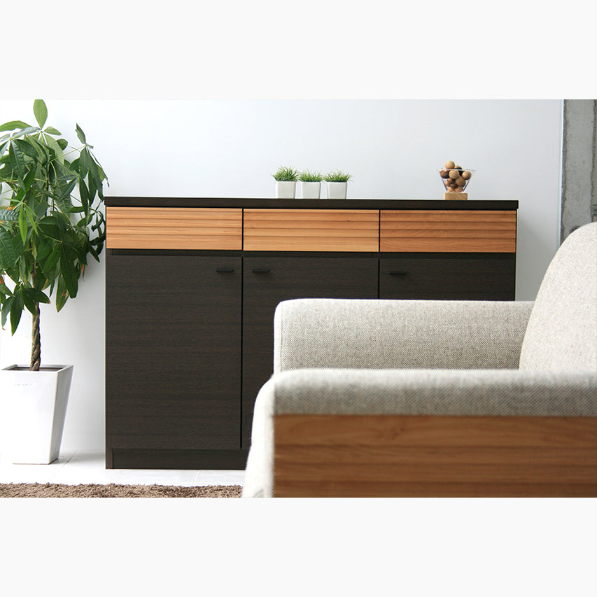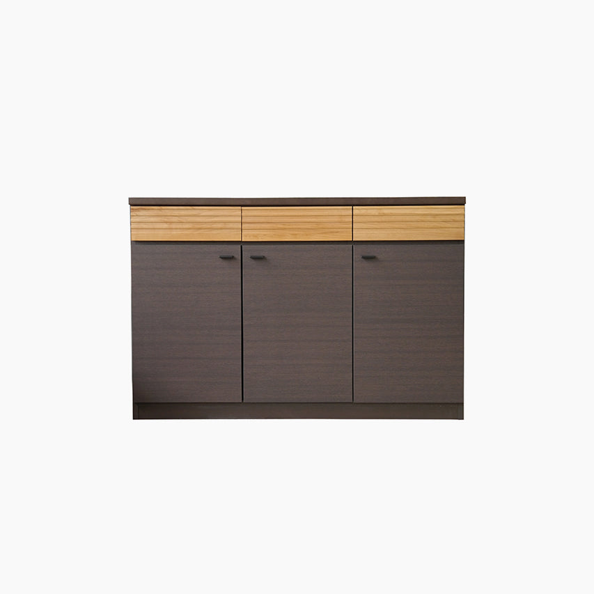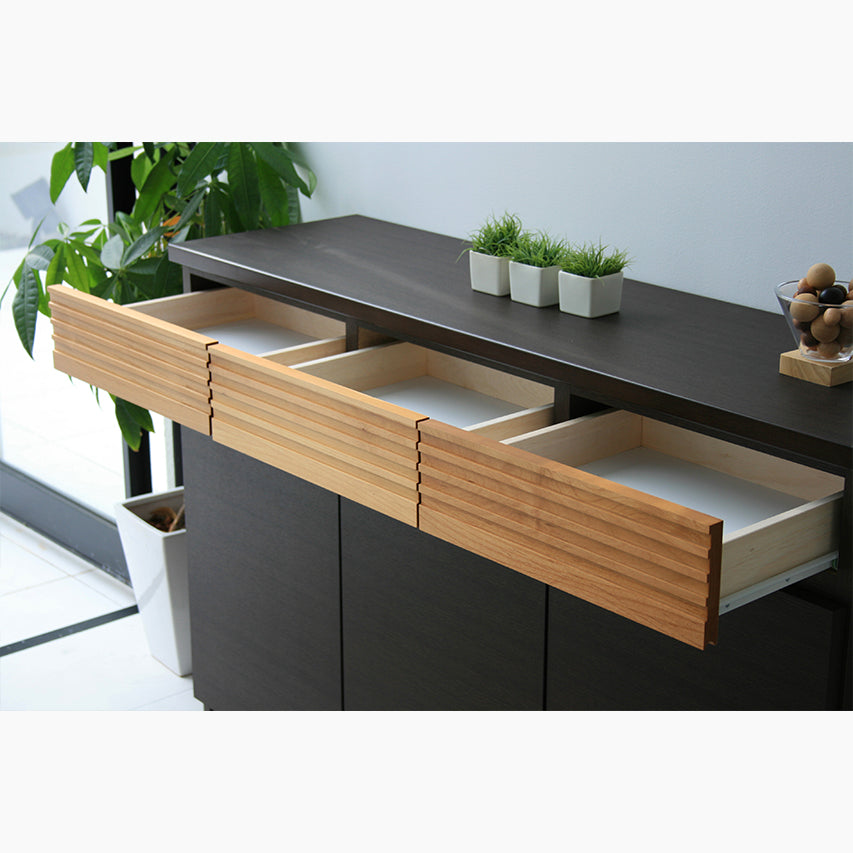 温かみのあるアルダー材の前板に、すっきりとした箱型の構成。食器や雑貨を整理しやすい収納力と、リビングに馴染む柔らかな表情が魅力です。