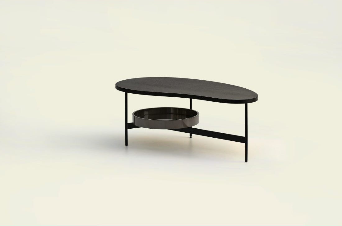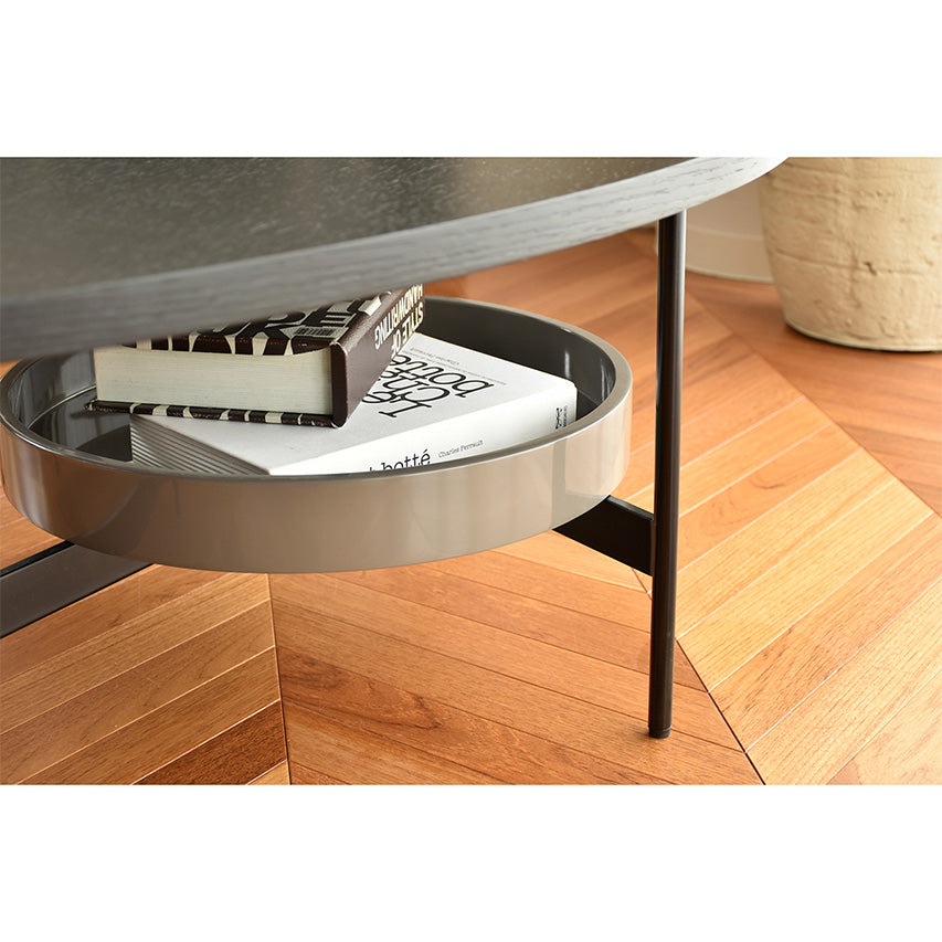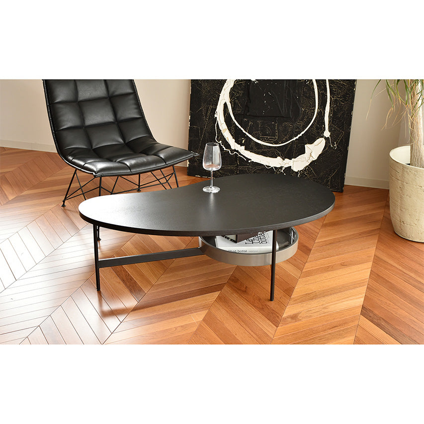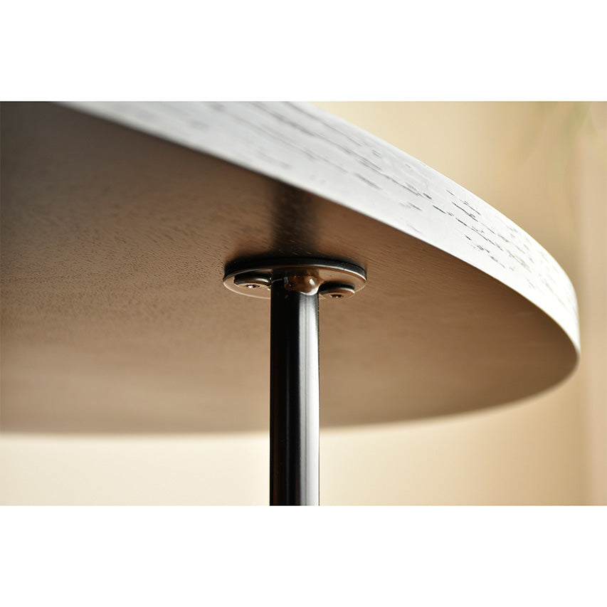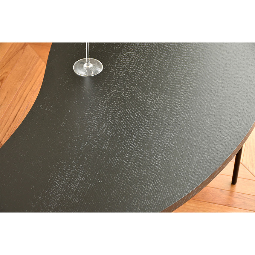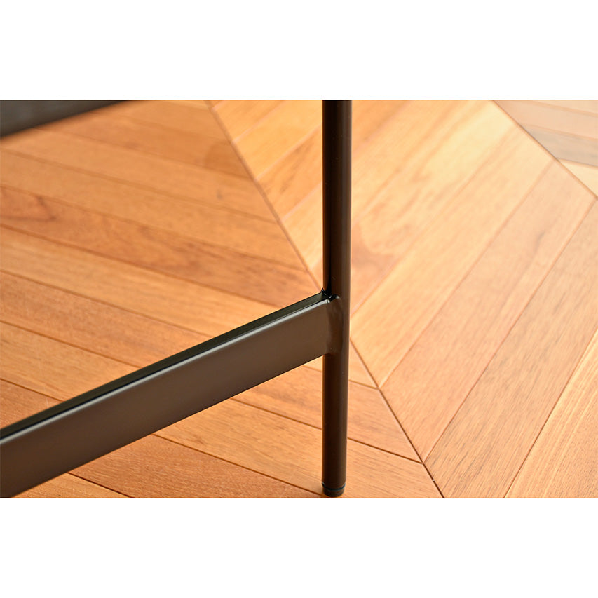 落ち着いた木目とスチール脚のコントラストが効いたローテーブルです。リビングの中心に置いても重たく見えず、インテリアを引き締めます。