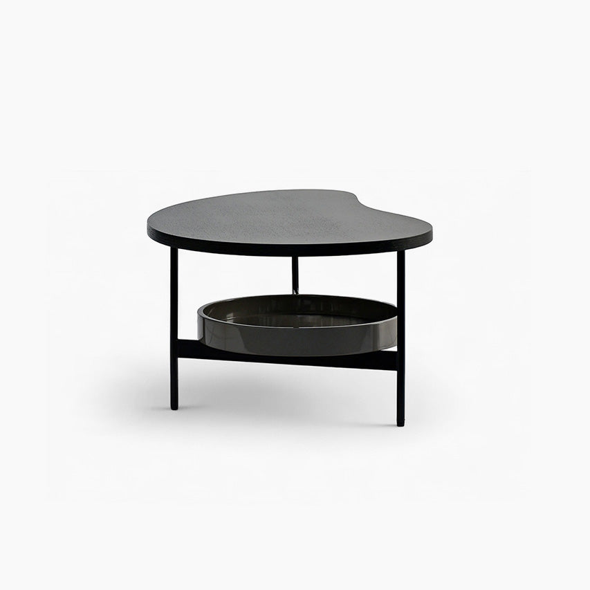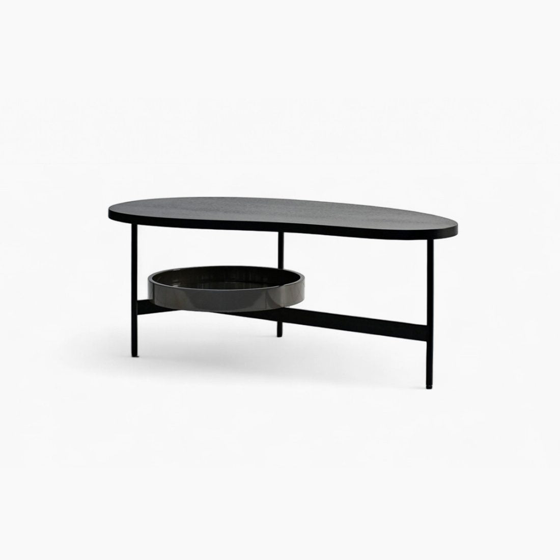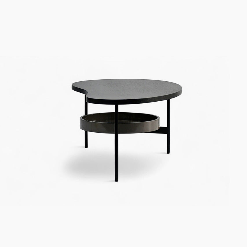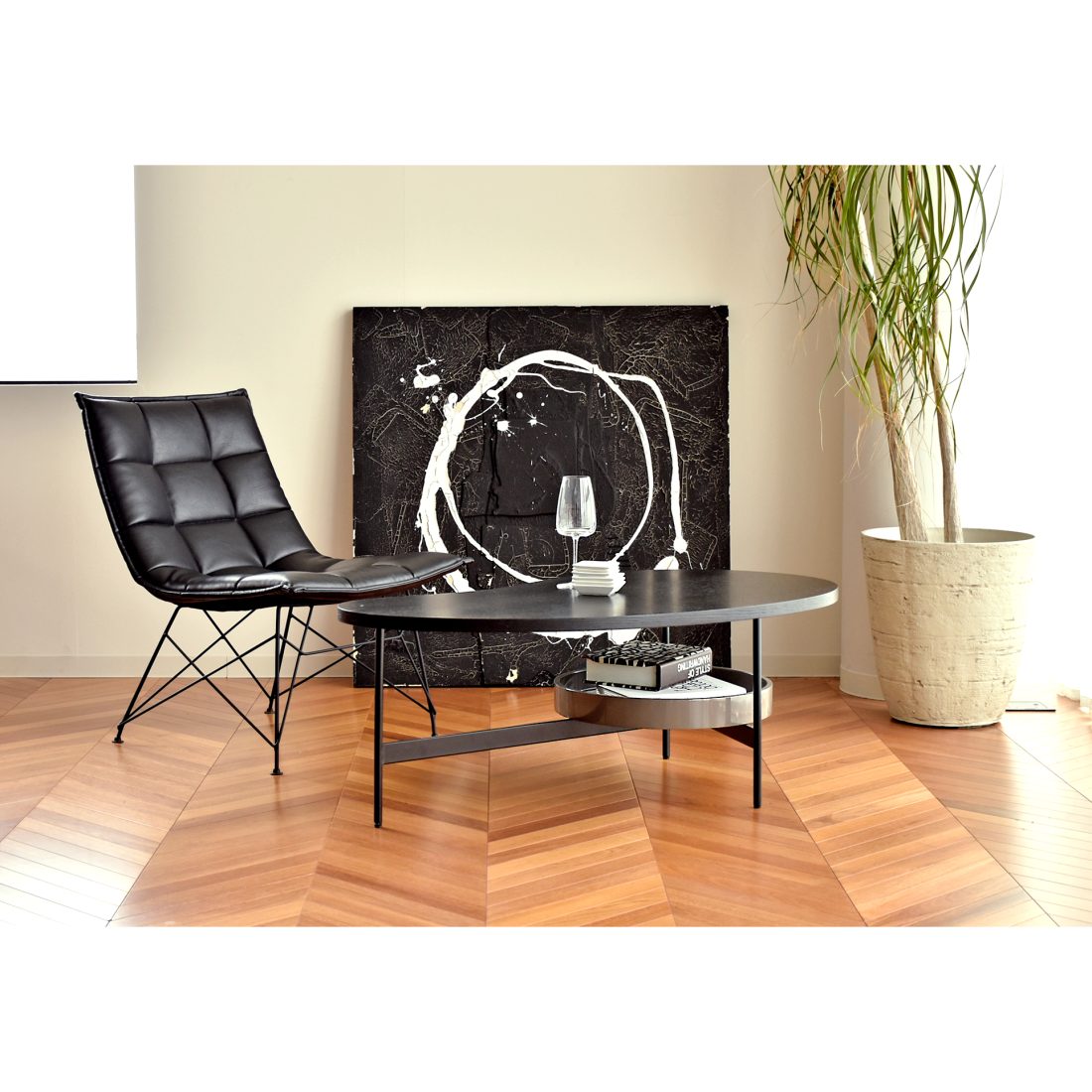 落ち着いた木目とスチール脚のコントラストが効いたローテーブルです。リビングの中心に置いても重たく見えず、インテリアを引き締めます。