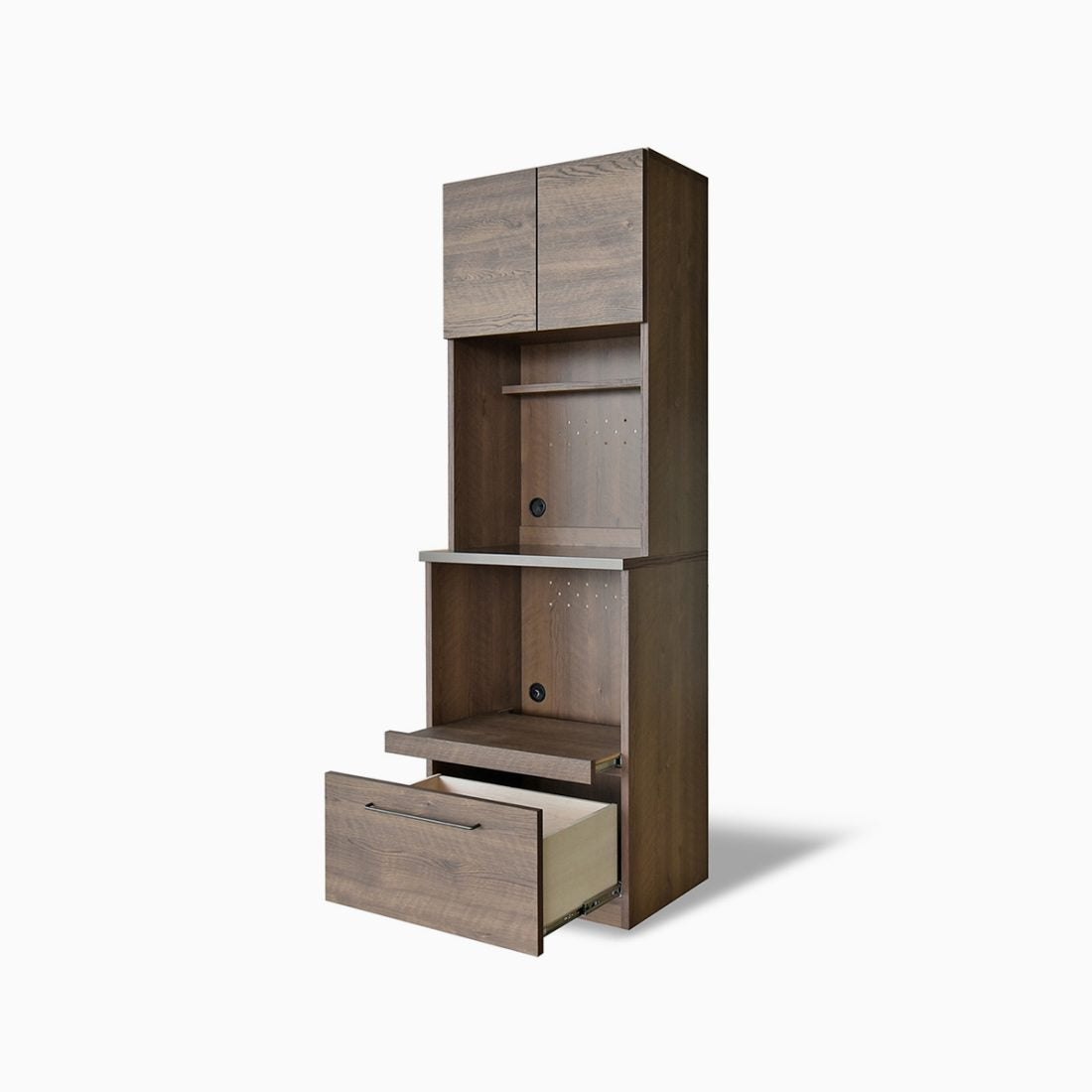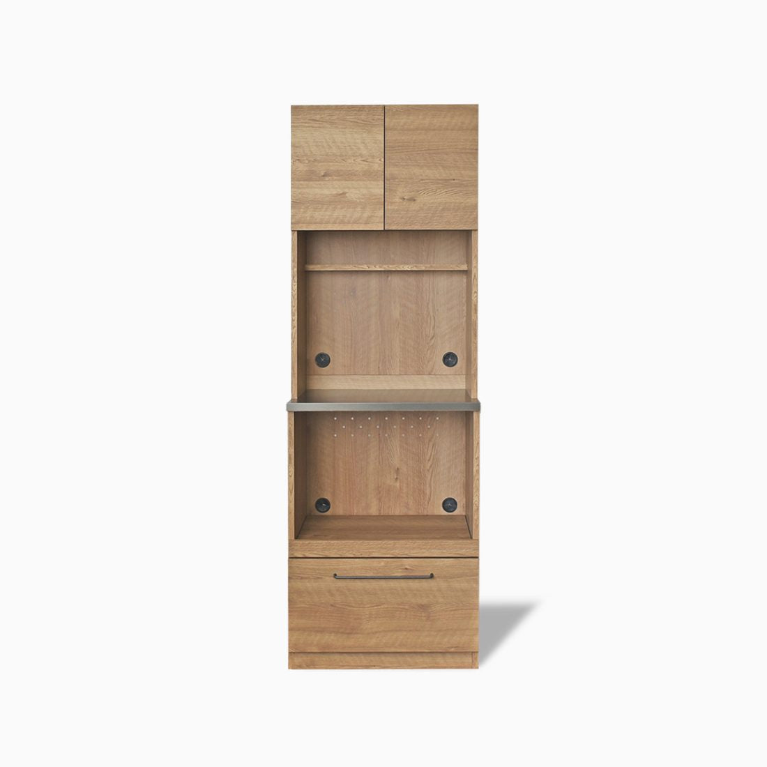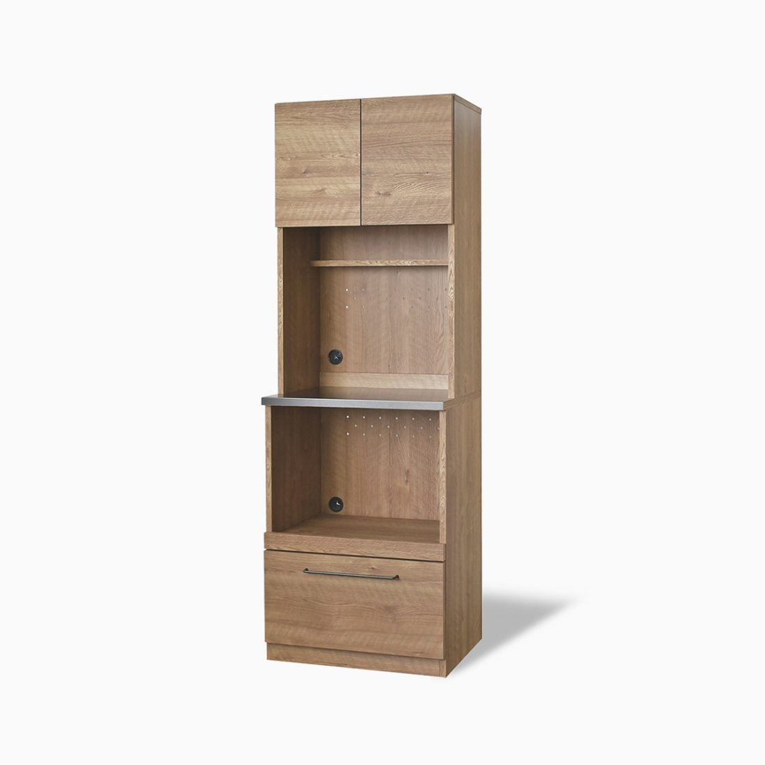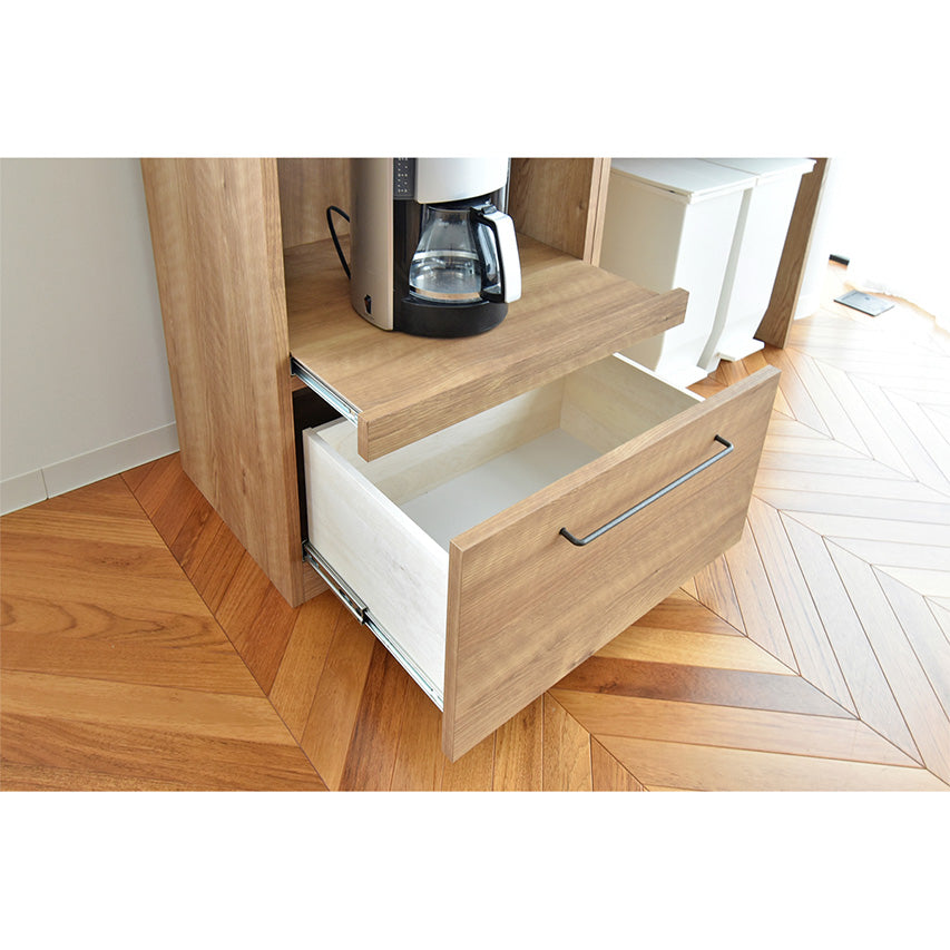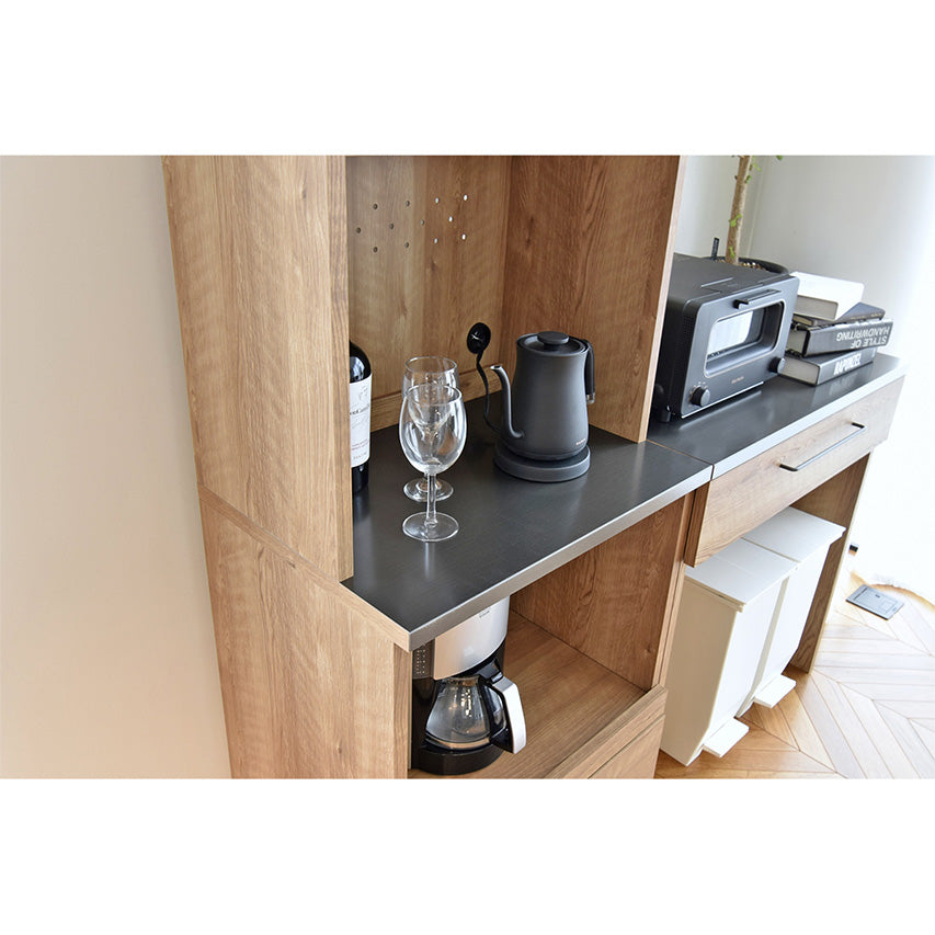 省スペースながら家電と食器を縦方向に効率よく収められるレンジボードです。ガラス扉で中身を確認しやすく、日々の家事をスムーズにします。